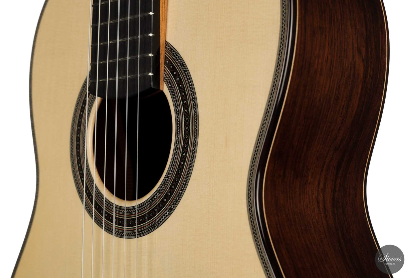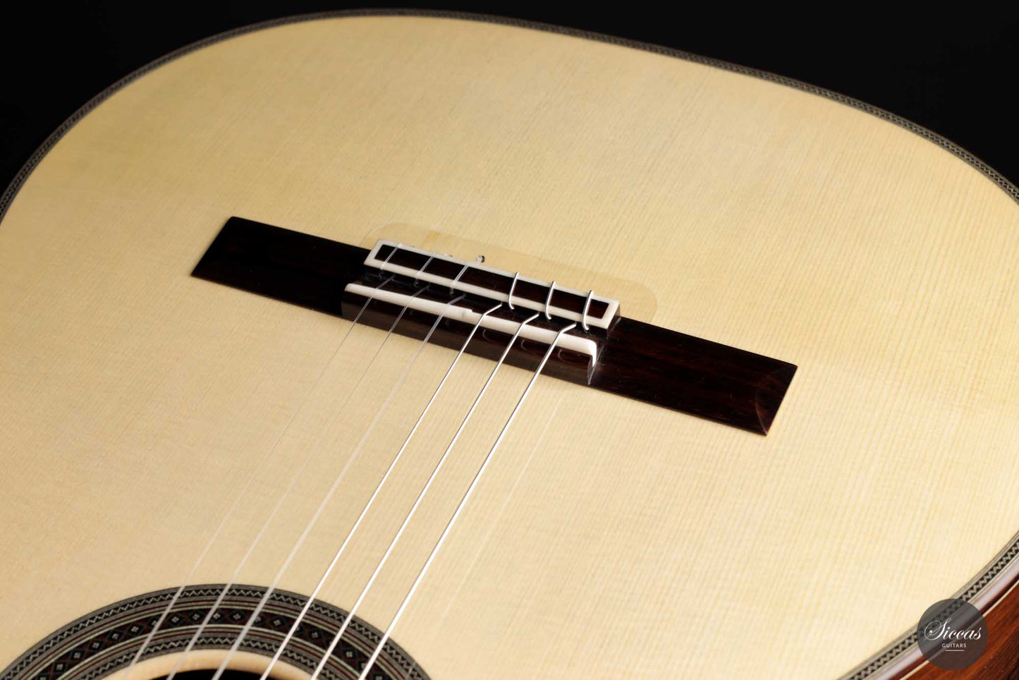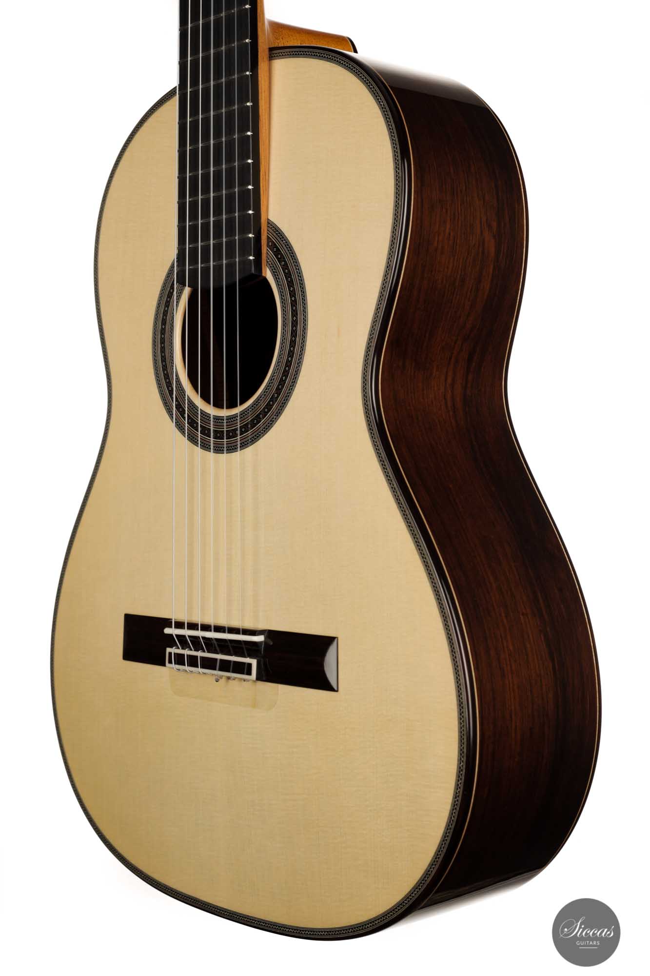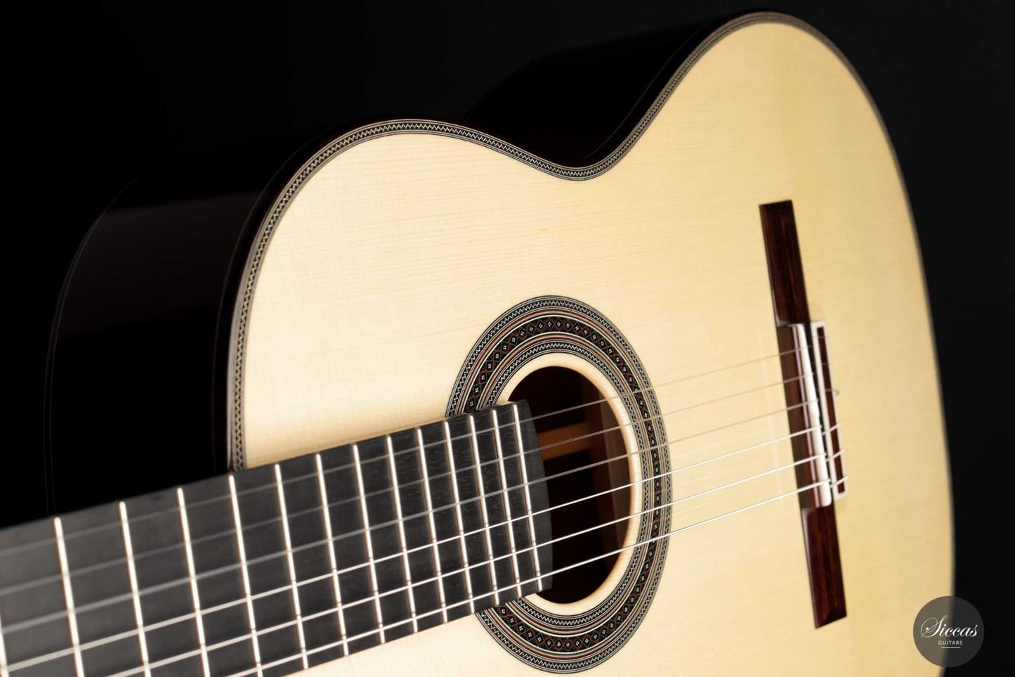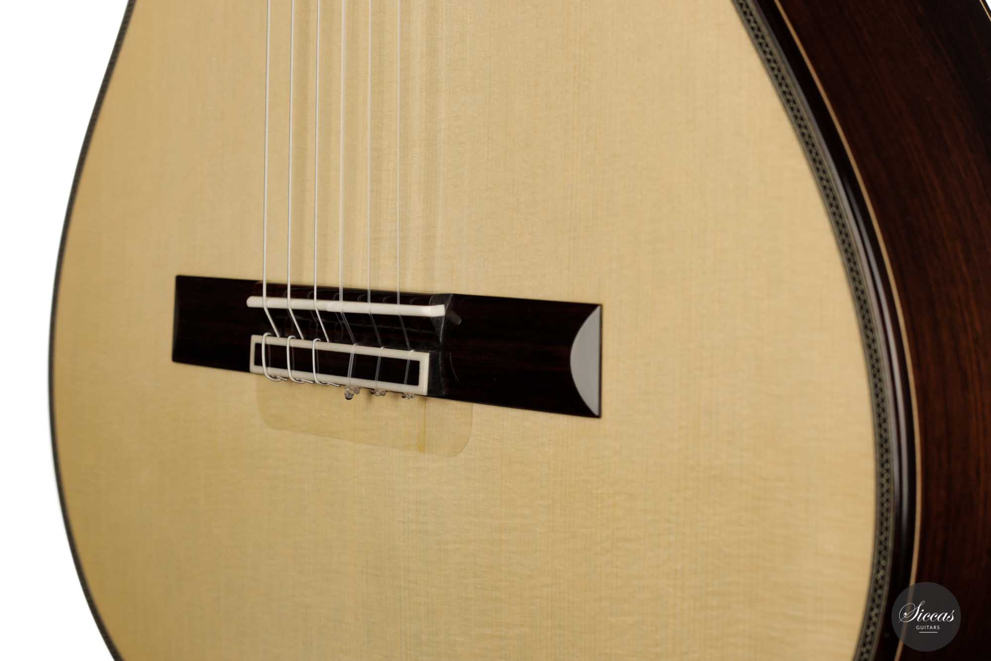 His craftsmanship and the way Adrian Heinzelmann designs his soundboards are unique. Many narrow parallel trenches are carved in the inside of the spruce soundboard to optimize its weight and flexibility. This technique, combined with a lightweight lattice bracing, gives an instrument of great sensitivity and impressive volume. Playing Adrian Heinzelmann’ s guitar gives a feeling of confidence and pushes the guitarist to go beyond his limits.