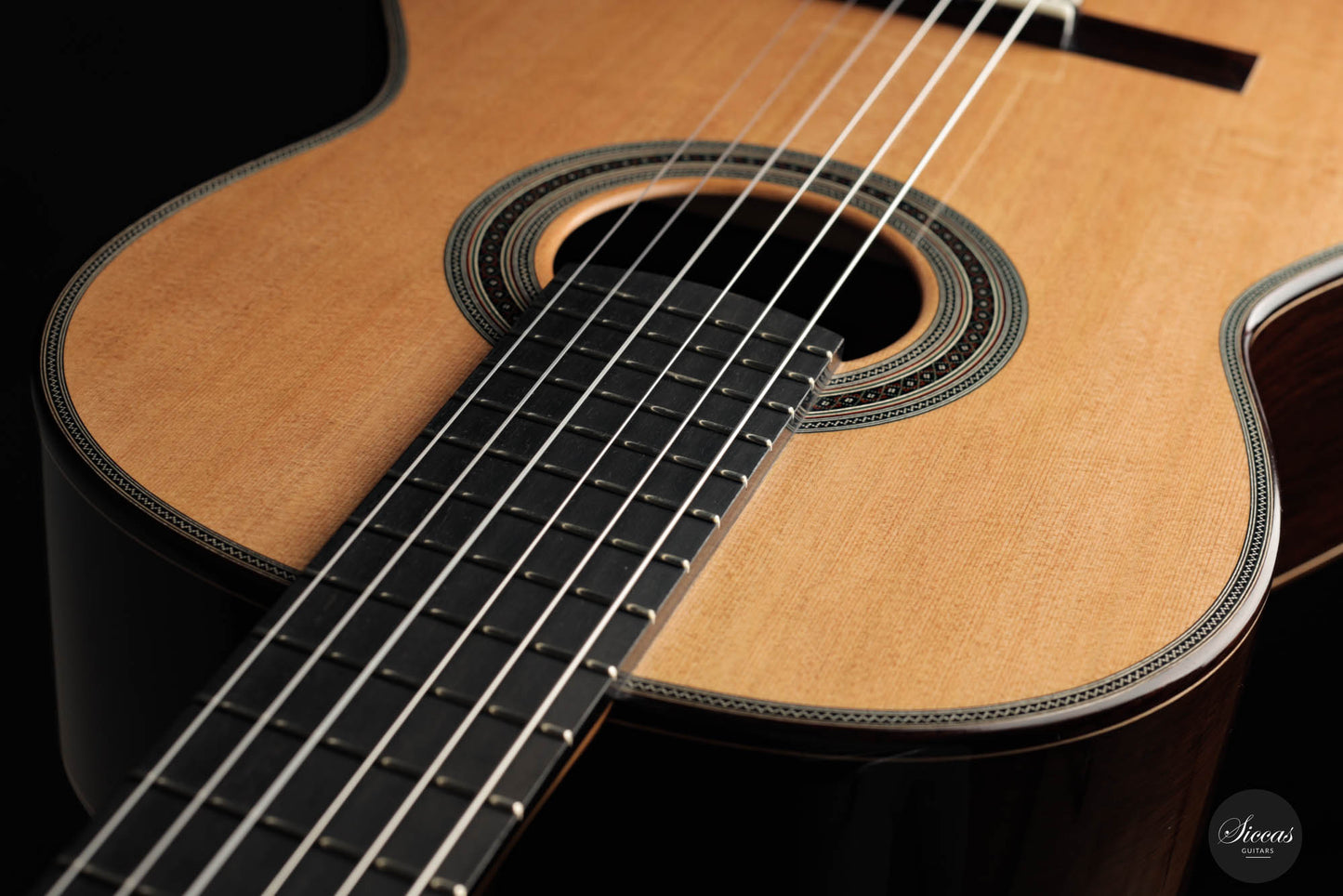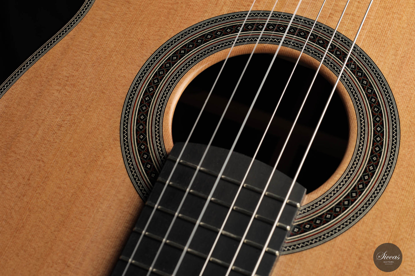Adrian Heinzelmann is one of his generation's most talented German luthiers. His guitars are of great finesse with an aesthetic that combines the Spanish tradition and the modernity for which German luthiers are universally recognized. His guitars are played by many brilliant teachers, soloists, and students and have already proven themselves in major European concert halls. His craftsmanship and the way Adrian Heinzelmann designs his soundboards are unique. Many narrow parallel trenches are carved inside the cedar soundboard to optimize its weight and flexibility. Combined with lightweight lattice bracing, this technique gives an instrument of great sensitivity and impressive volume. Playing Adrian Heinzelmann’s guitar gives confidence and pushes the guitarist beyond his limits.