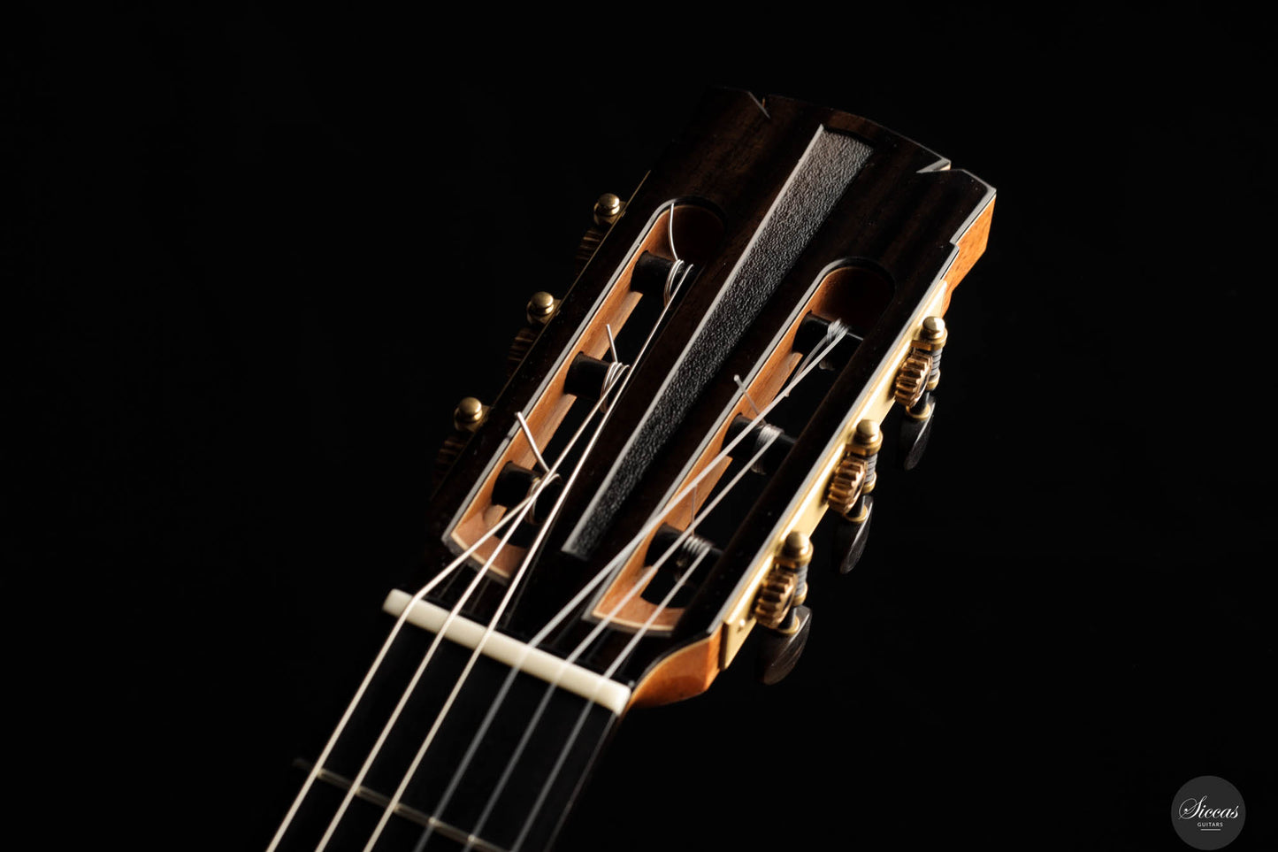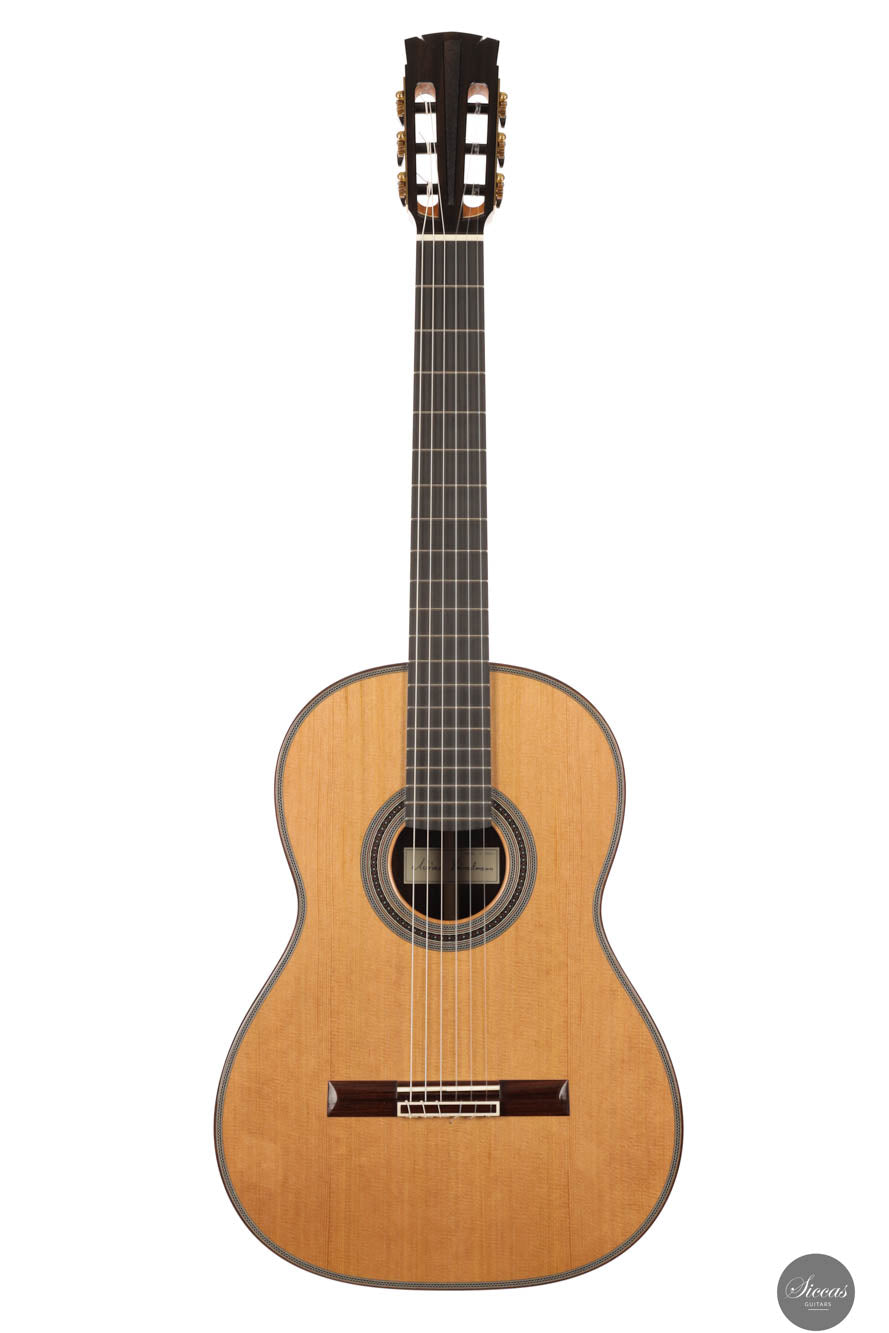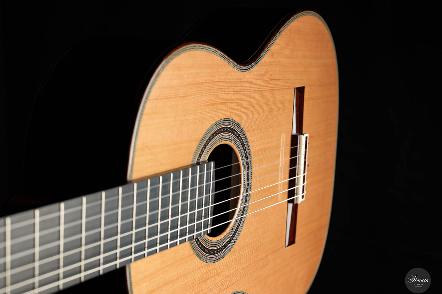 Adrian Heinzelmann is one of his generation’s most talented German luthiers. His guitars are of great finesse with an aesthetic that combines the Spanish tradition and the modernity for which German luthiers are universally recognized. His guitars are played by many brilliant teachers, soloists, and students and have already proven themselves in major European concert halls. His craftsmanship and the way Adrian Heinzelmann designs his soundboards are unique. Many narrow parallel trenches are carved inside the cedar soundboard to optimize its weight and flexibility. Combined with lightweight lattice bracing, this technique gives an instrument of great sensitivity and impressive volume. Playing Adrian Heinzelmann’s guitar gives confidence and pushes the guitarist beyond his limits.