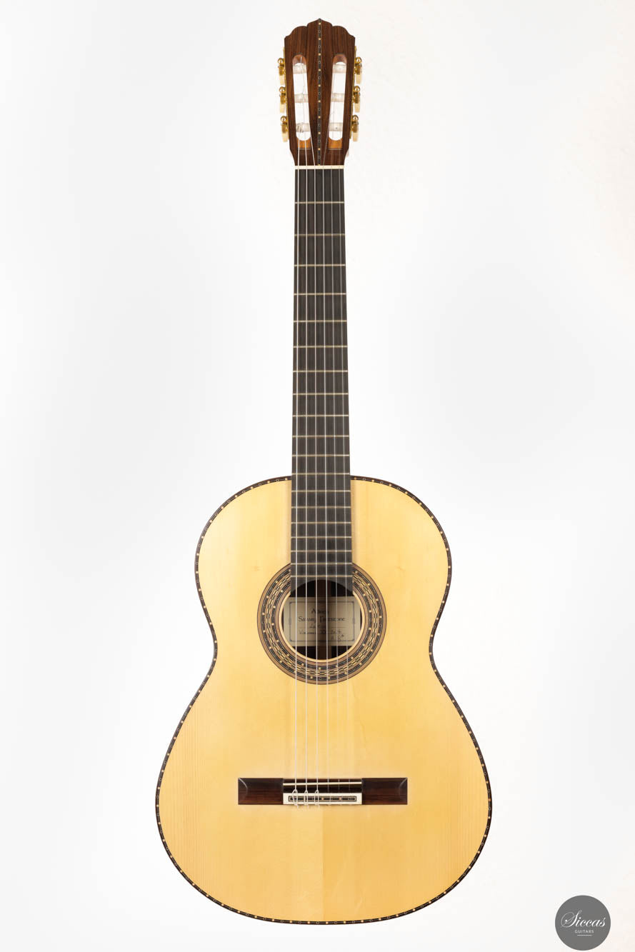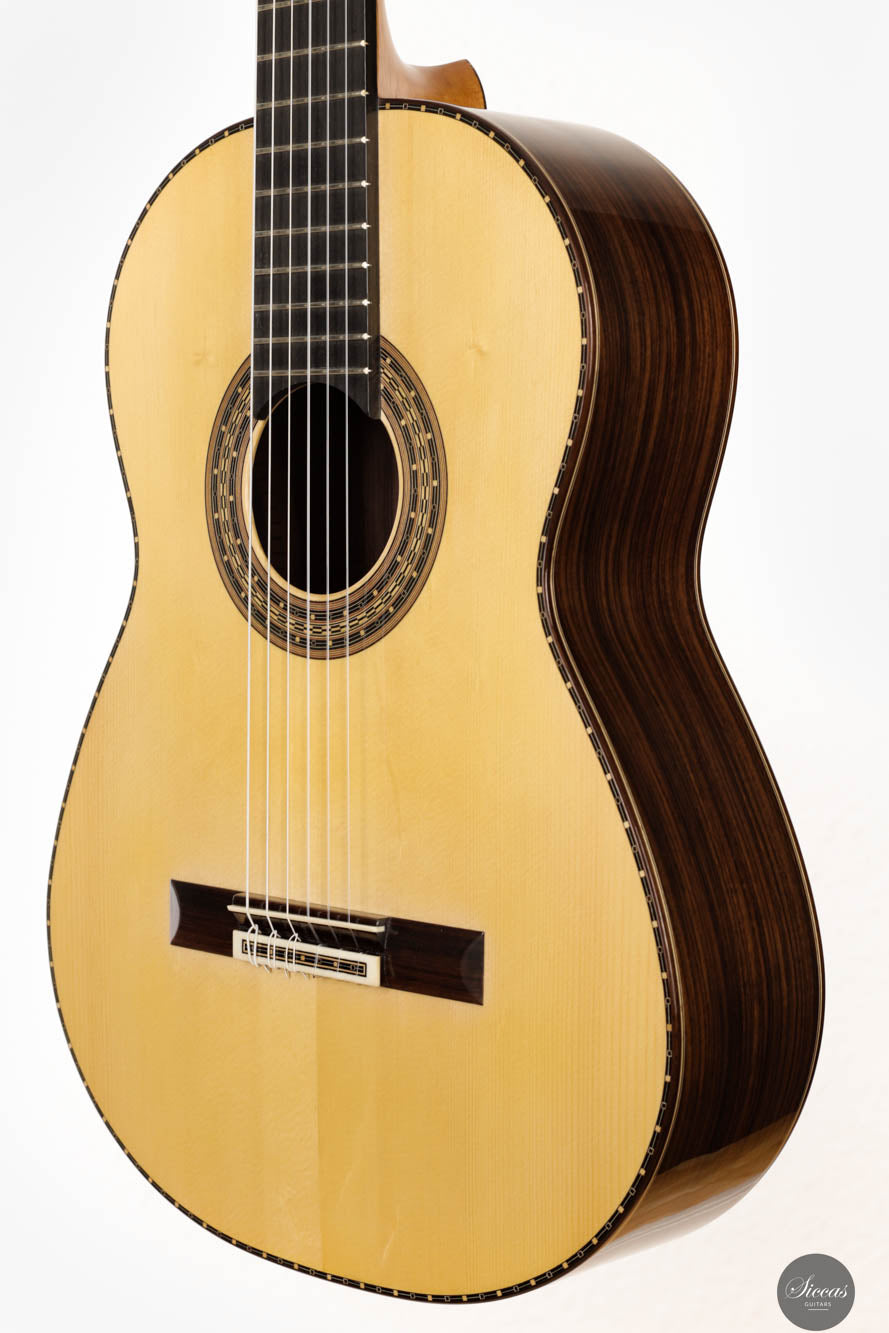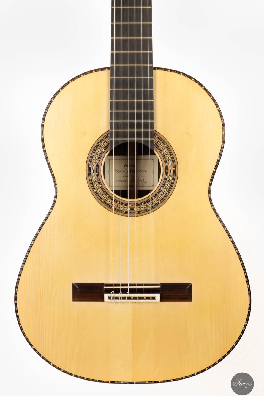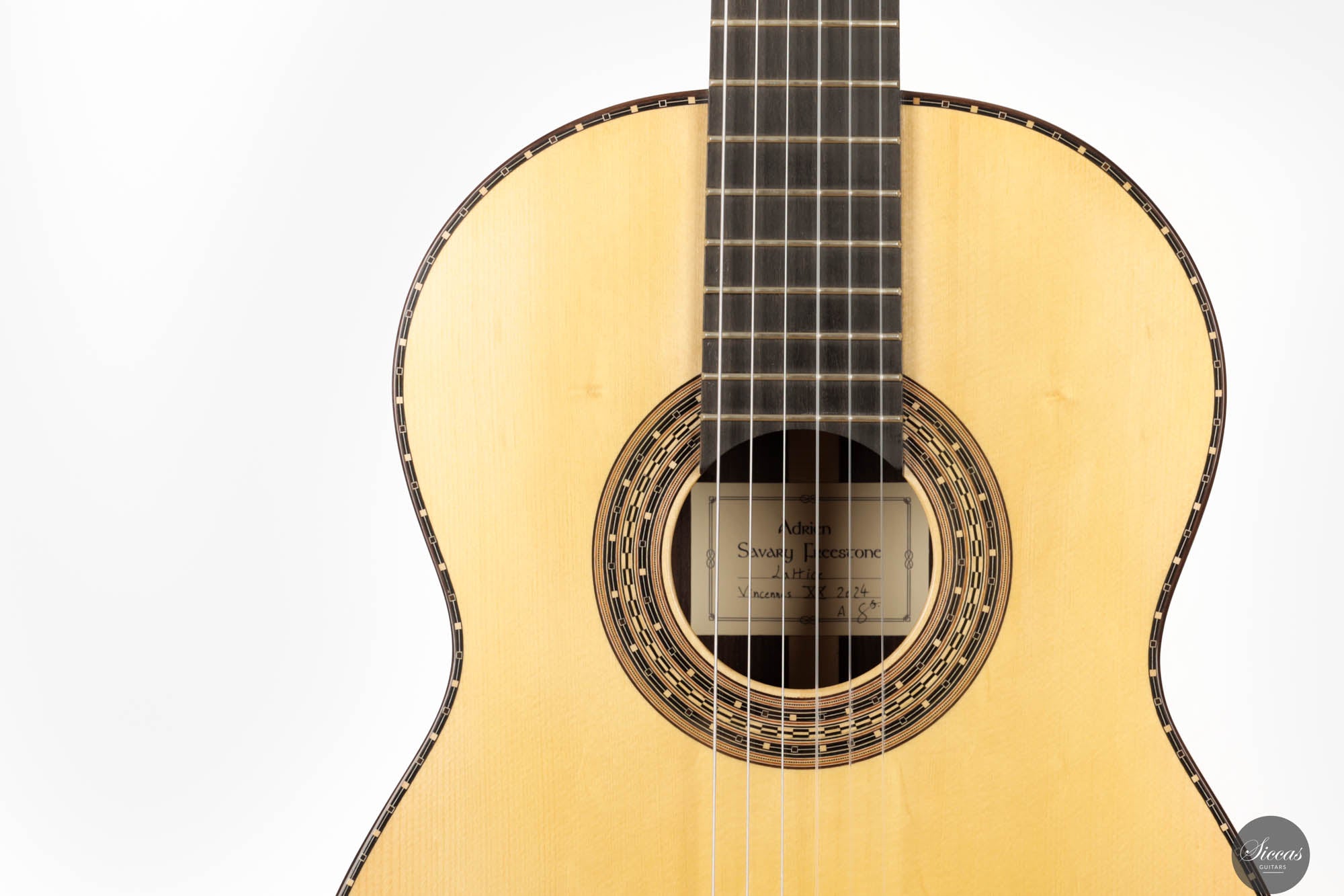 The beauty, power, and elegance embodied in this guitar reflect Freestone's mastery as a luthier. Its design is a deliberate effort to meet the versatile needs of today's musicians, offering a rich, powerful sound that does not compromise on clarity or depth. Whether played in a quiet, intimate setting or projected across a concert hall, this guitar is capable of delivering performances with exceptional expressiveness and nuance. Adrien Savary Freestone's new guitar is not just an instrument; it's a bridge between the rich heritage of classical guitar music and the boundless possibilities of future musical expression, making it a prized possession for any serious guitarist.