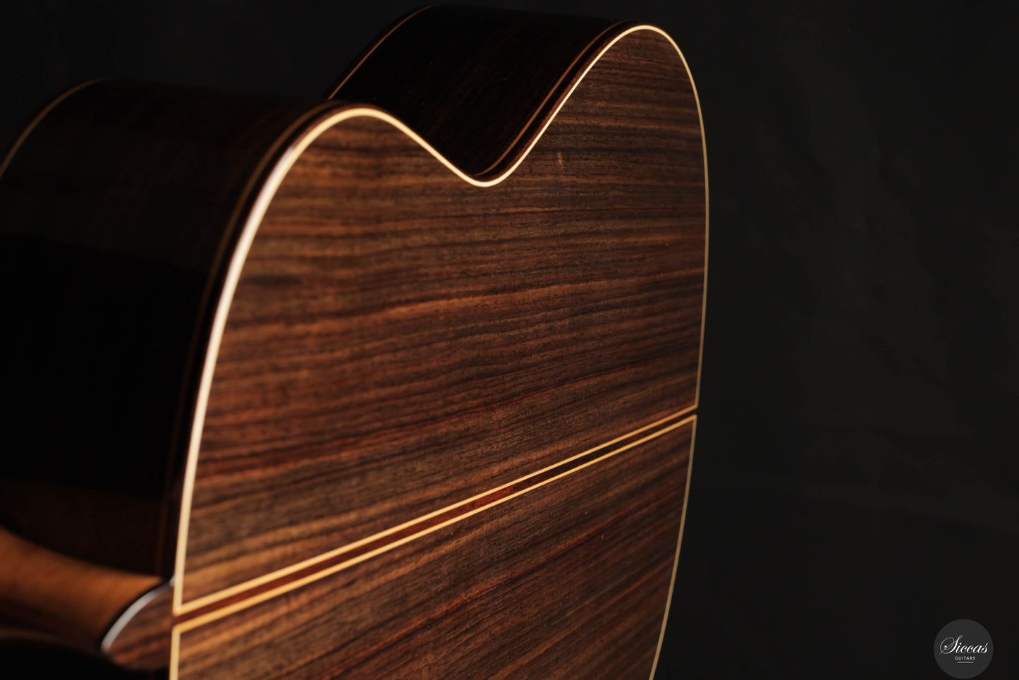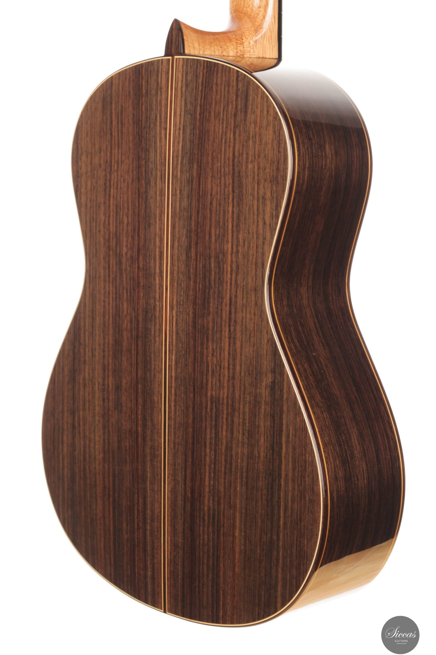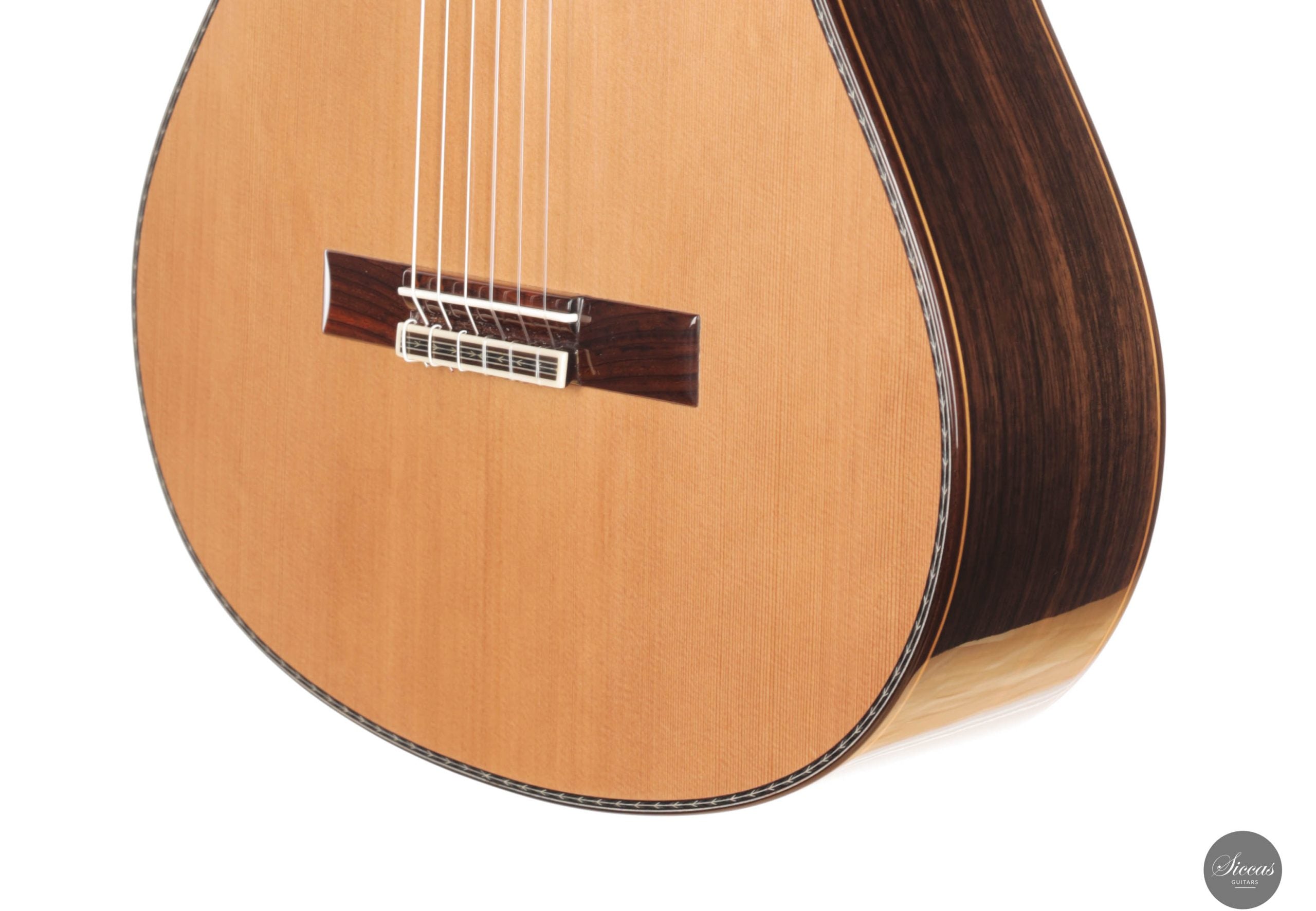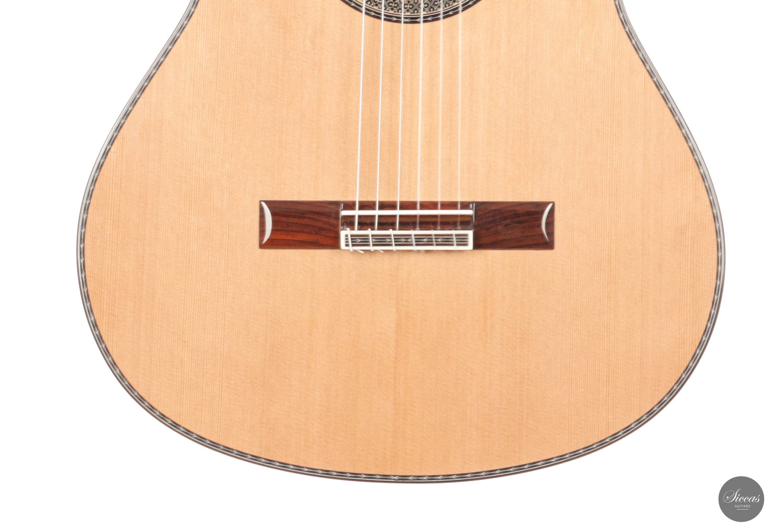 This 2025 Deseada, numbered 240-22, is a special edition built exclusively for Siccas Guitars. It is distinguished by a custom rosette designed specifically for this series, adding a unique visual identity to an already celebrated model. Crafted using traditional Spanish construction techniques, it features a cedar top paired with Indian rosewood back and sides, offering a warm, rich tonal character with clear projection and excellent balance across the registers.