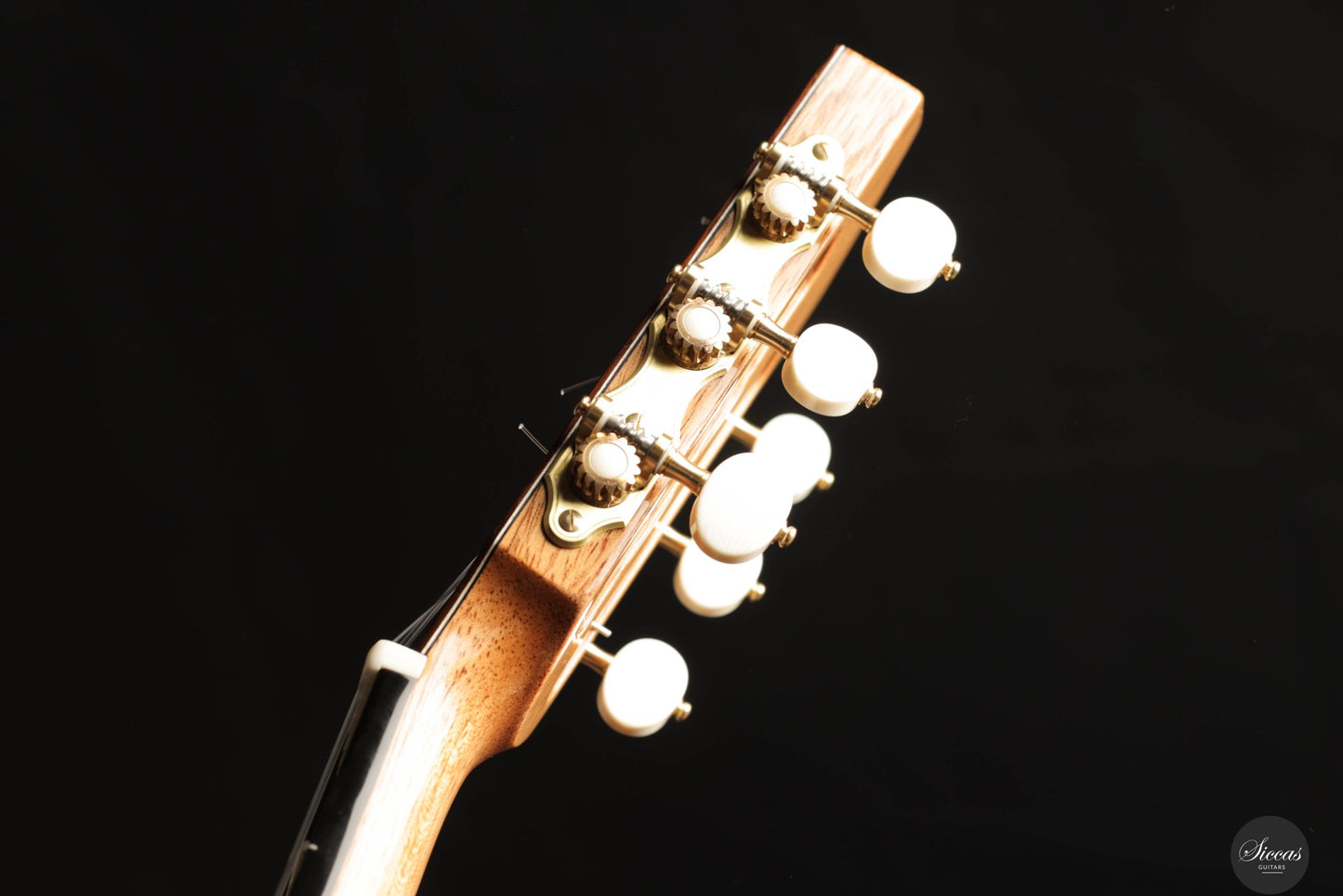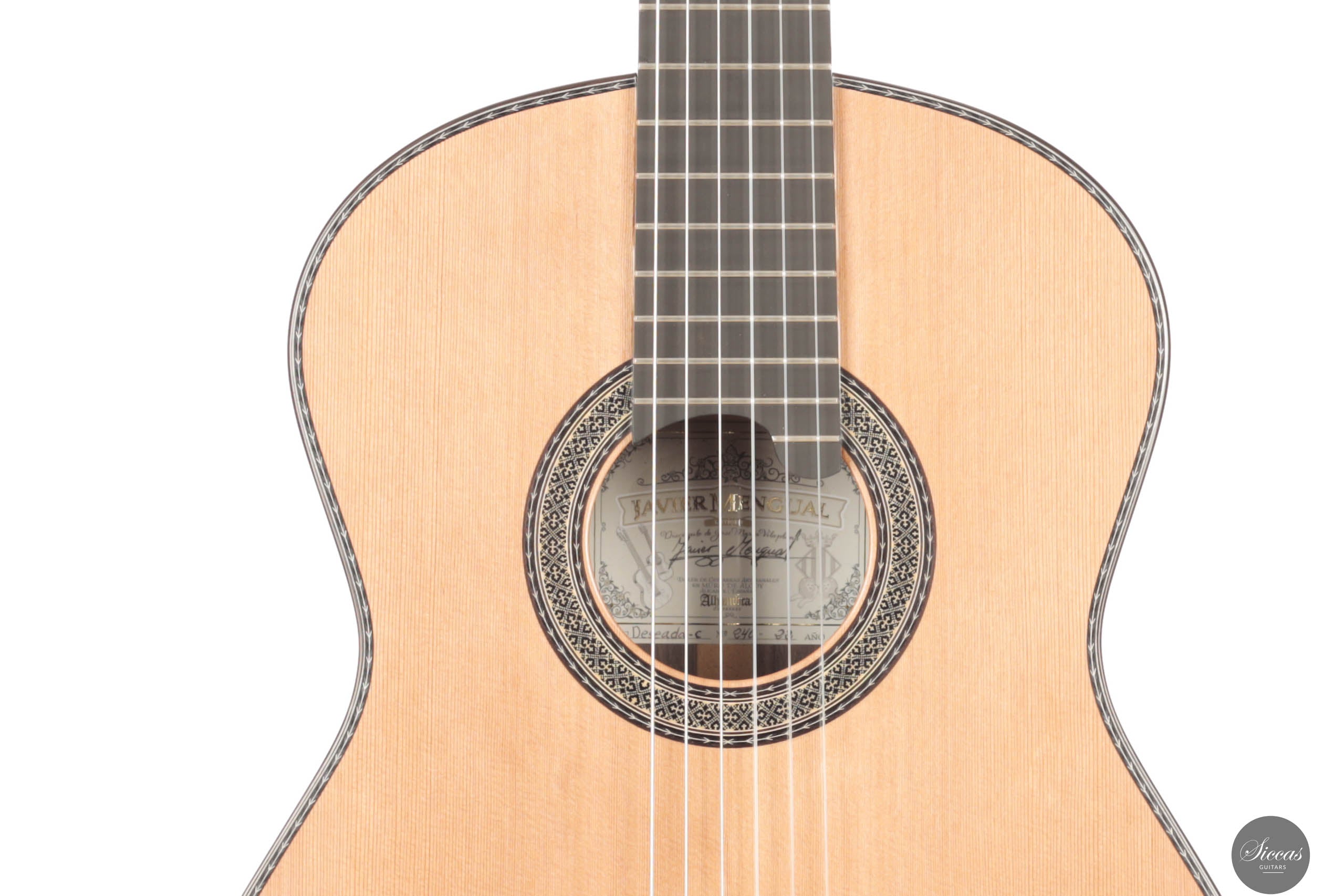 Equipped with Alessi tuners, a 650 mm scale length, and a 51 mm nut, the guitar offers a smooth and responsive playing experience. The nitrocellulose finish on the body enhances durability while the schellac polished soundboard insures maximum freedom of the top. With thoughtful features and a strong artistic identity, this special edition of the Deseada represents the pinnacle of Javier Mengual’s craftsmanship and a great opportunity for enthusiasts and performers alike.