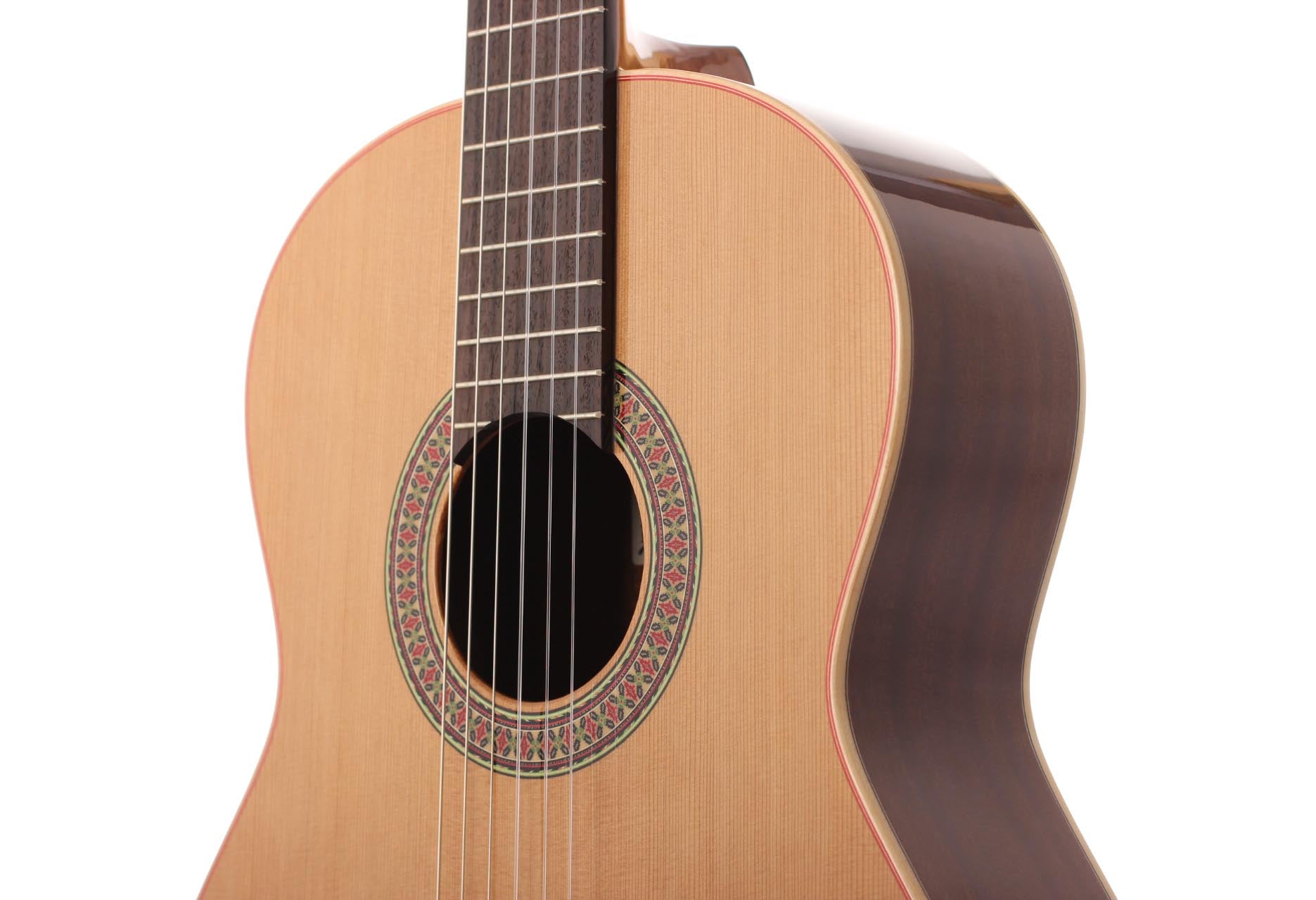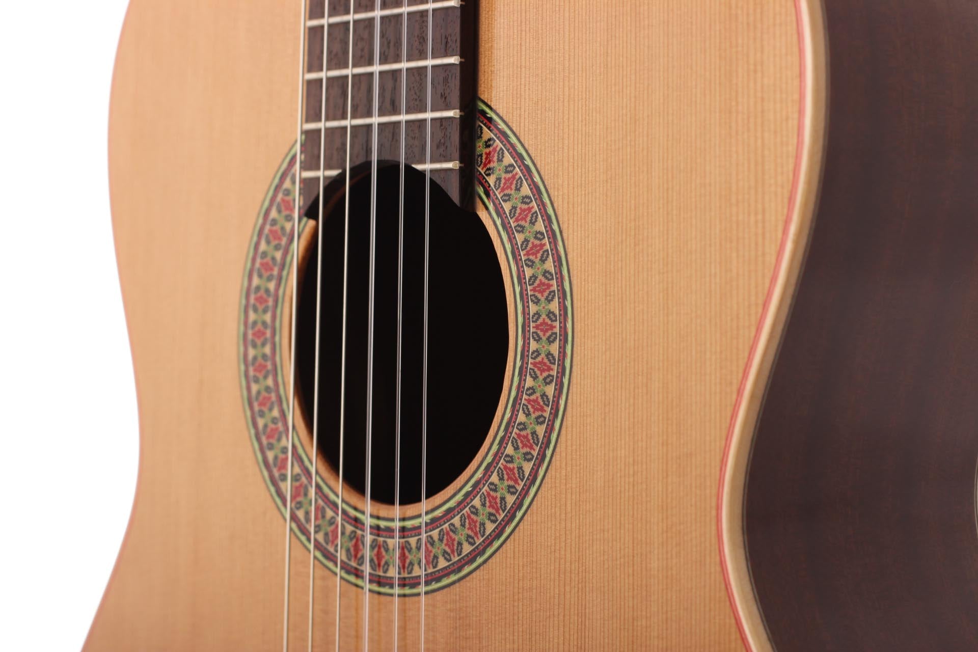 Diese Altamira N100 wurde ganz in der spanischen Tradition gebaut. Sie hat eine feine massive kanadische Zederndecke. Boden und Zargen sind aus laminierten Mahagoni. Die Klangqualität ist beeindruckend! Ihr Hochglanz Finish unterstreicht die besondere Verarbeitung und Holzauswahl. D