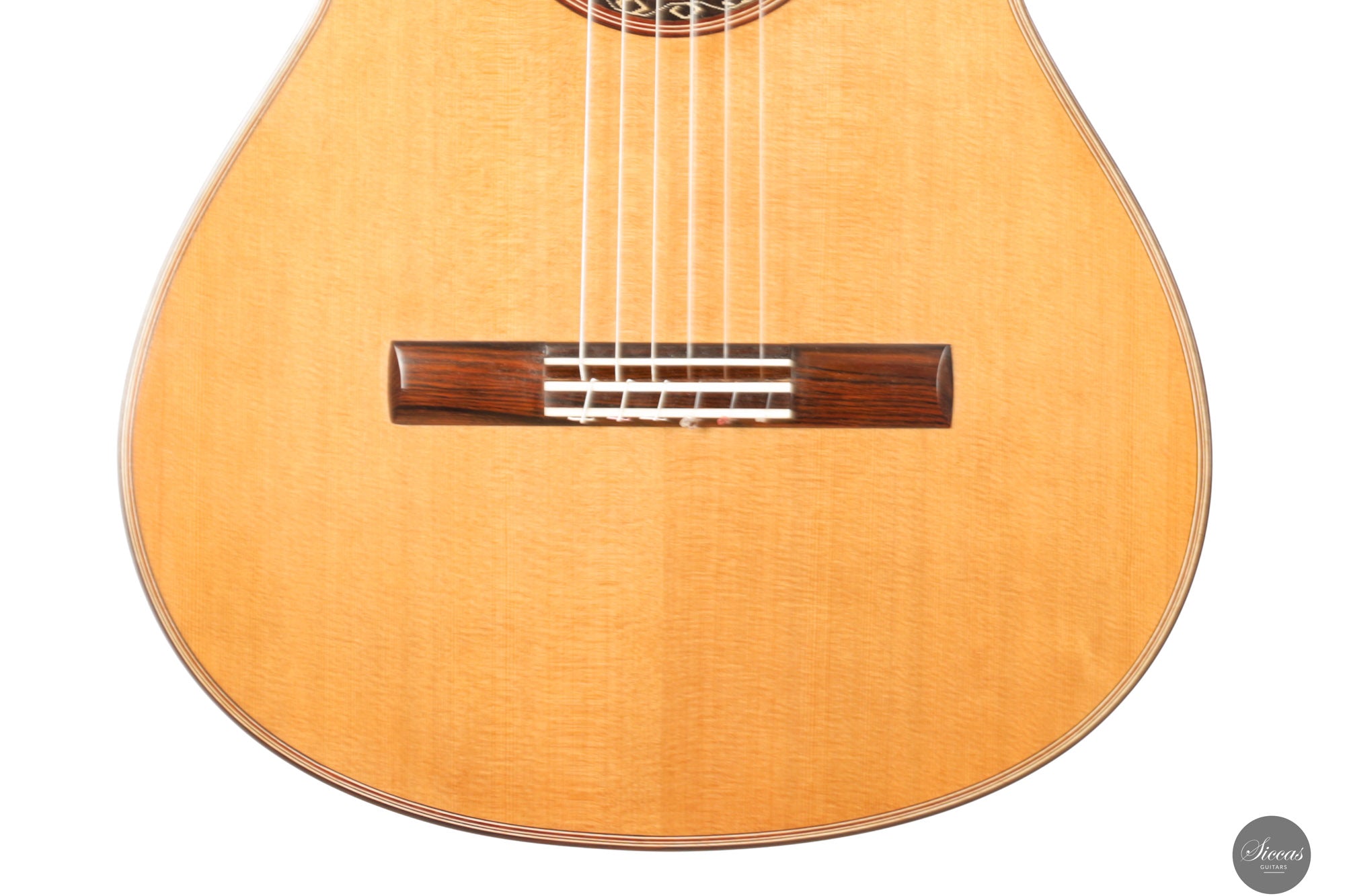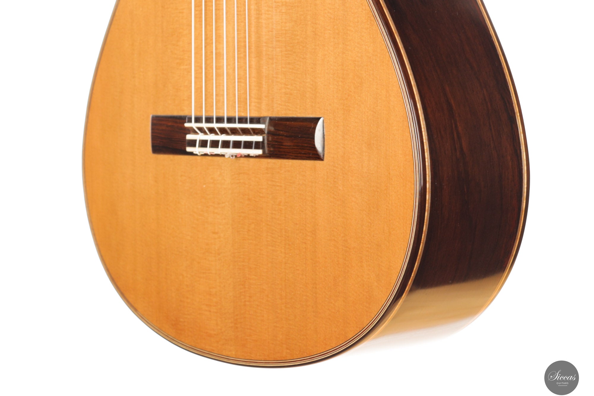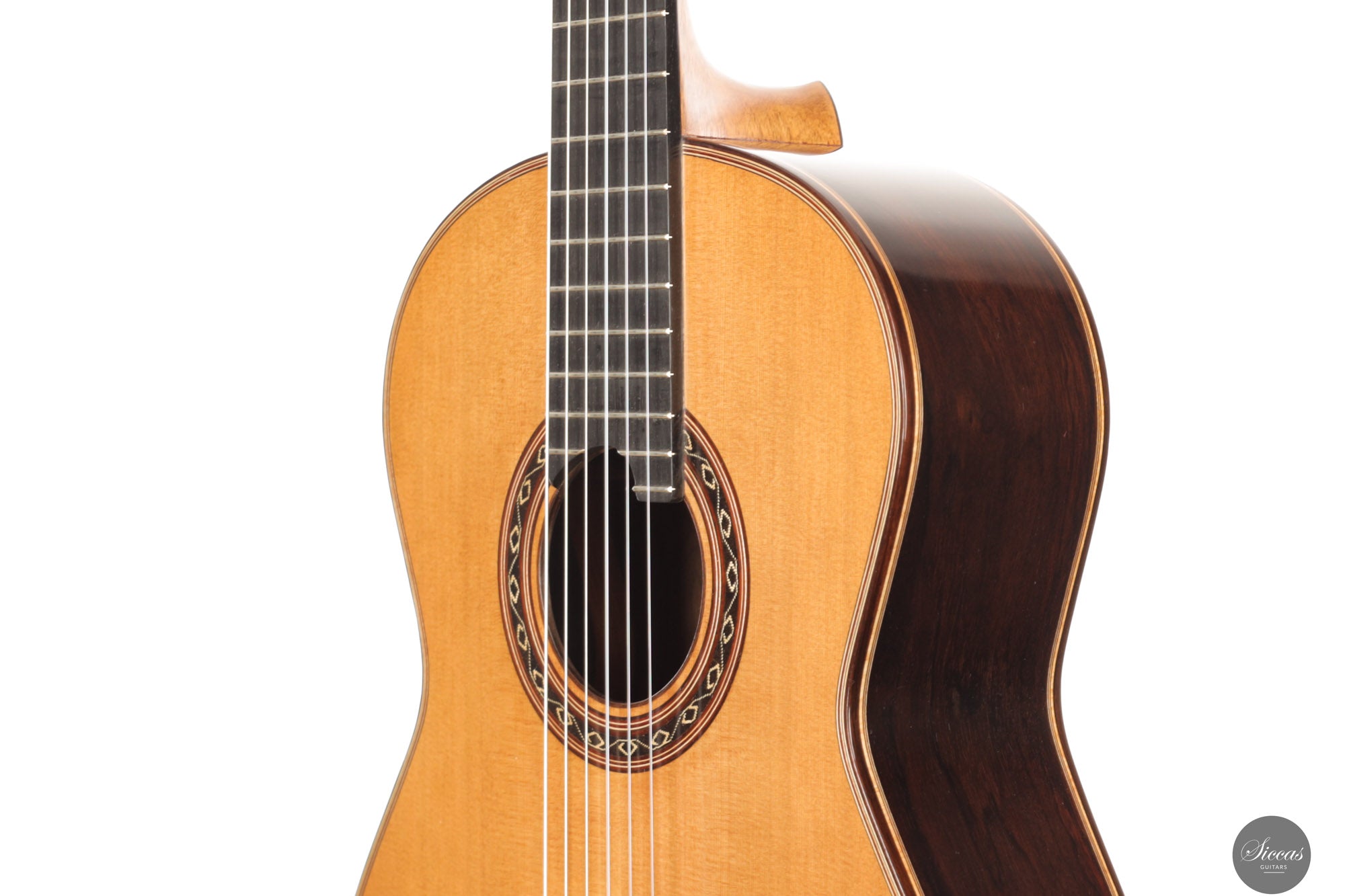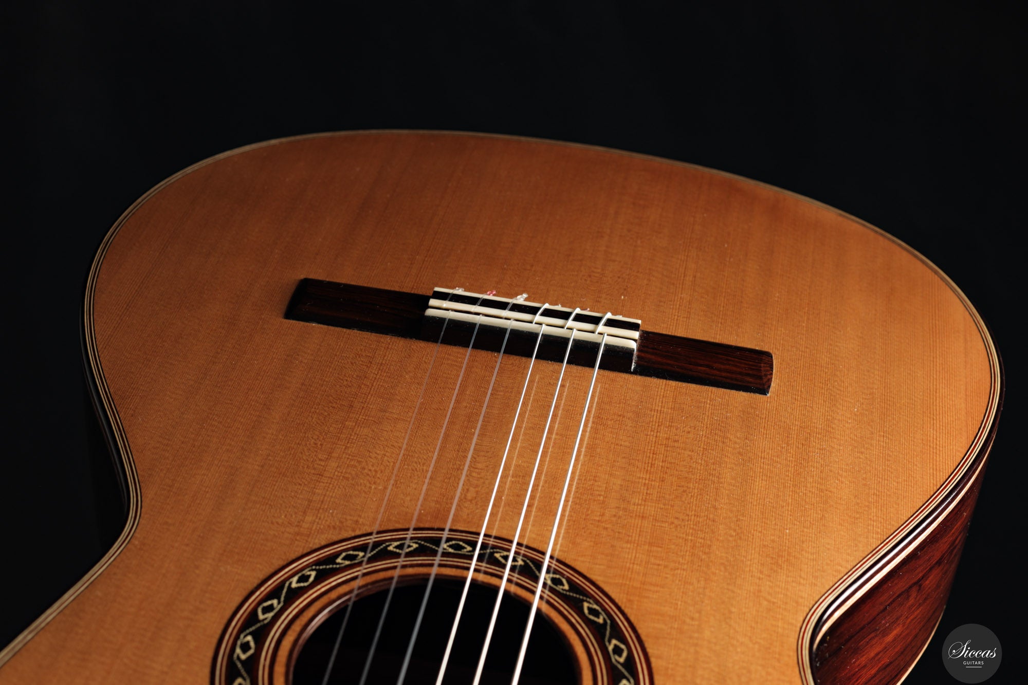 The 2025 Ana Espinosa guitar reflects the refined tradition of the Granada school, crafted with a cedar top for warmth and roundness of tone and cocobolo back and sides that add projection and depth. Its sound combines focused basses with a clear, lyrical midrange, achieving excellent balance and responsiveness across all registers. Built in the traditional Spanish style and finished with French polish, it showcases elegant craftsmanship aimed at the professional stage. With a 640 mm scale length, this instrument offers enhanced comfort while preserving clarity, power and tonal presence for expressive performance.
