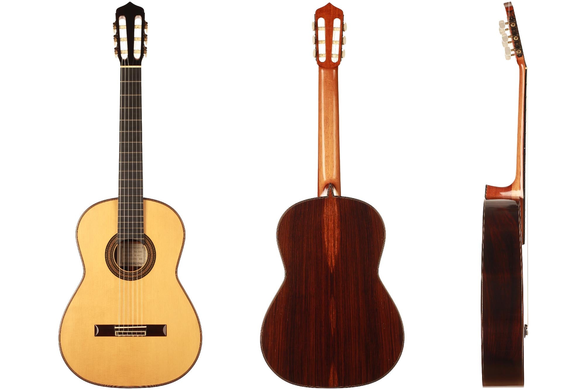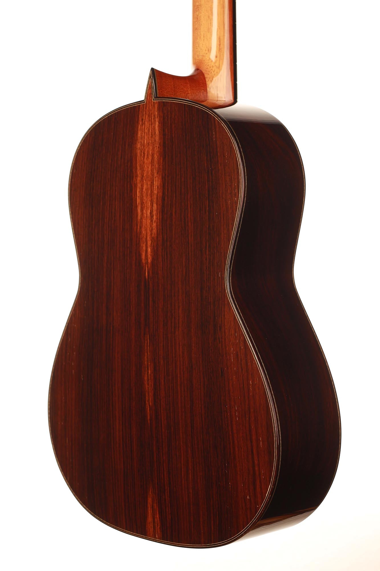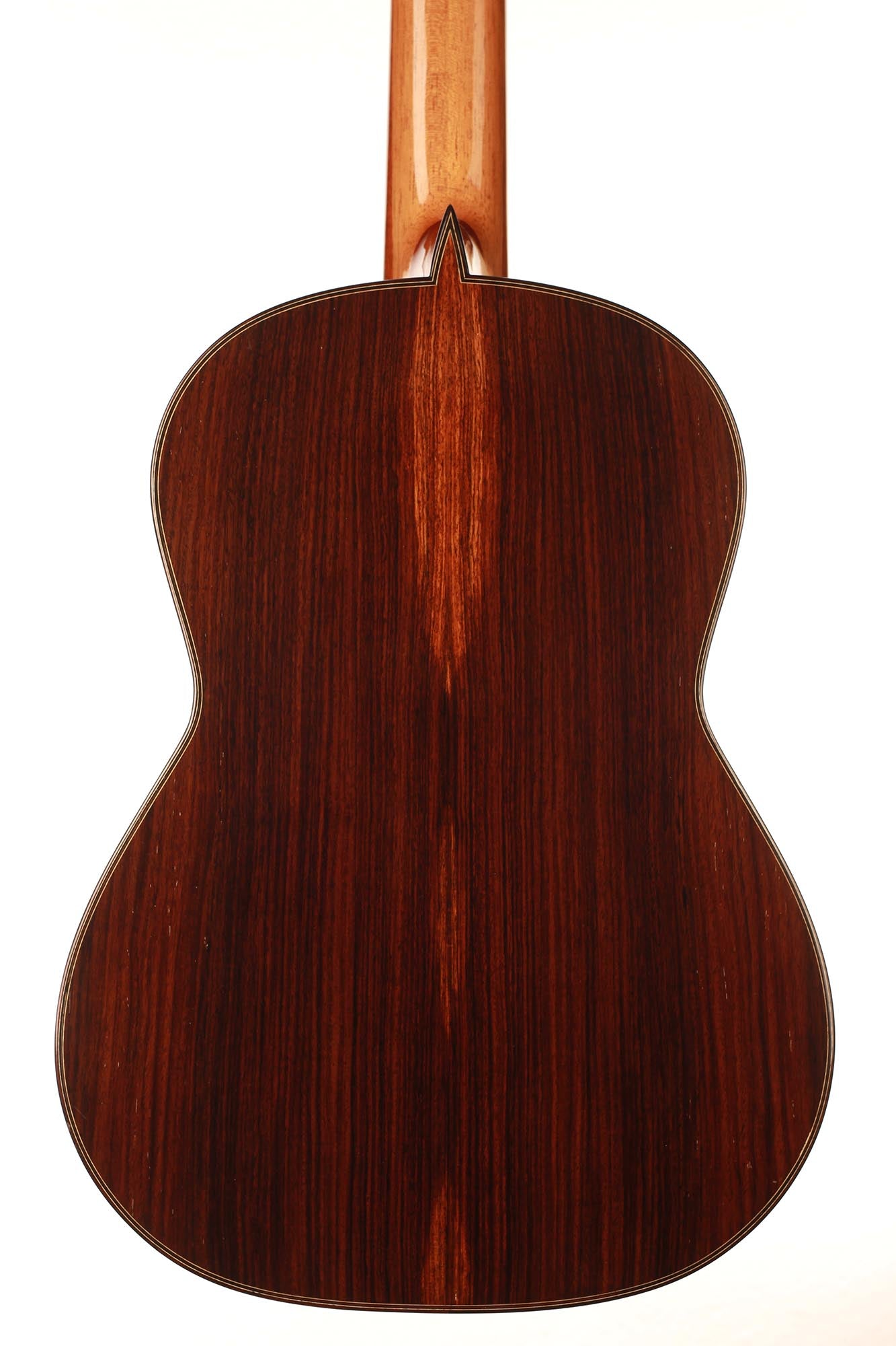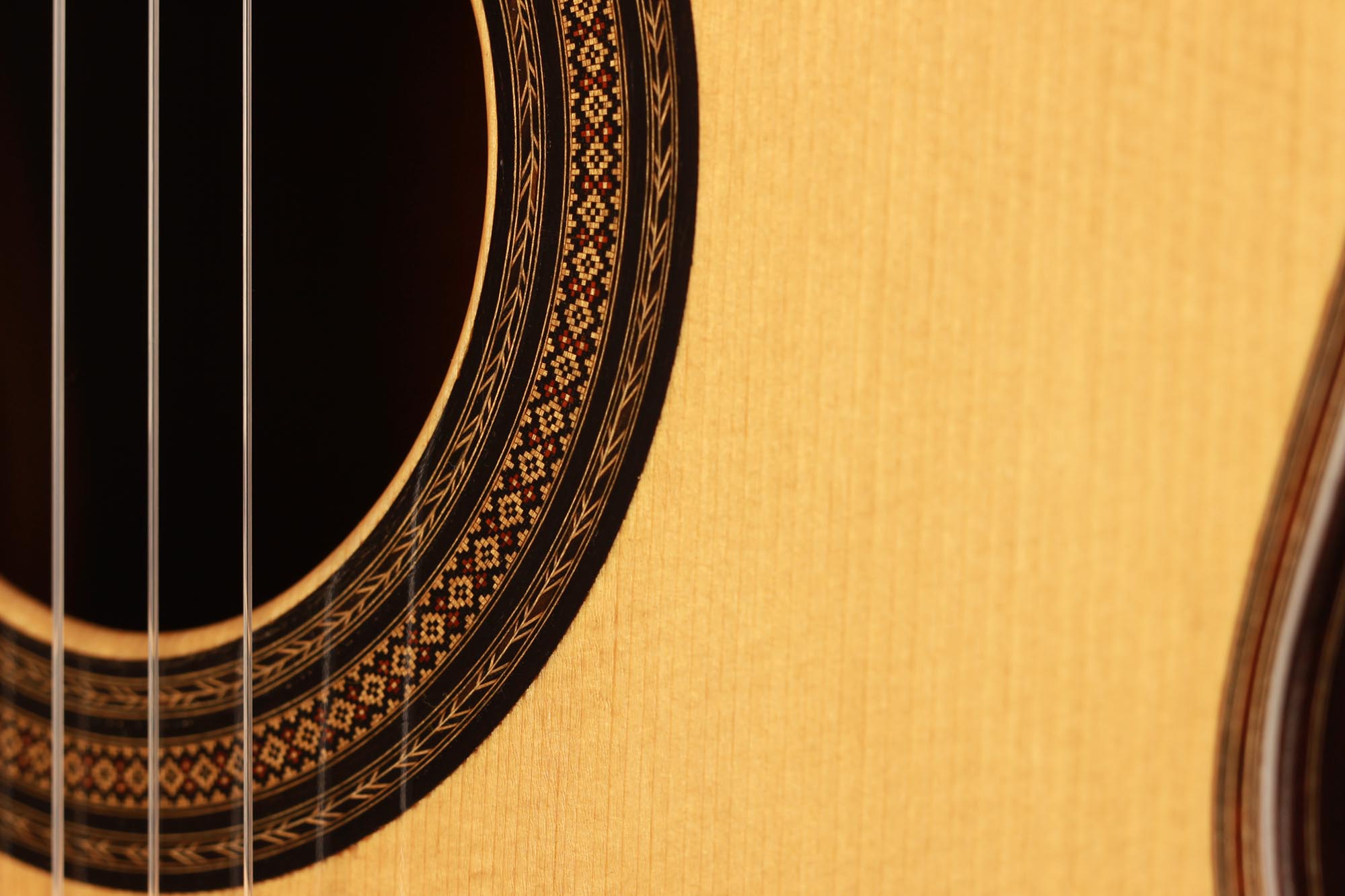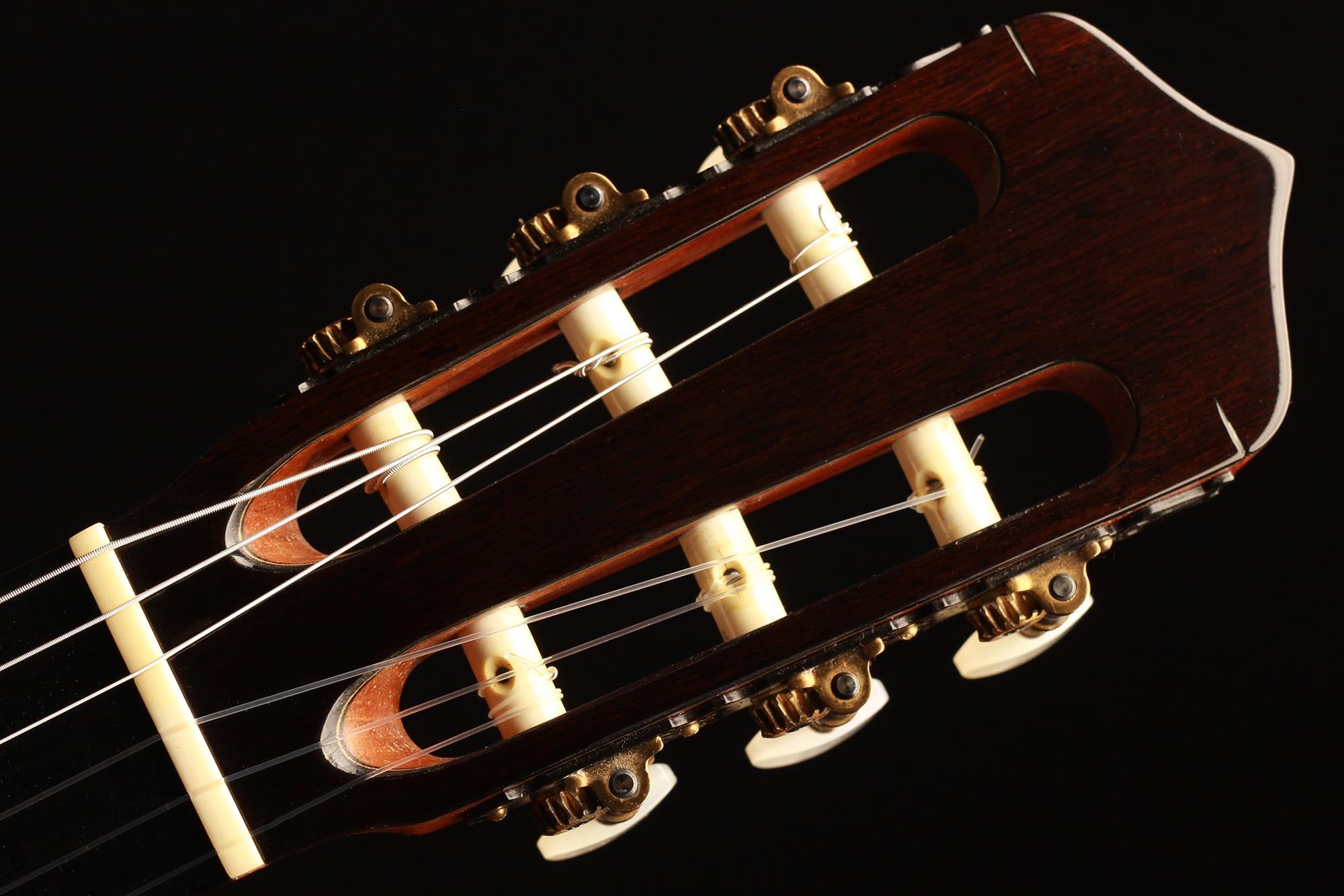 What an incredibly well-preserved instrument. Ever since it was finished in 1994, this guitar received an extreme care and is still in absolutely perfect condition after 25 years of musical activity. This Coclea model is an instrument designed for great concert performances, displaying a particularly powerful and colourful tone. Such a responsiveness and smooth playability are much appreciated qualities, and the stunning sustain makes it a fully polyvalent instrument. Eventually, one has to point out the delicate and seductive timbre of the first string of this harmonically complex and rich guitar.