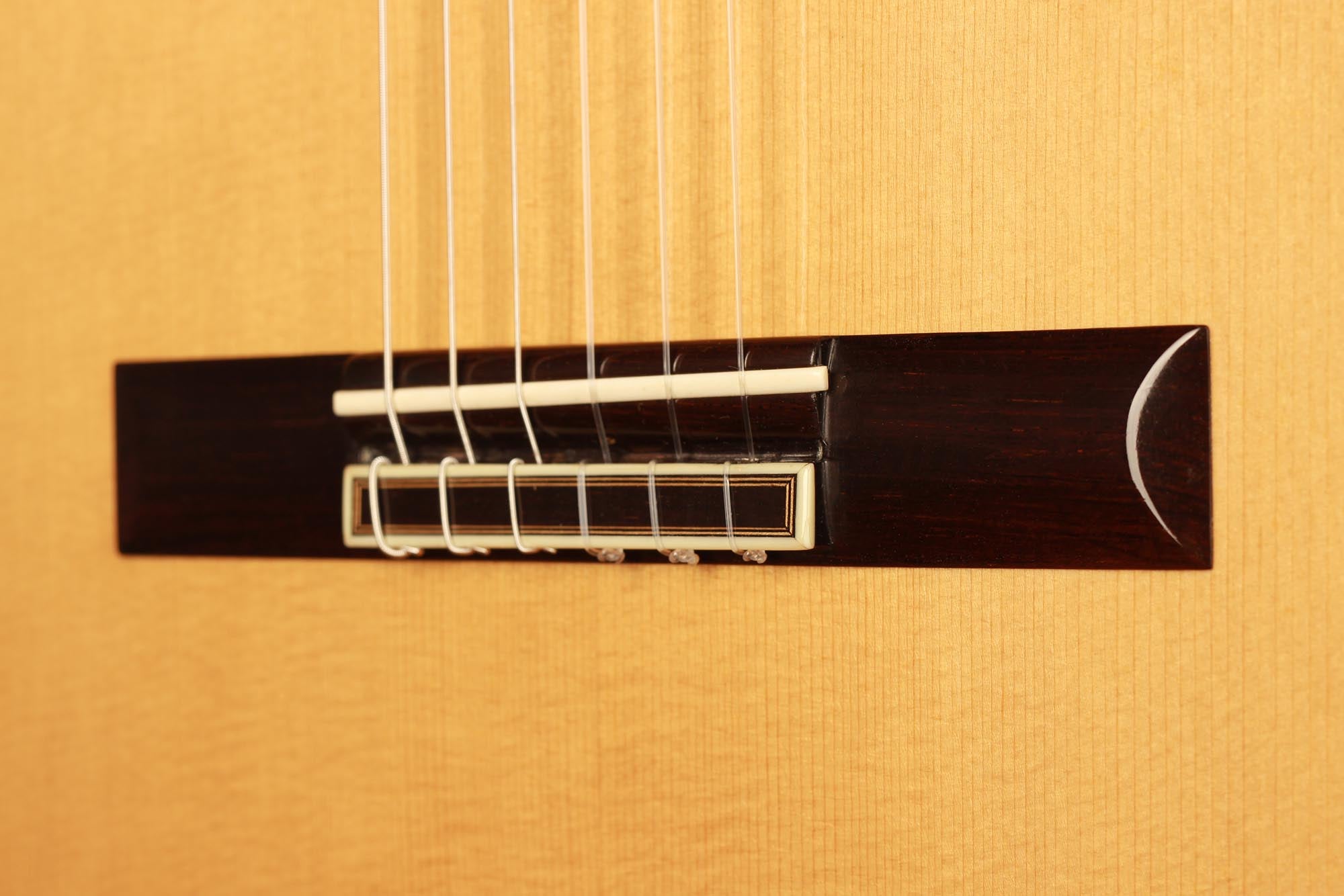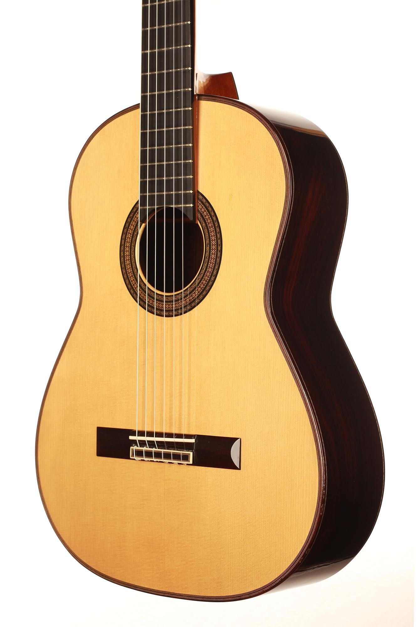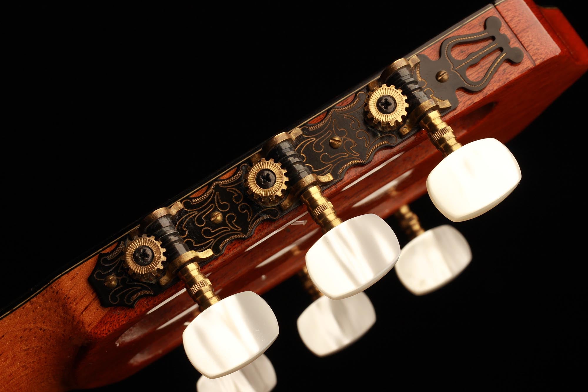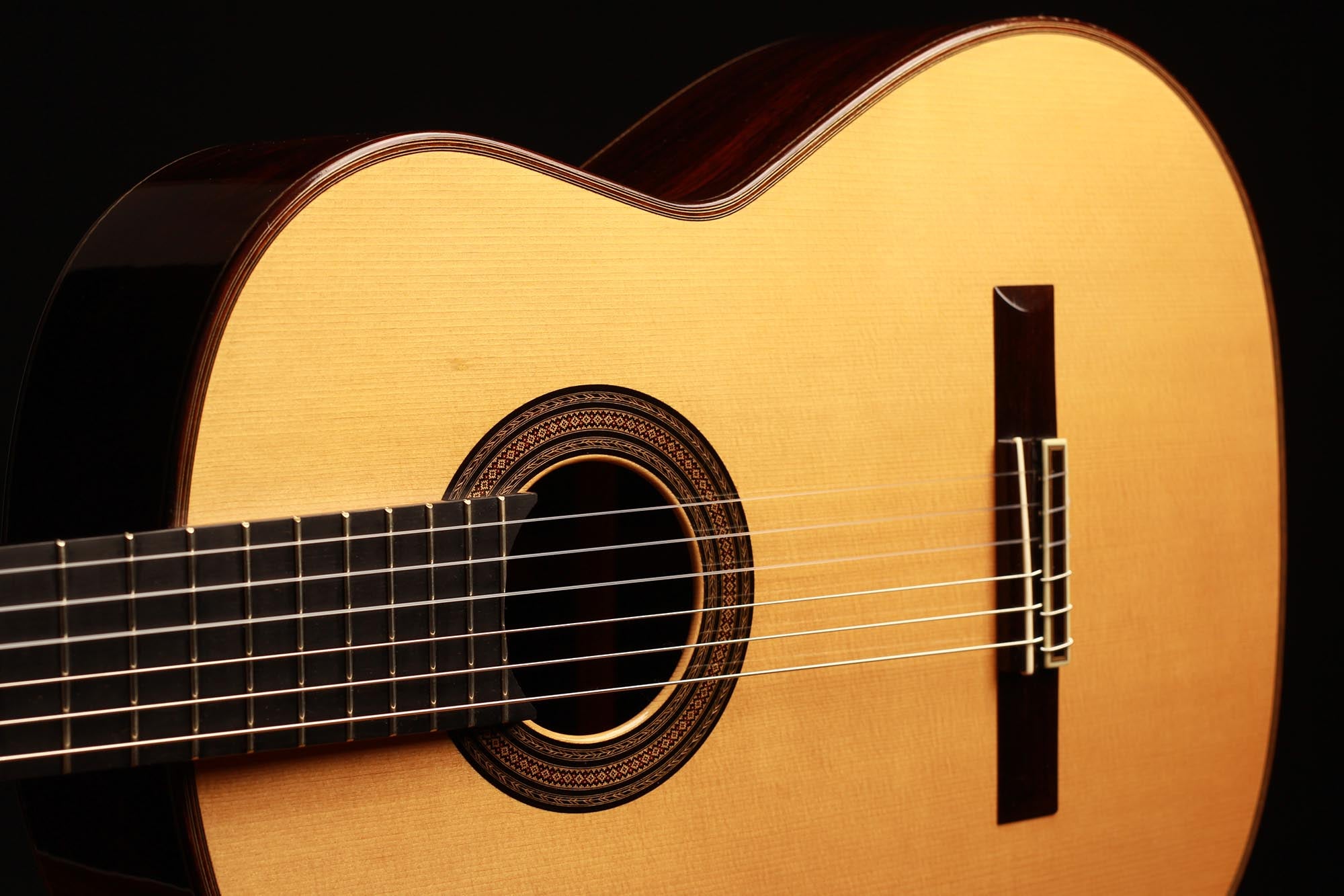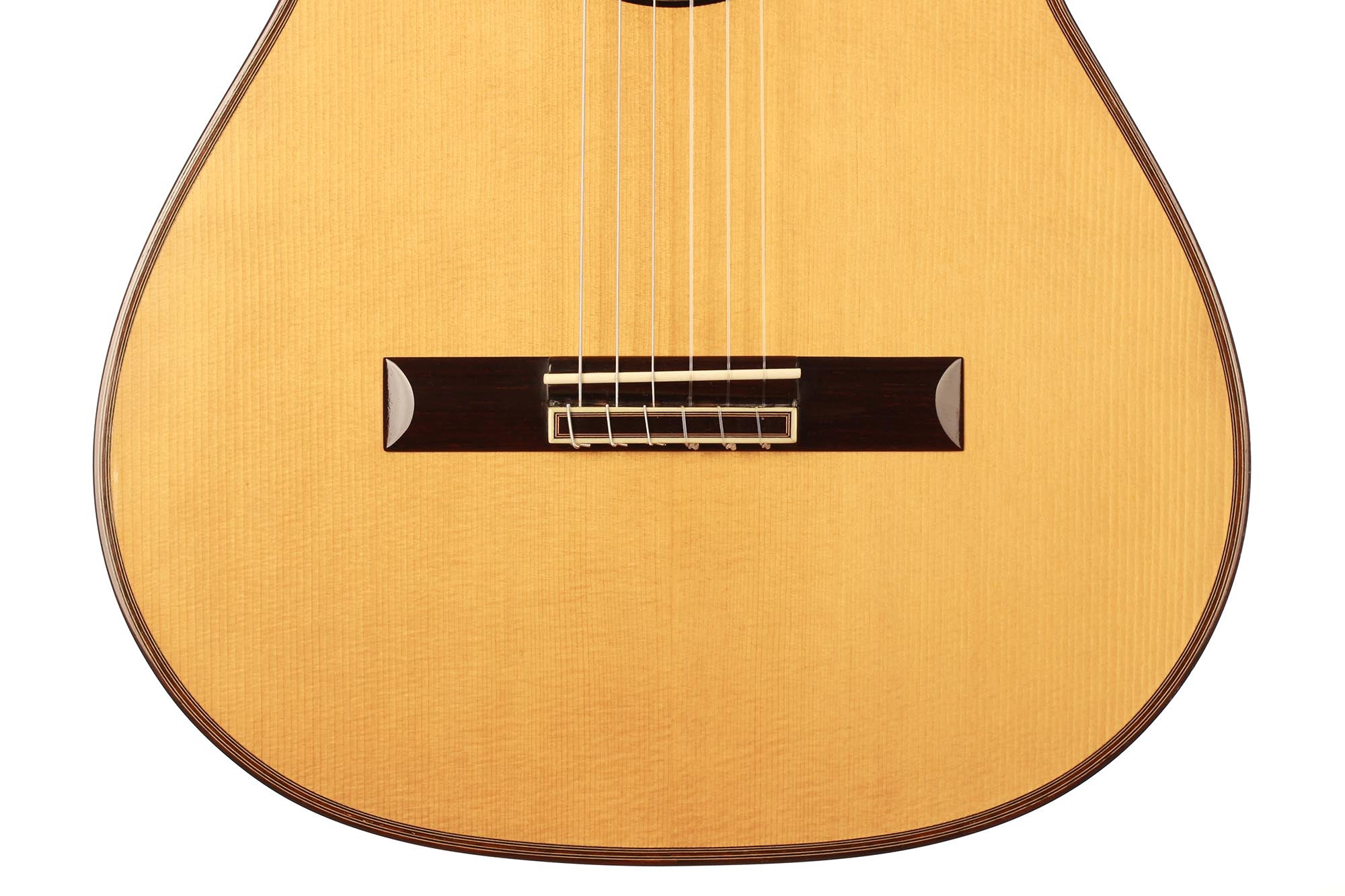 What an incredibly well-preserved instrument. Ever since it was finished in 1994, this guitar received an extreme care and is still in absolutely perfect condition after 25 years of musical activity. This Coclea model is an instrument designed for great concert performances, displaying a particularly powerful and colourful tone. Such a responsiveness and smooth playability are much appreciated qualities, and the stunning sustain makes it a fully polyvalent instrument. Eventually, one has to point out the delicate and seductive timbre of the first string of this harmonically complex and rich guitar.