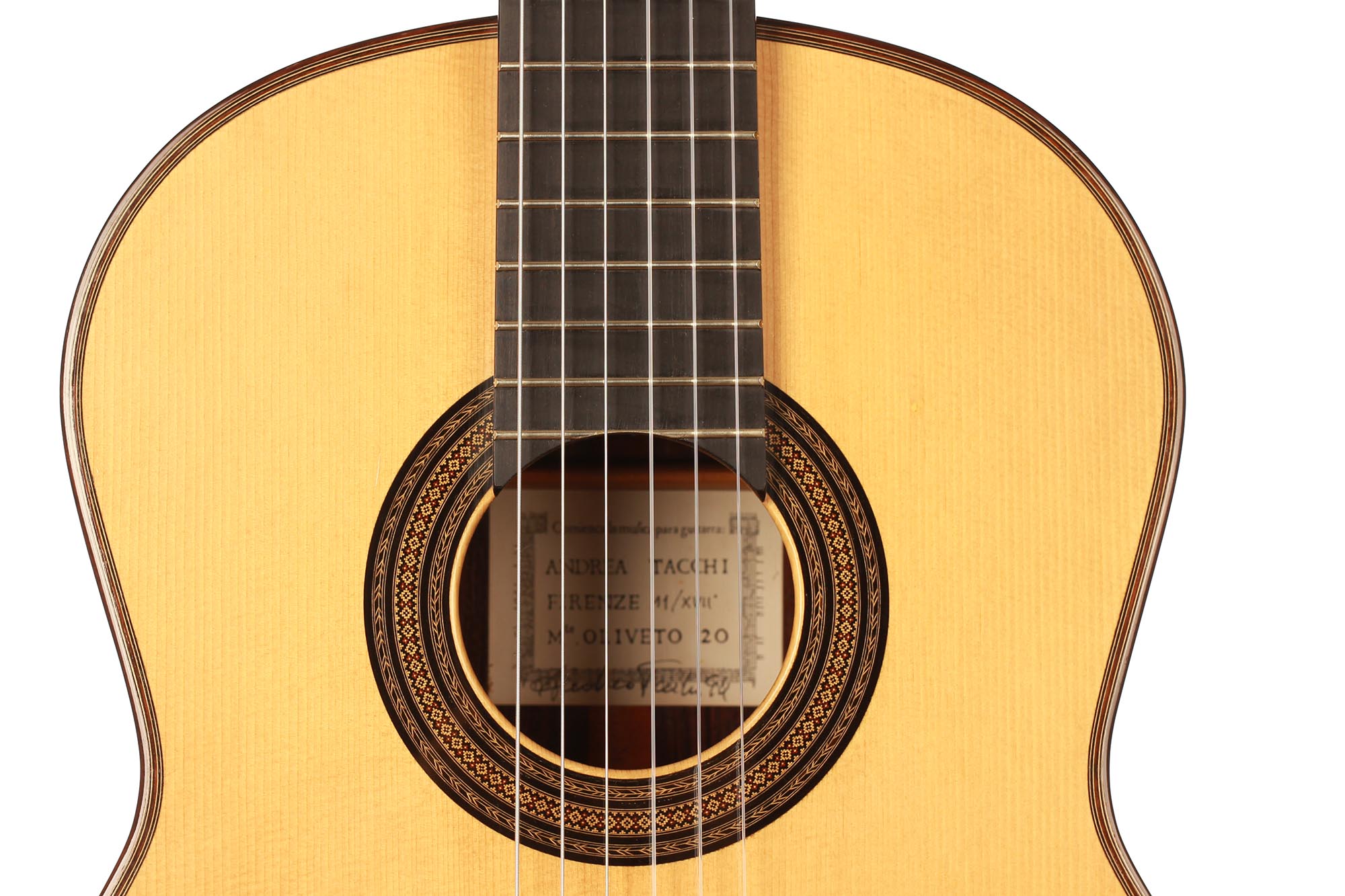 Andrea Tacchi was born in Florence (Italy) in 1956 at the time the city was flourishing with artisan’s workshops and artists’ studios. This very stimulating environment and meeting the South American guitar maker Ricardo Brané drove him to become a luthier. In close contact to Robert Bouchet and Daniel Friederich during the 80s, he developed his craftmanship and his artistic taste. Later on, he kept learning from other important guitar makers such as Ignacio Fleta, José Romanillos and Robert Ruck.