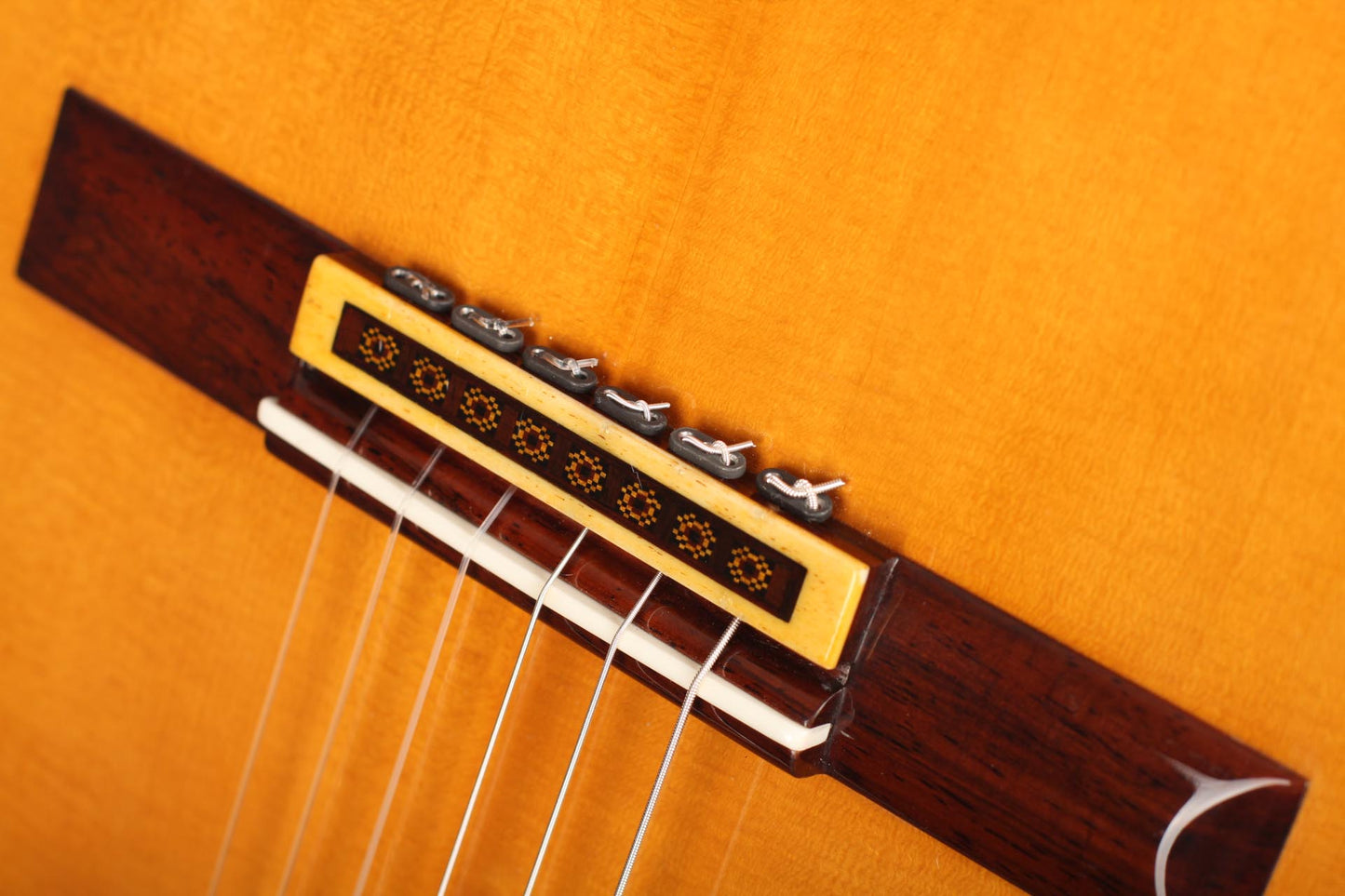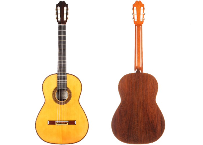 Andrea Tacchi was born in Florence (Italy) in 1956 at the time the city was flourishing with artisan’s workshops and artists’ studios. This very stimulating environment and the meeting of the South American guitar maker Ricardo Brané drove him to become a luthier. In close contact to Robert Bouchet and Daniel Friederich during the 80s, he developed his craftmanship and his artistic tastes. Later on, he kept learning from other important guitar makers as Ignacio Fleta, José Romanillos and Robert Ruck. This guitar is a great technical achievement as well as an emotional tribute to Robert Bouchet and the French guitar making school of the twentieth century.