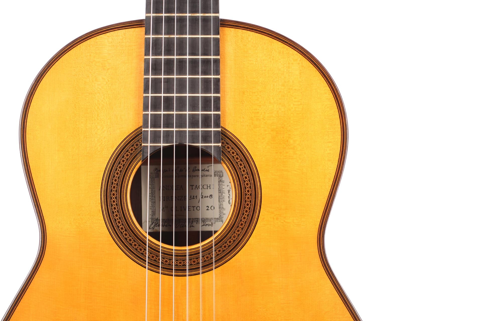 This “Omaggio a Bouchet” 2008 guitar witnesses the exceptional work and craftmanship of Andrea Tacchi.