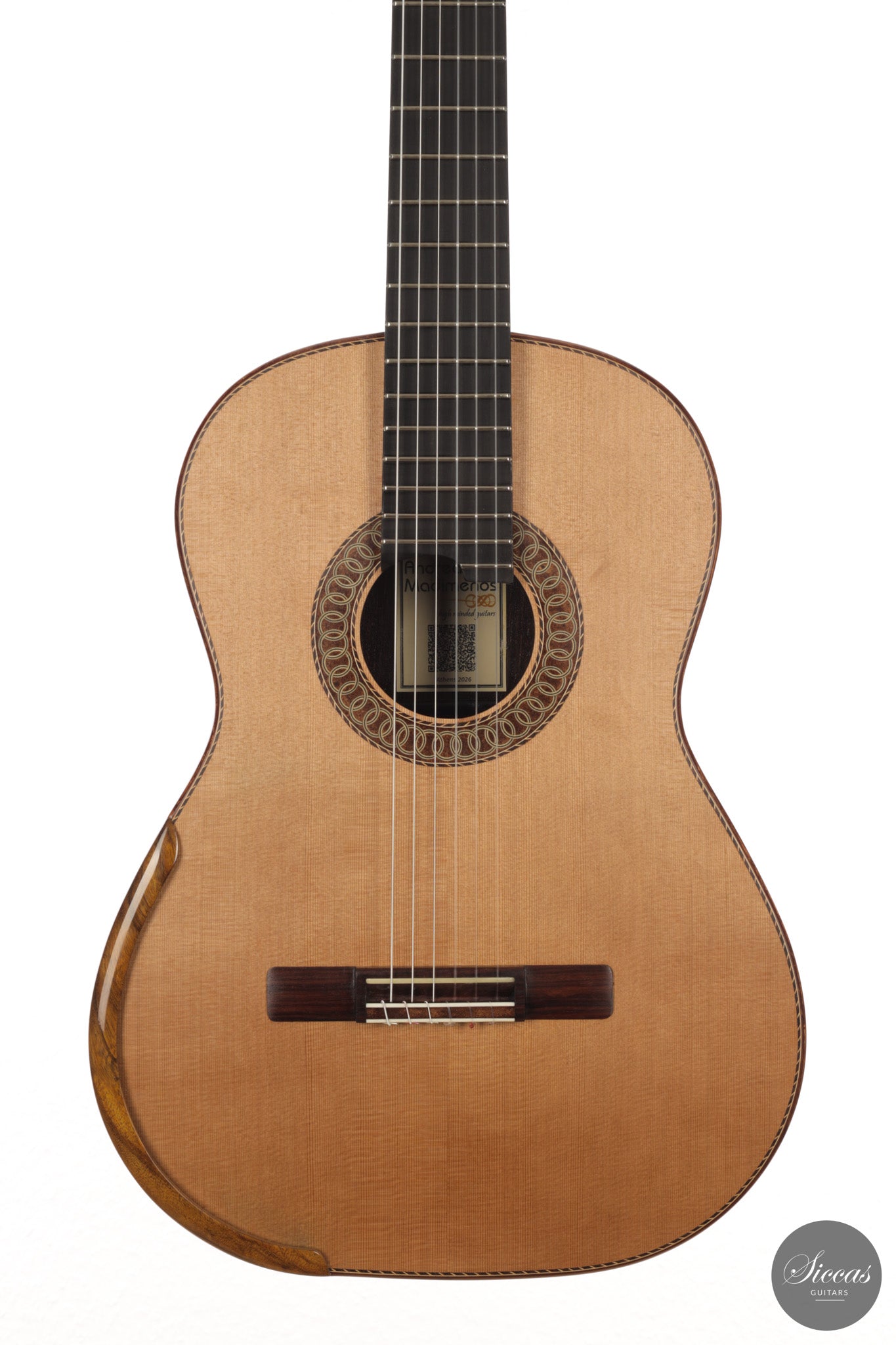 Andreas Madimenos’s 2026 No. 78 is a lattice guitar with a cedar top and doubled ovangkol back and sides, built around a patent protected internal frame developed with Charalampos Koumridis. Its voice is rich, powerful, and highly responsive, with deep basses, expansive overtones, and singing trebles. The instrument offers strong projection, long sustain, and broad dynamic control, while details such as the ergonomic armrest and handmade Pagos tuners reflect a carefully integrated design.