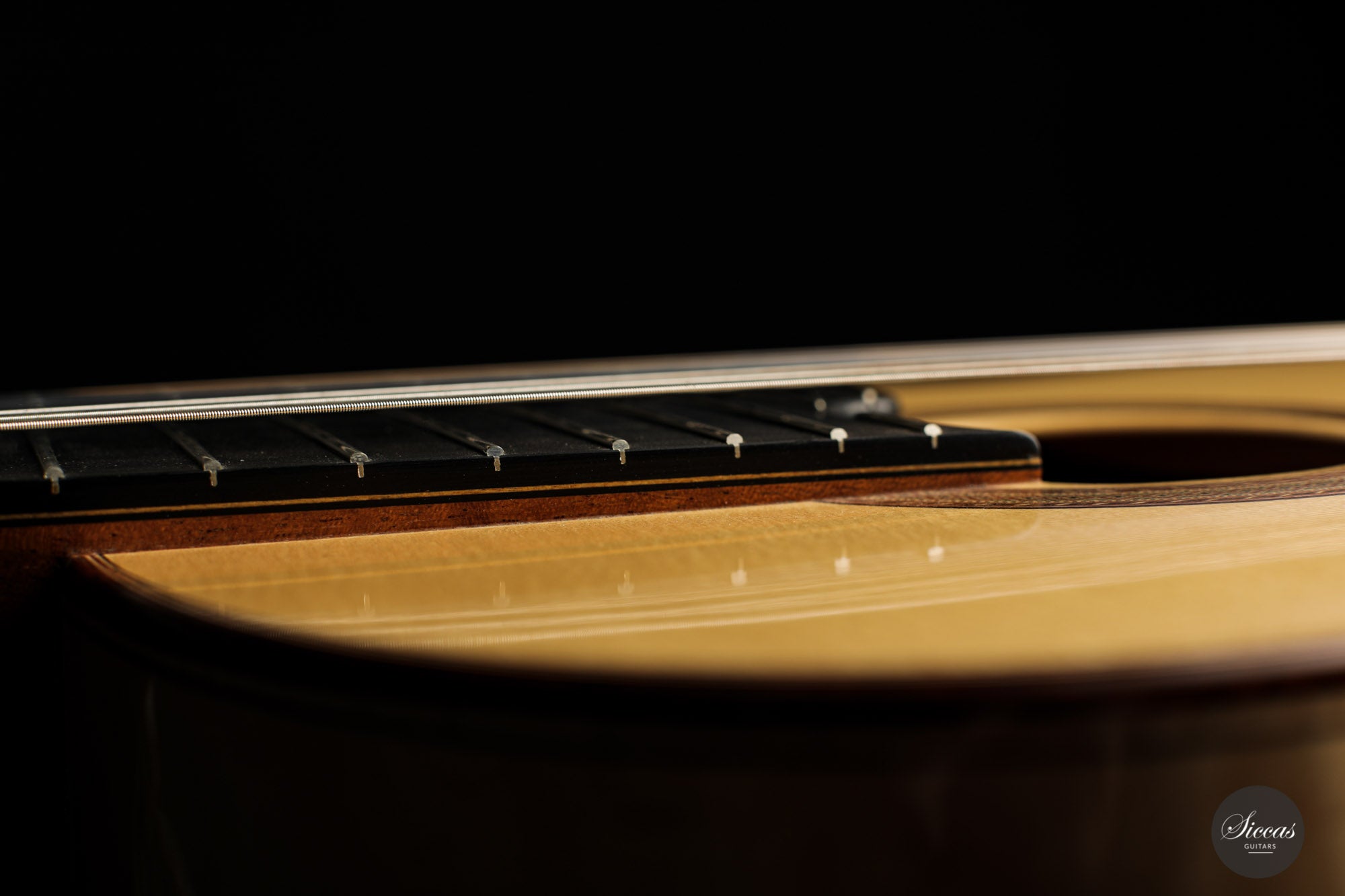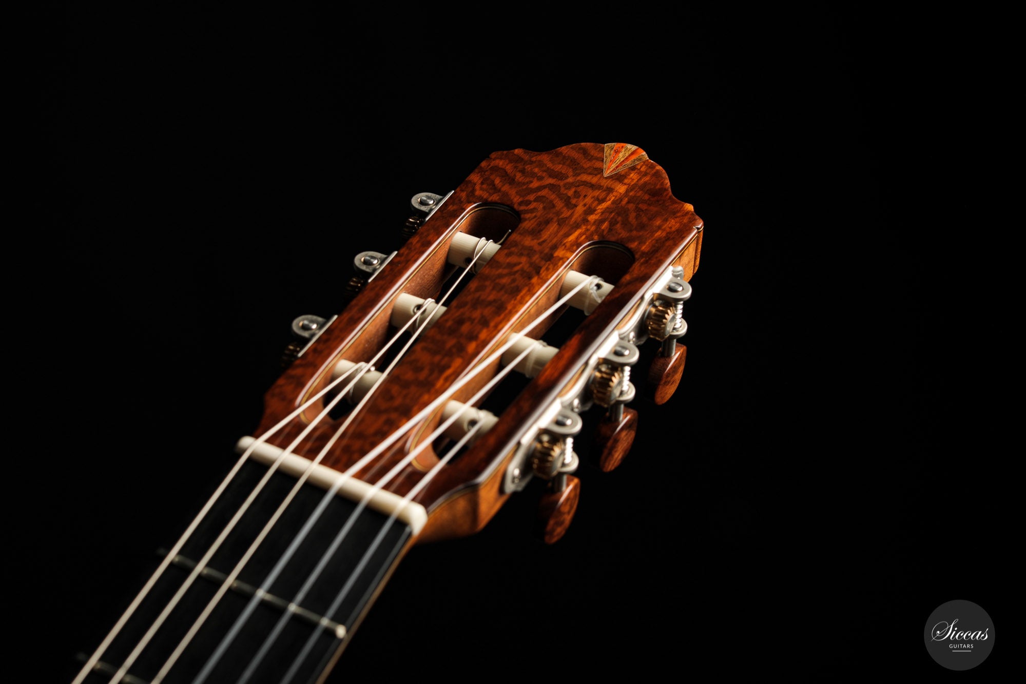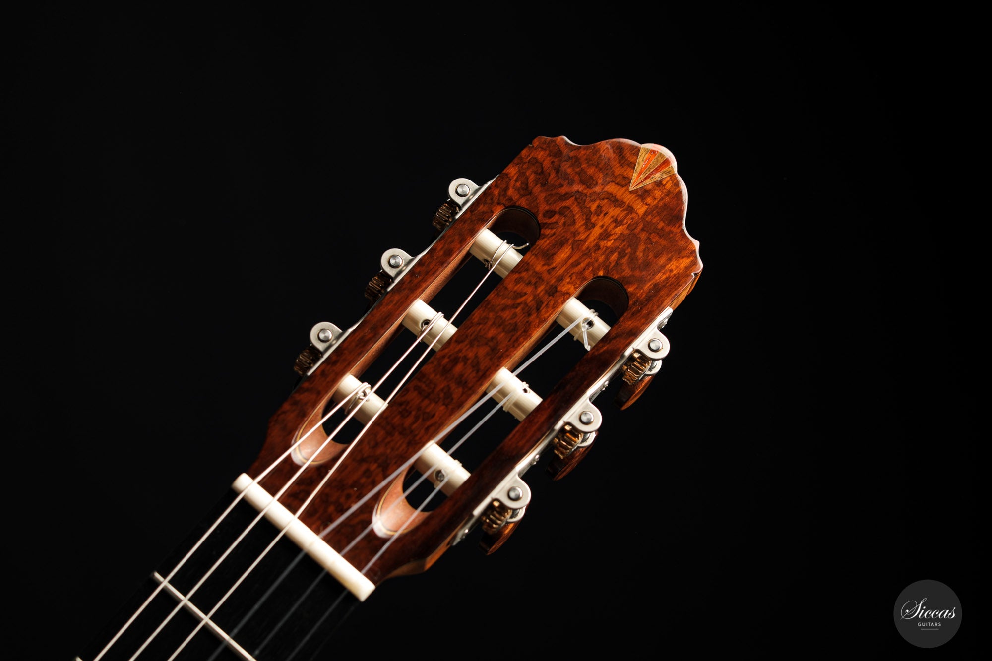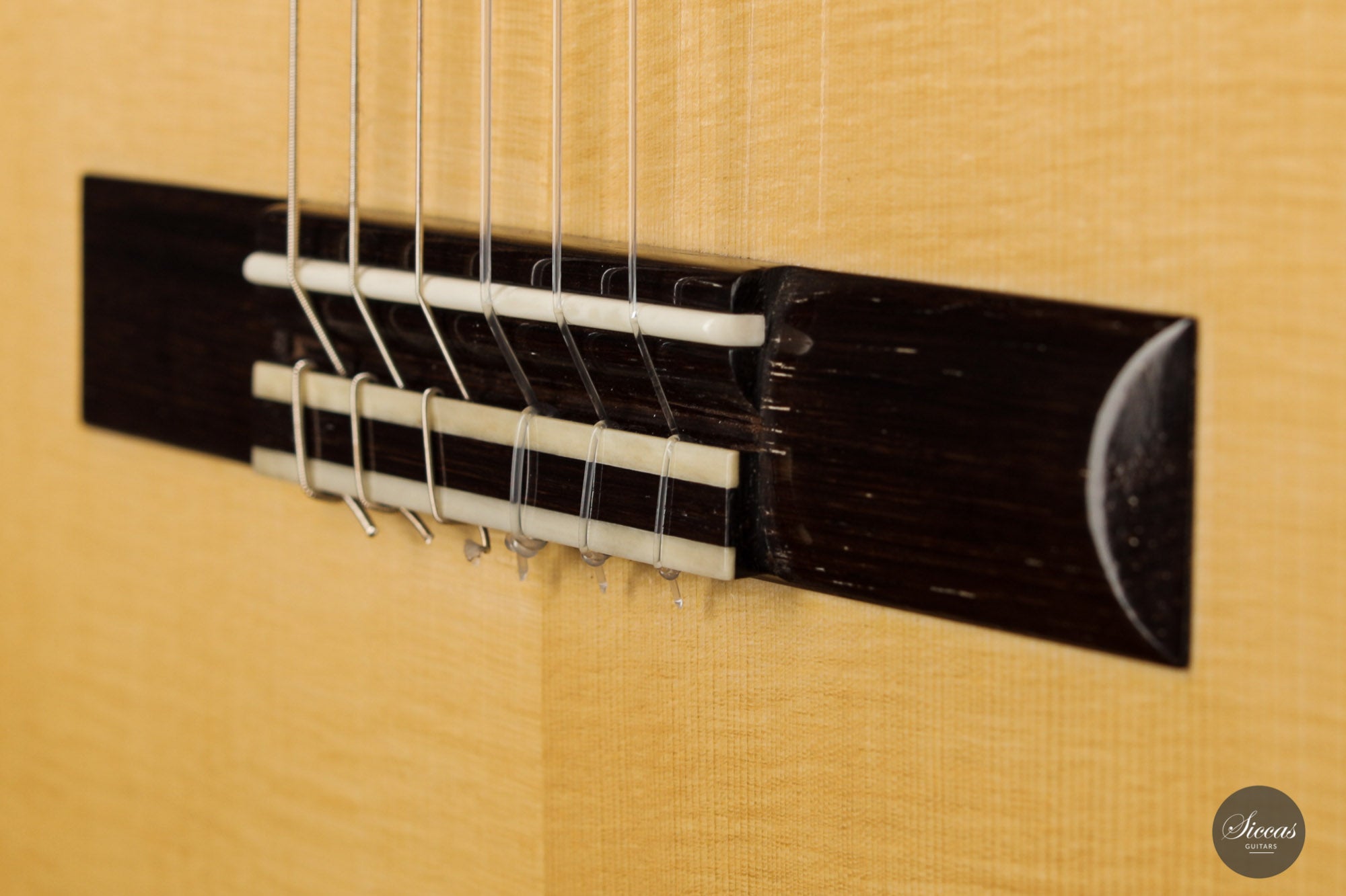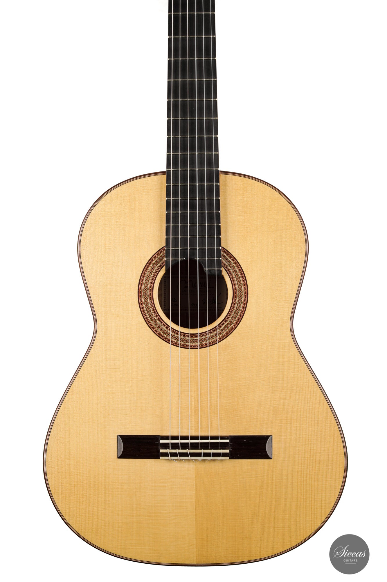What an interesting guitar, featuring a back and sides made of beautiful birdseye maple. This wood, which was frequently used among luthiers of romantic guitars in the XIXth century and was later also highly appreciated by the father of the classical guitar, Antonio de Torres, is in demand again and enjoys growing popularity on the stages of international competitions and concert halls. The particular clarity and transparency of its tone, together with its excellent aesthetic qualities, make it a truly attractive tonewood.