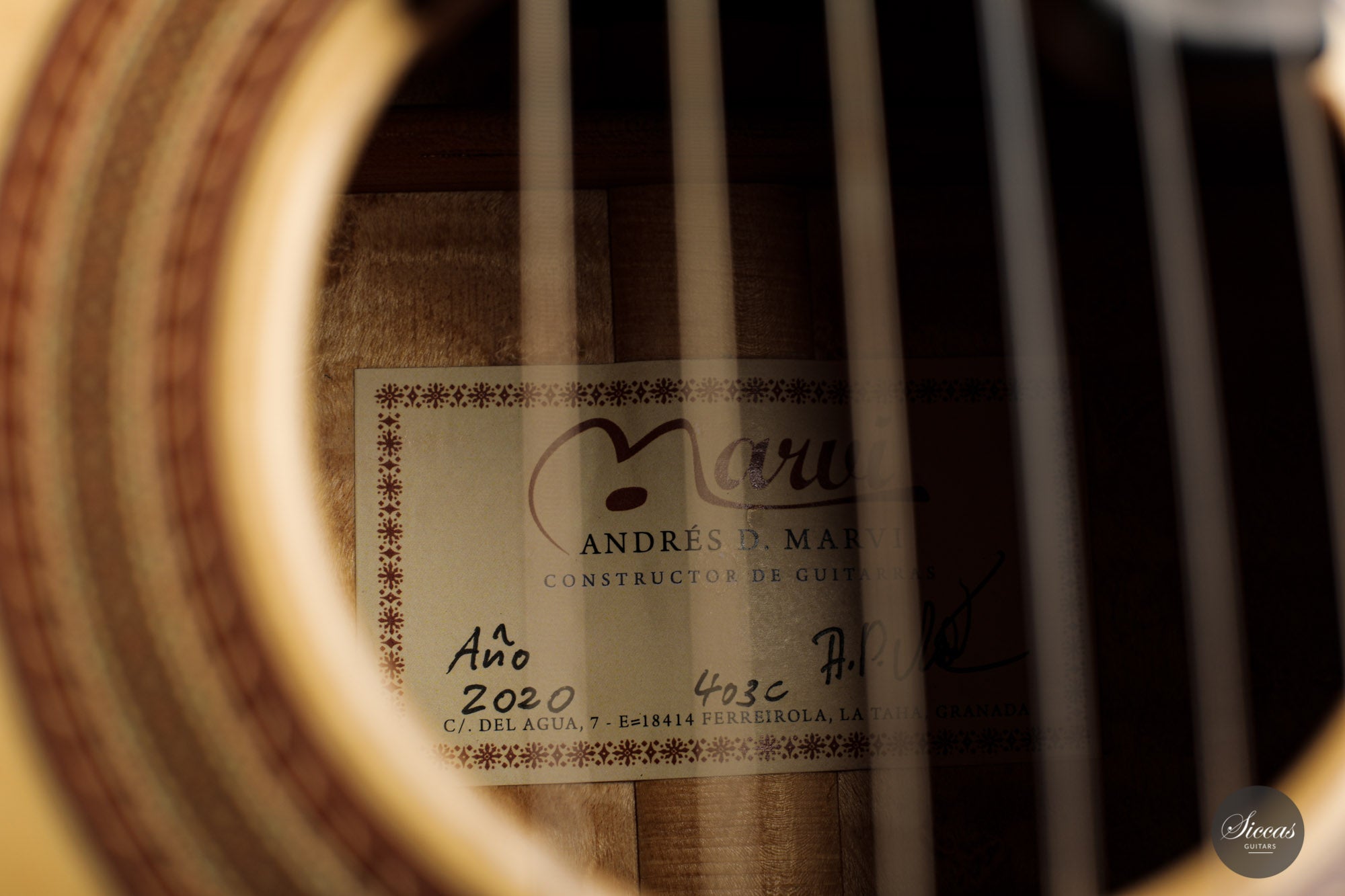 Andrés Daniel Marvi was born in 1956 and has built guitars in his workshop near Granada, Spain for about 30 years. As a child, he learned to play the guitar, and after his Abitur (A-Level, high-school diploma) he worked as a guitar teacher. He started to get interested in guitar building as well as sound production around this time. He took part in a guitar building class led by the famous luthier José Romanillos in 1984 and proved his technical talent there. In 1985 he passed his guitar building exams in Erlangen and moved to Spain two years later.
