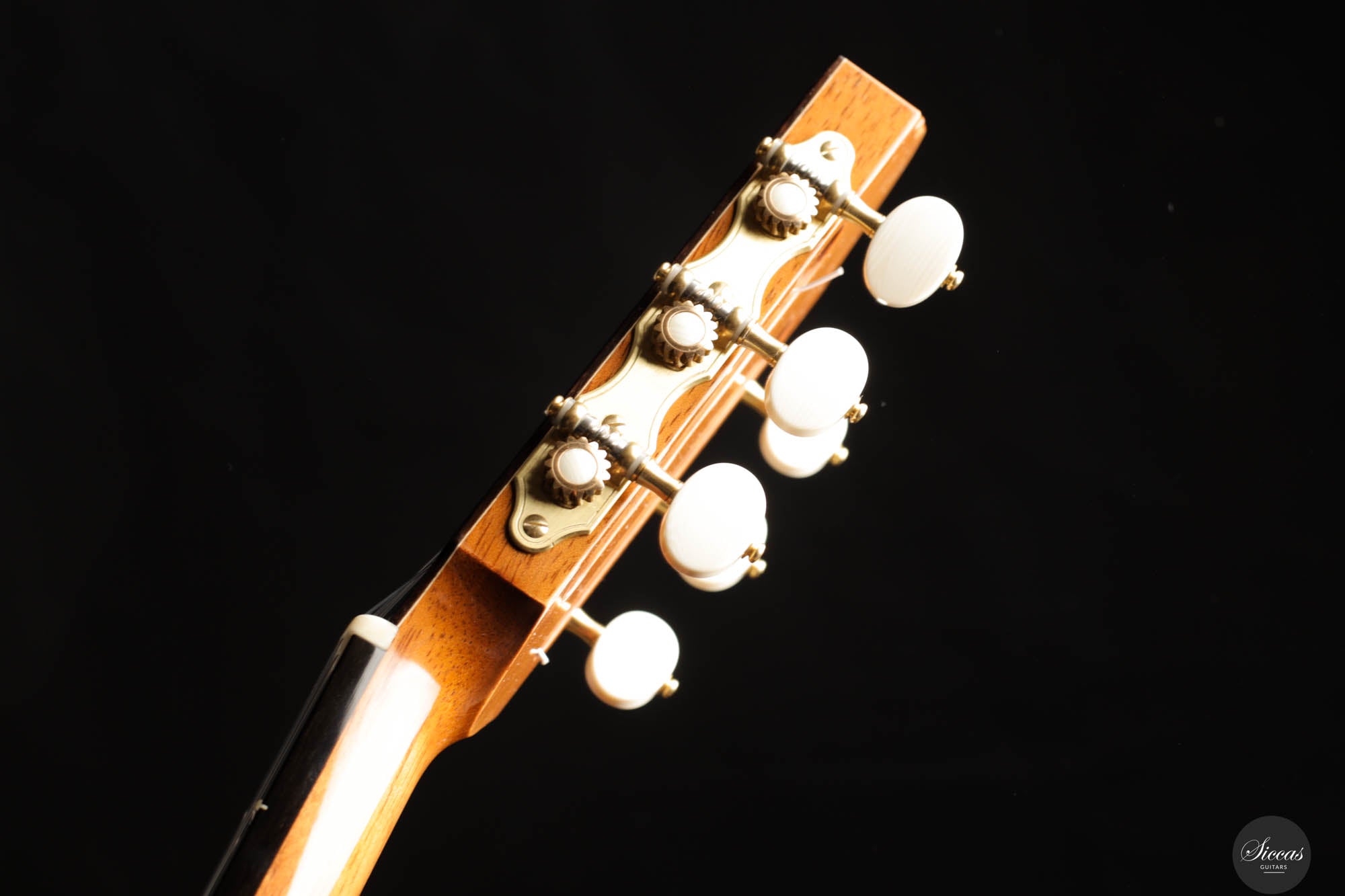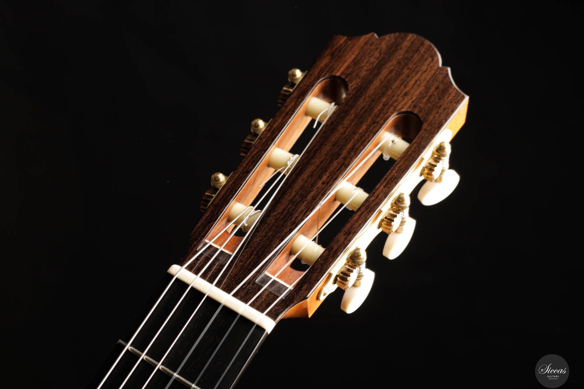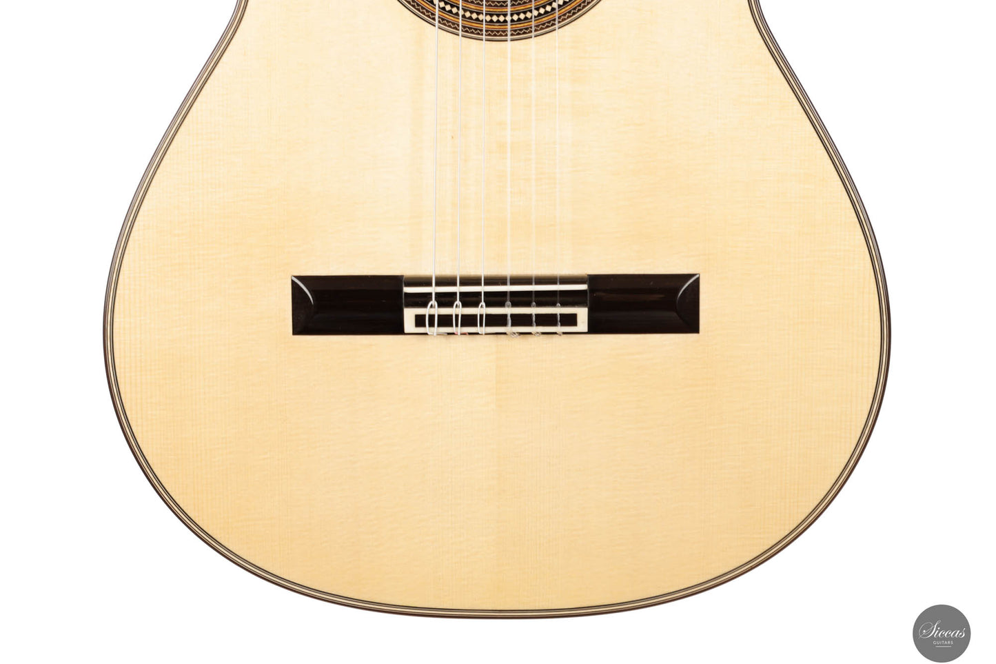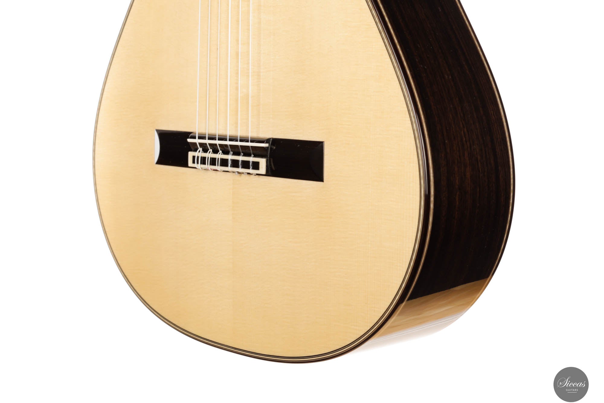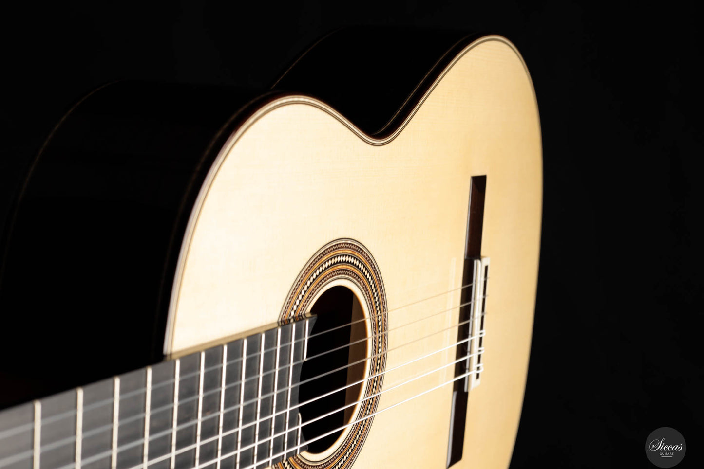This exceptional guitar, crafted by the renowned Angelo Vailati, stands as a paragon of traditional luthiery, executed with remarkable precision and meticulous attention to detail. Vailati's reputation for creating instruments of the highest caliber is fully embodied in this guitar. It features a spruce soundboard, a classic choice known for its bright and clear tonal qualities, which harmonizes beautifully with the Indian rosewood used for the back and sides. This combination of woods not only enhances the guitar's resonant properties but also contributes to its aesthetic appeal. The instrument is further elevated by the inclusion of premium Alessi tuners, renowned for their precision and reliability, which complement the guitar's overall design and functionality.