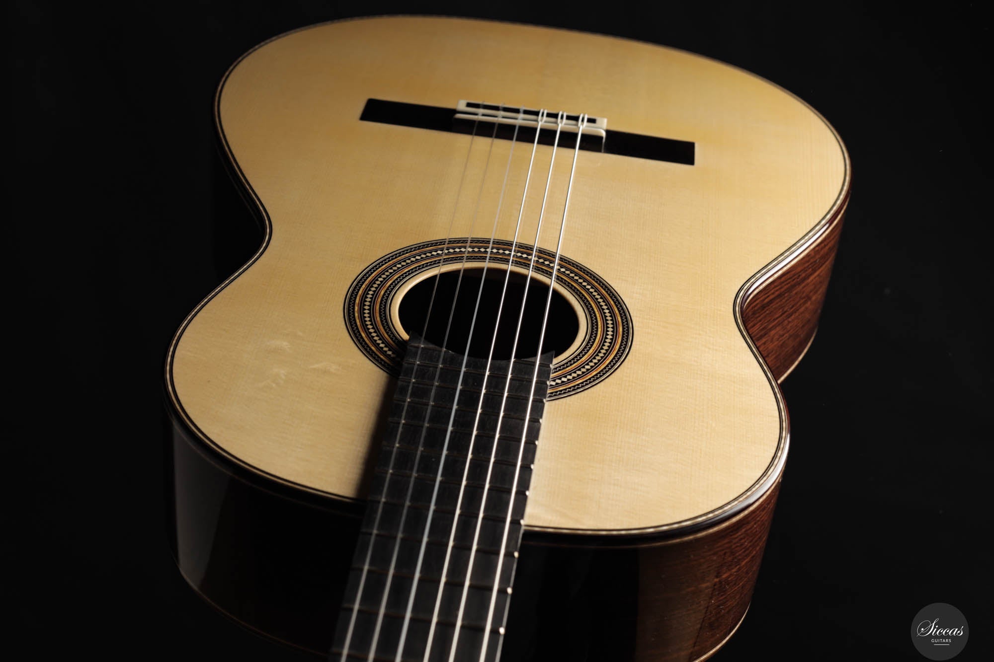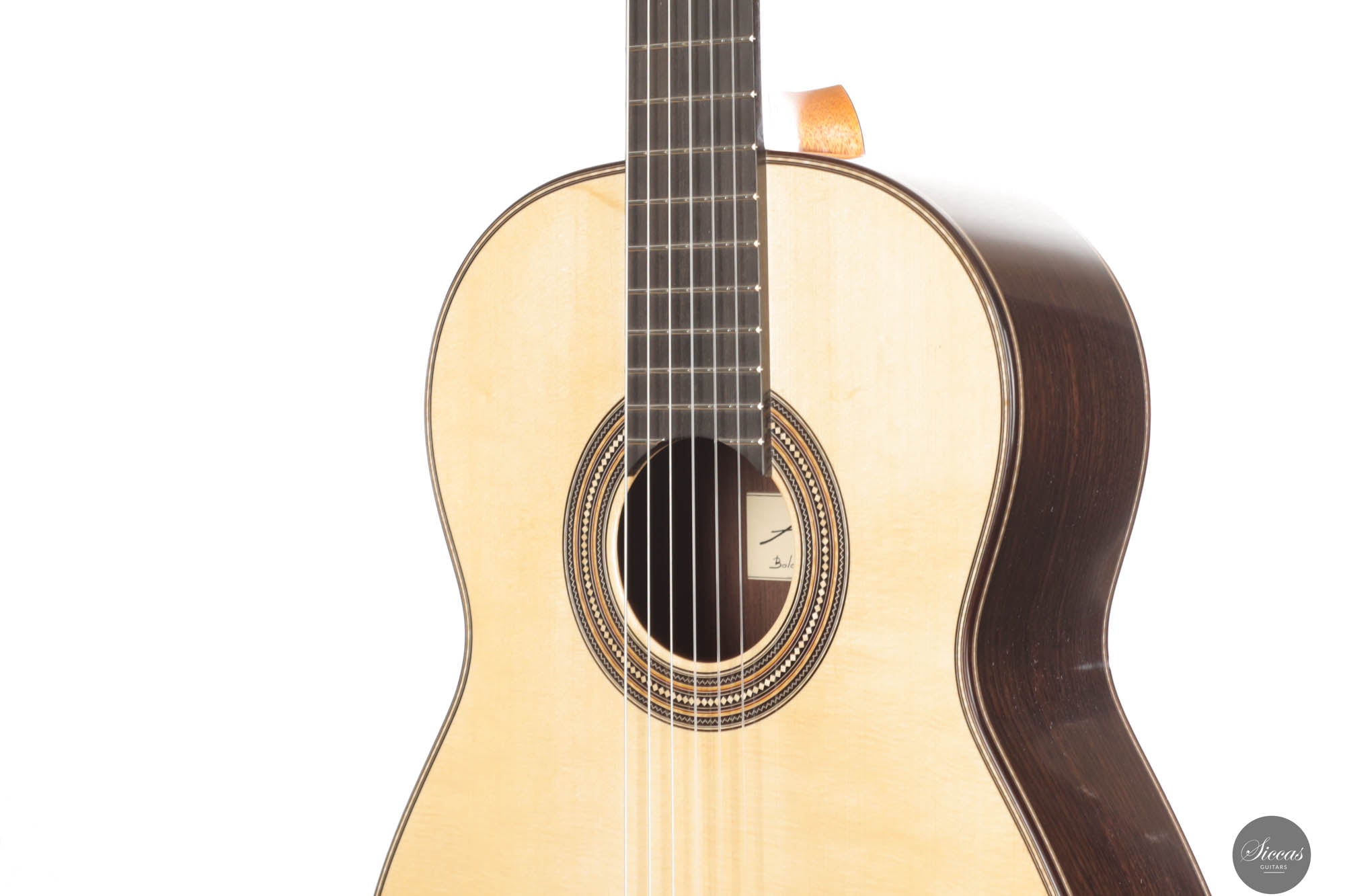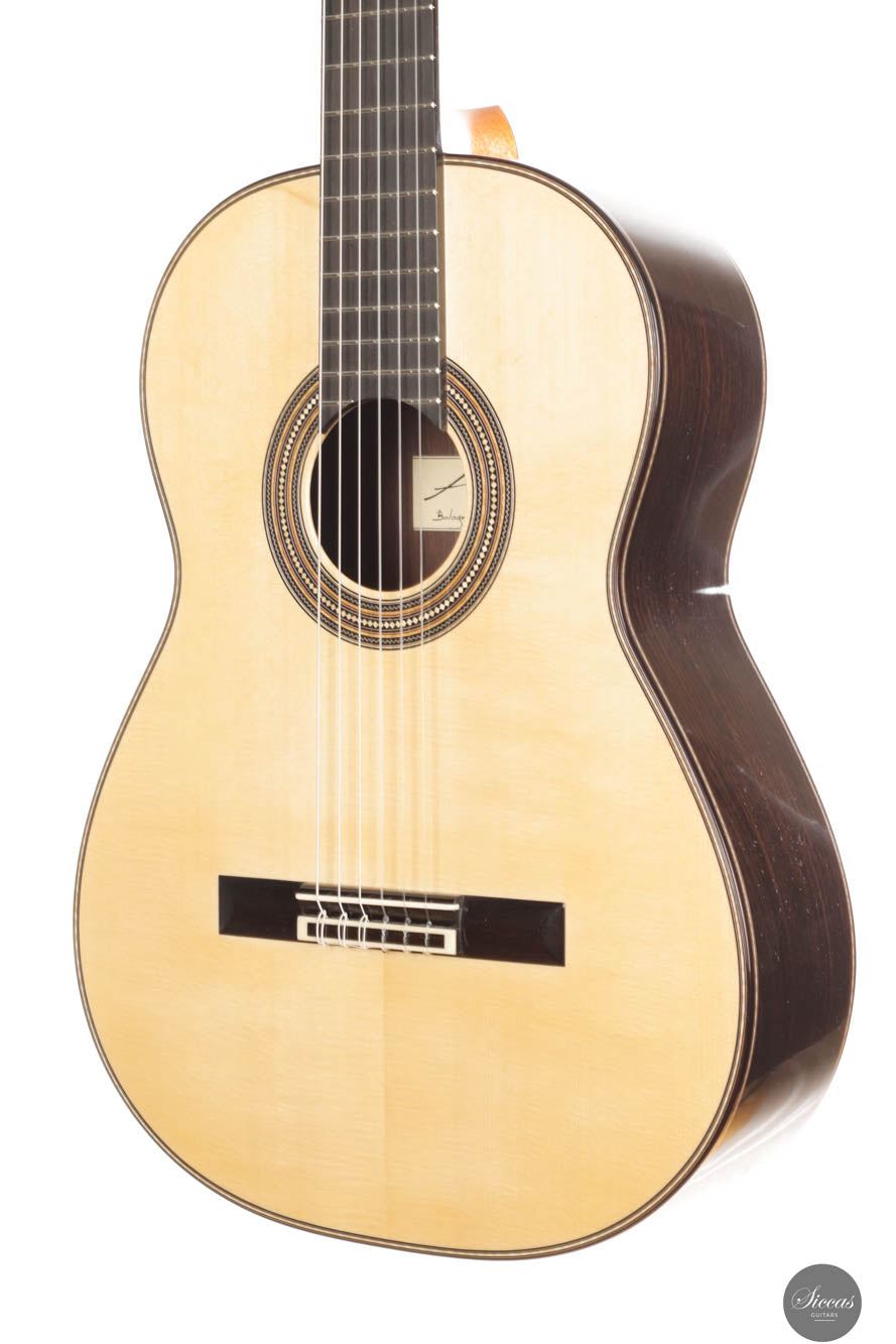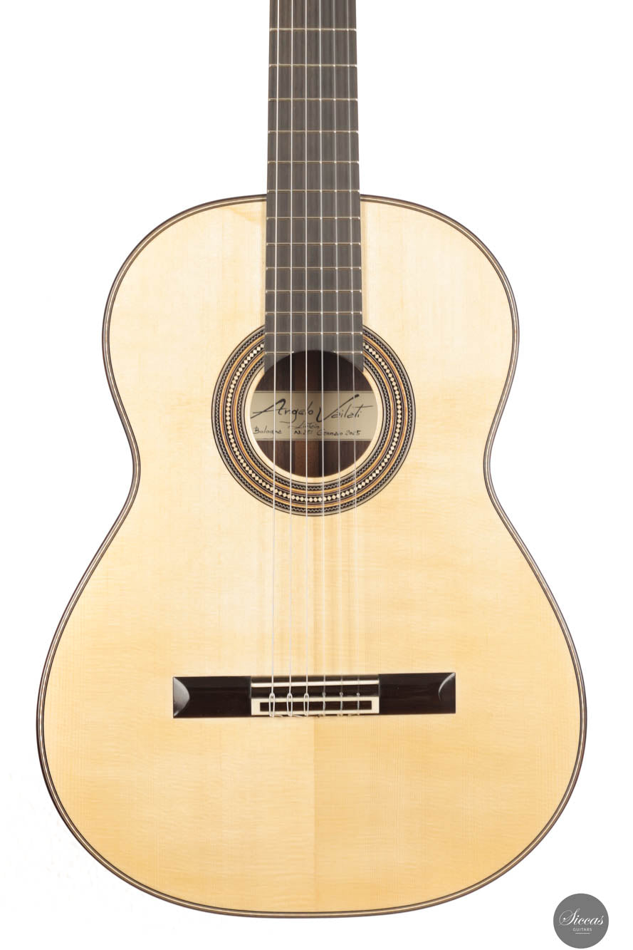 As always, this concert guitar is a stunning testament to Angelo Vailati's ongoing pursuit of perfection in instrument making. Each guitar from his workshop is unique and captivating, and this one is no exception. With a sweet and melancholic character, it offers incredible versatility, capable of being pushed to the player’s limits. The trebles are delicate and melodic, yet powerful enough to roar when needed, giving this instrument a rich personality and profound expressiveness. Not only is it a tonal masterpiece, but it’s also remarkably easy to play, allowing the guitarist to effortlessly manipulate tonal color and explore endless nuances. This guitar is truly another outstanding creation from Angelo, embodying both artistry and precision.