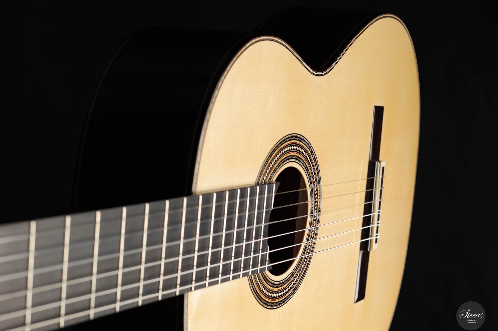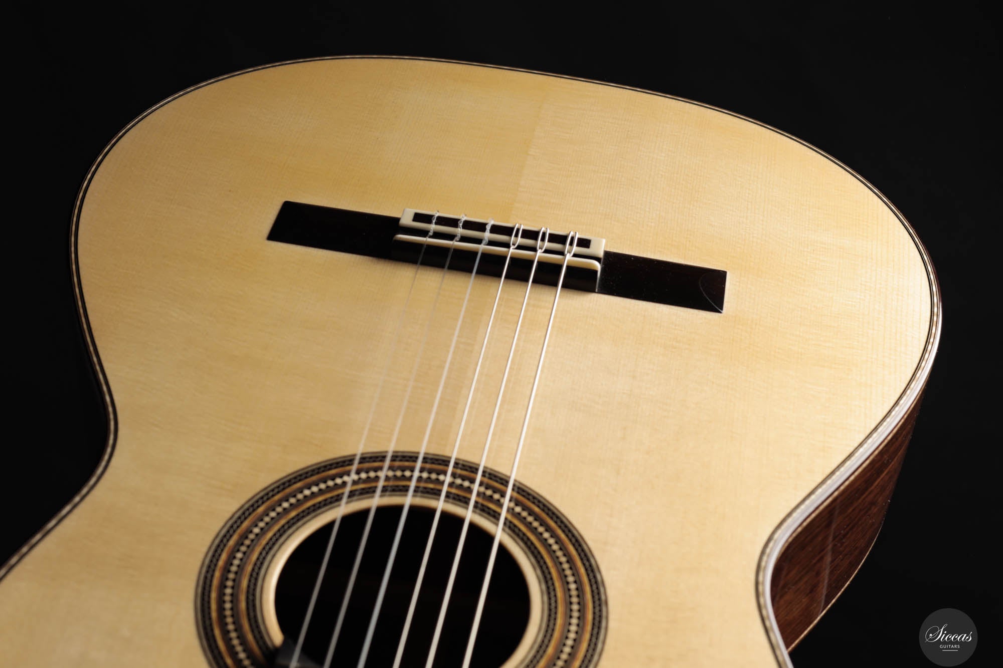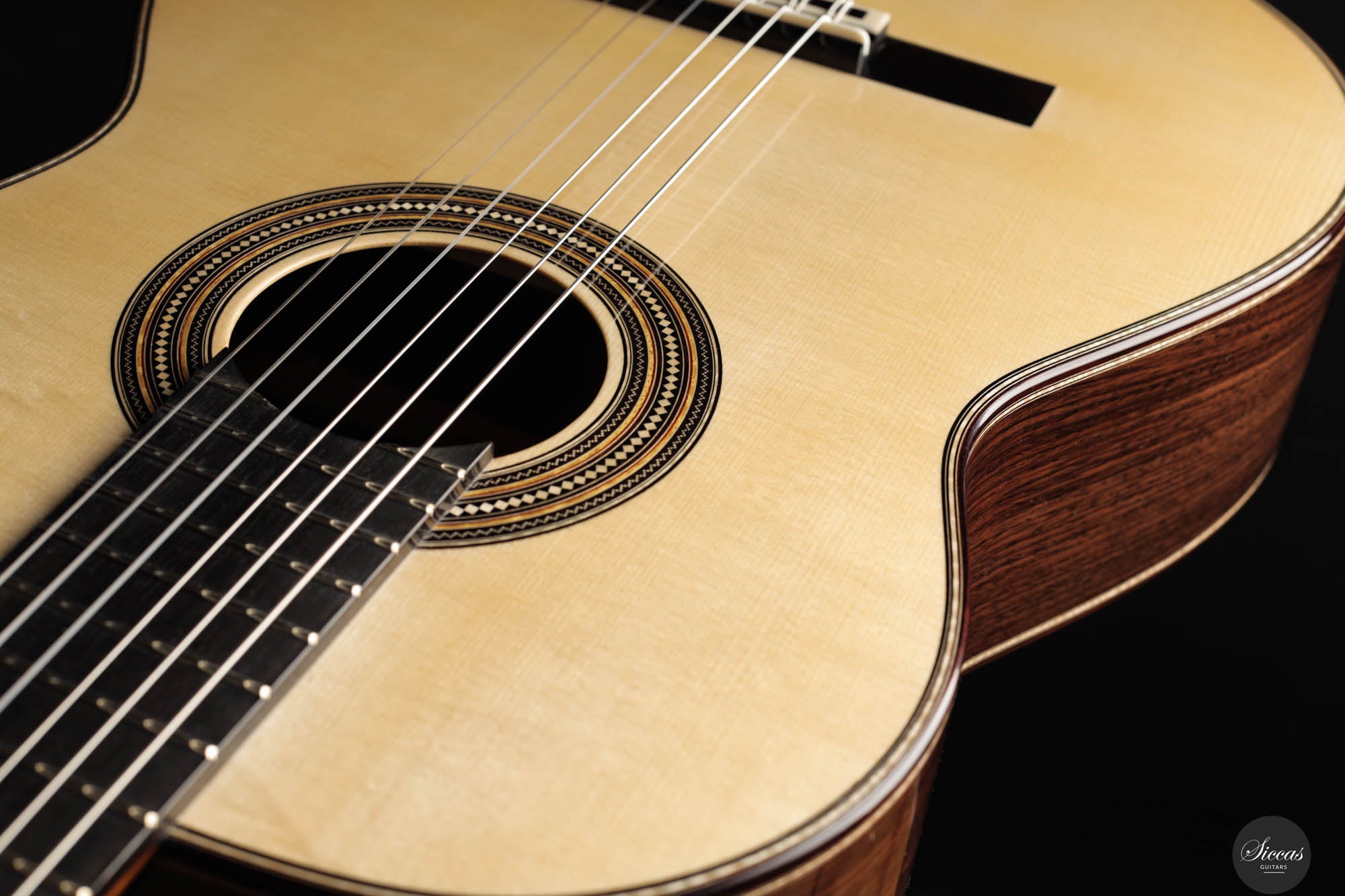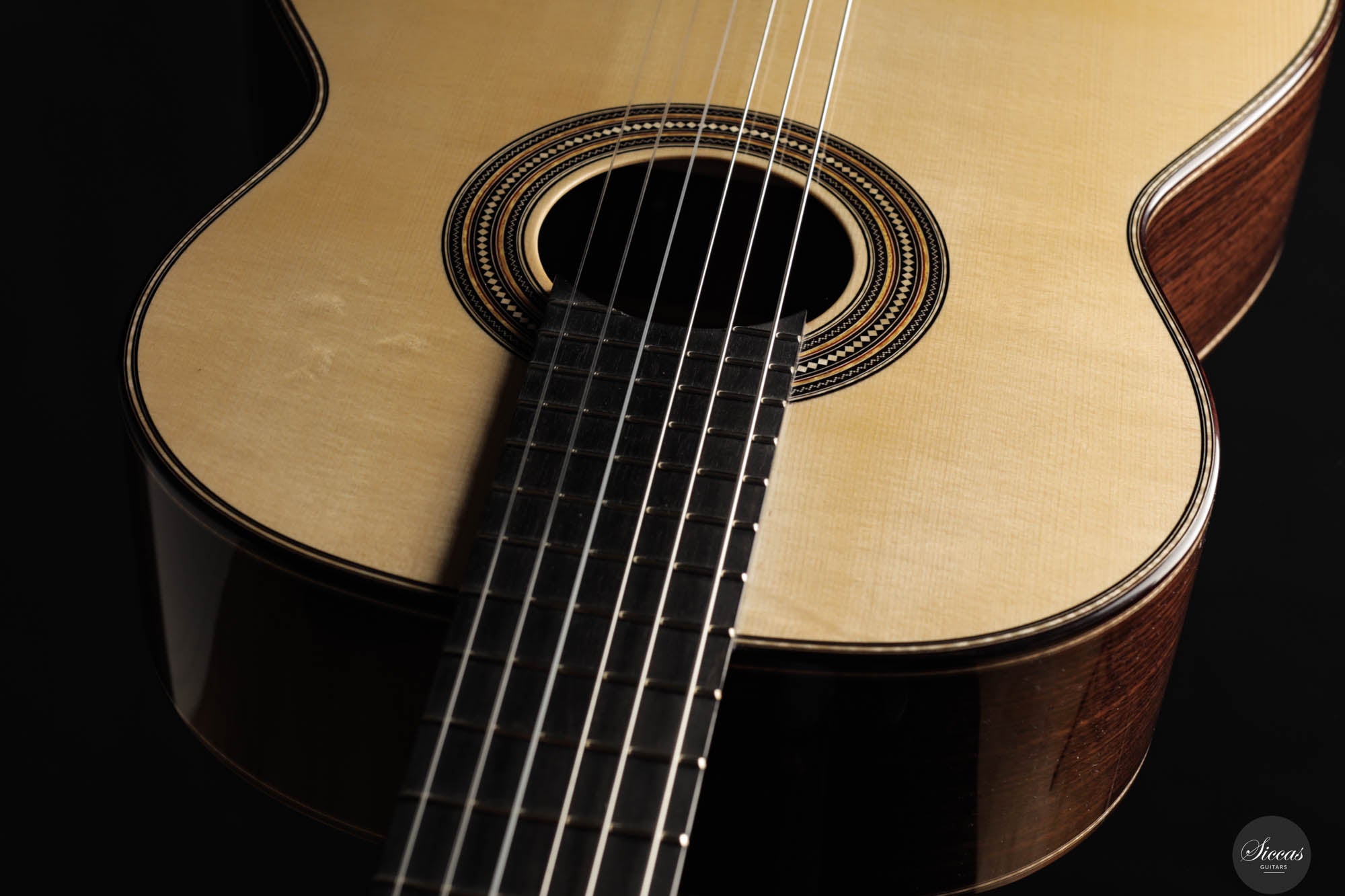 As always, this concert guitar is a stunning testament to Angelo Vailati's ongoing pursuit of perfection in instrument making. Each guitar from his workshop is unique and captivating, and this one is no exception. With a sweet and melancholic character, it offers incredible versatility, capable of being pushed to the player’s limits. The trebles are delicate and melodic, yet powerful enough to roar when needed, giving this instrument a rich personality and profound expressiveness. Not only is it a tonal masterpiece, but it’s also remarkably easy to play, allowing the guitarist to effortlessly manipulate tonal color and explore endless nuances. This guitar is truly another outstanding creation from Angelo, embodying both artistry and precision.