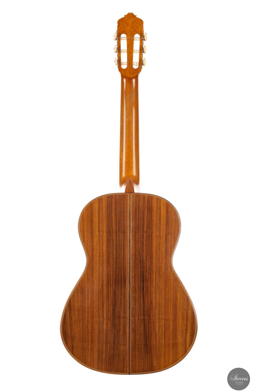 Antonio Marín Montero was born in Granada in 1933. In 1957, he joined master Pérez’s workshop, and two years later, in 1959, his father advised him to visit Eduardo Ferrer for whom he worked until opening his own workshop. A milestone in Antonio Marin Montero’s career was his meeting with the French luthier Robert Bouchet in the 1970s. The two artists became friends and built several guitars together. The contrast between Marin Montero’s Spanish building system and Robert Bouchet’s very particular bracing construction was a great source of inspiration for Antonio Marin Montero, and he continued to build a model with the ”Robert Bouchet” bracing throughout his career. Today, Antonio Marin Montero is one of the most sought-after Spanish guitar makers.