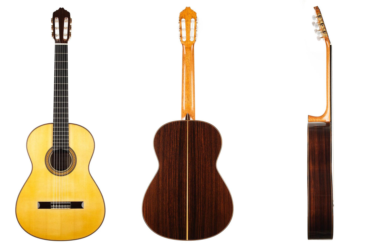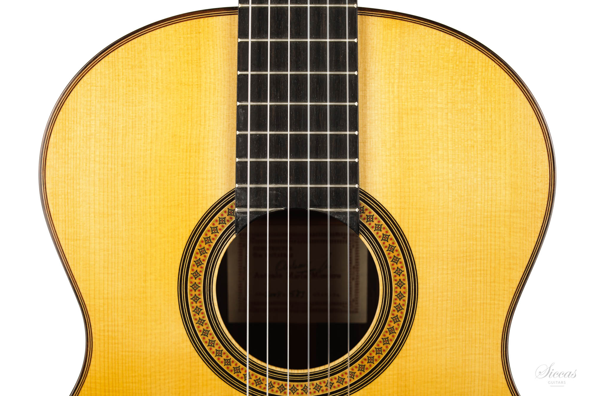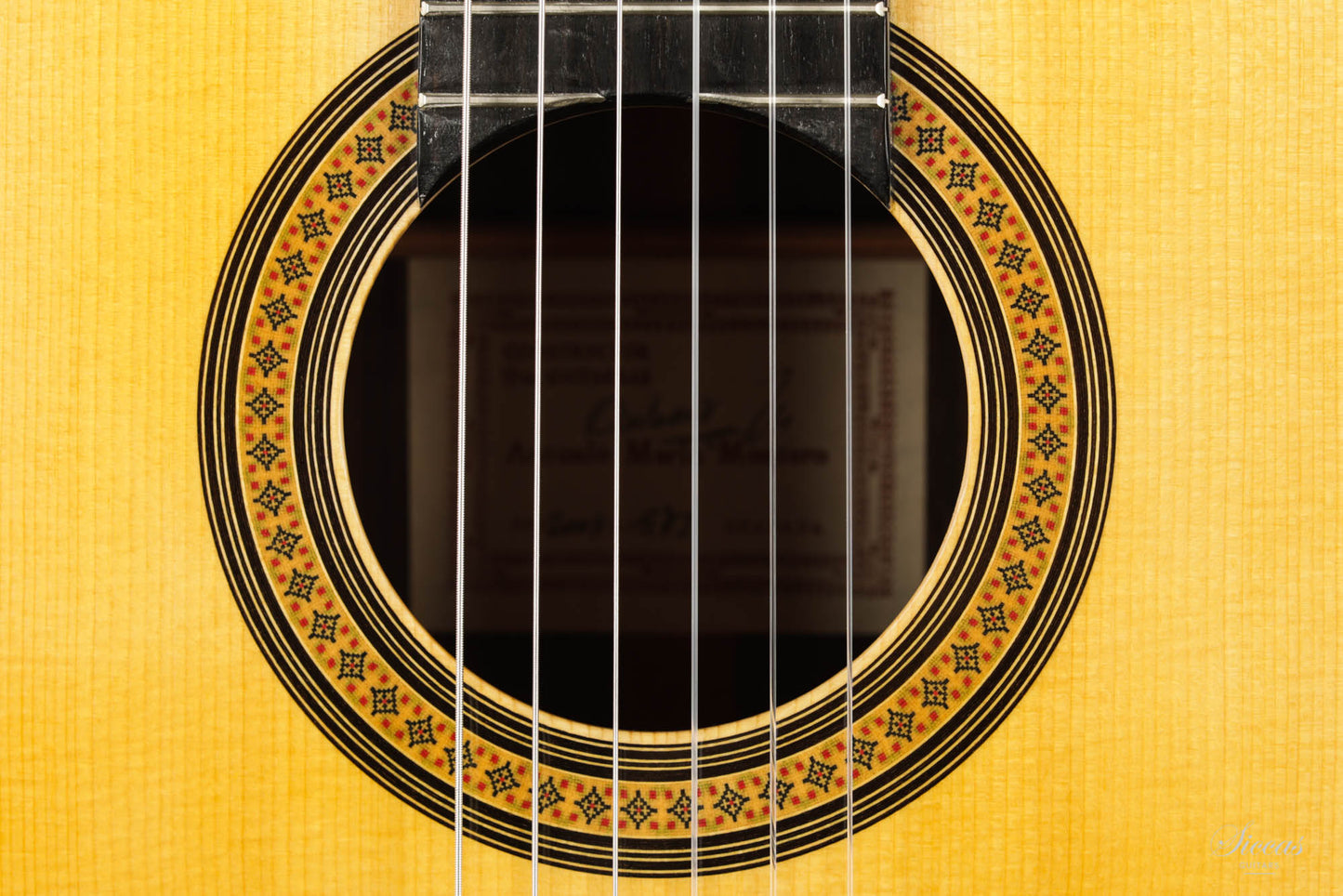 Antonio Marín Montero was born in Granada in 1933. In 1957, he joined master Pérez’s workshop and two years later, in 1959, his father advised him to visit Eduardo Ferrer for whom he worked until opening his own workshop. A milestone in Antonio Marin Montero’s career was his meeting with the French luthier Robert Bouchet in the 1970s. The two artists became friends and built several guitars together. The confrontation between Marin Montero’s Spanish building system and Robert Bouchet’s very particular bracing construction was a great source of inspiration for Antonio Marin Montero, and he continued to build a model with the ” Robert Bouchet ” bracing throughout his career. Today Antonio Marin Montero is one of the most sought-after Spanish guitar makers.