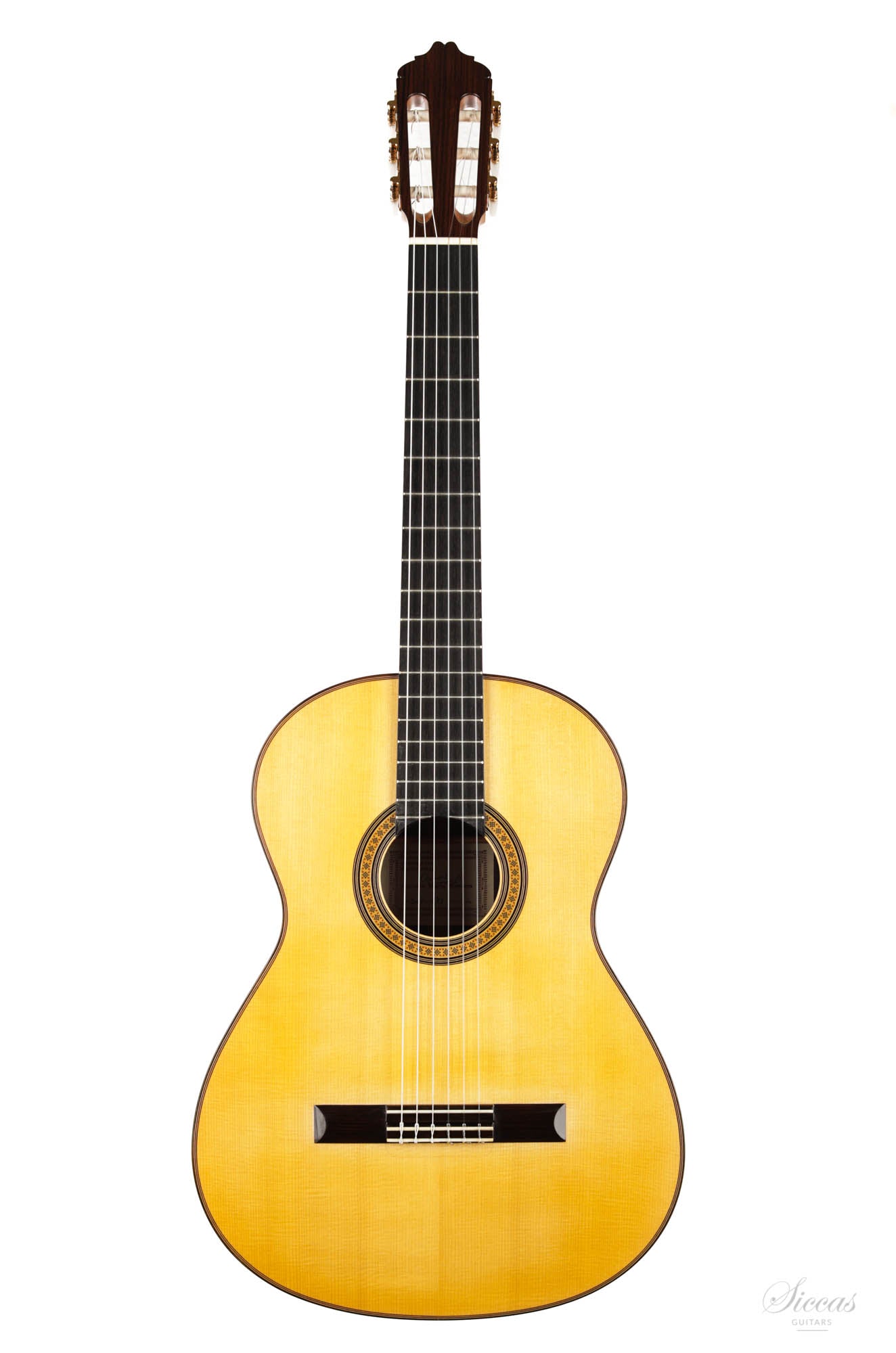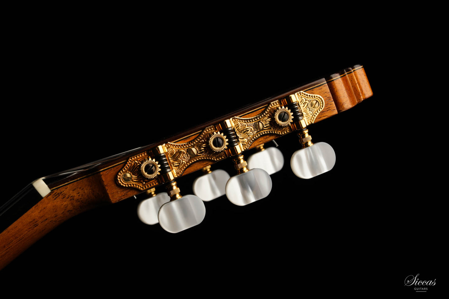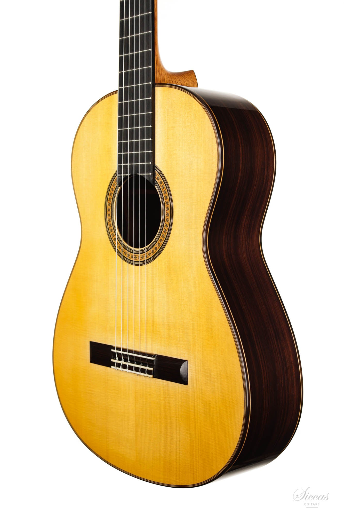 Antonio Marín Montero was born in Granada in 1933. In 1957, he joined master Pérez’s workshop and two years later, in 1959, his father advised him to visit Eduardo Ferrer for whom he worked until opening his own workshop. A milestone in Antonio Marin Montero’s career was his meeting with the French luthier Robert Bouchet in the 1970s. The two artists became friends and built several guitars together. The confrontation between Marin Montero’s Spanish building system and Robert Bouchet’s very particular bracing construction was a great source of inspiration for Antonio Marin Montero, and he continued to build a model with the ” Robert Bouchet ” bracing throughout his career. Today Antonio Marin Montero is one of the most sought-after Spanish guitar makers.