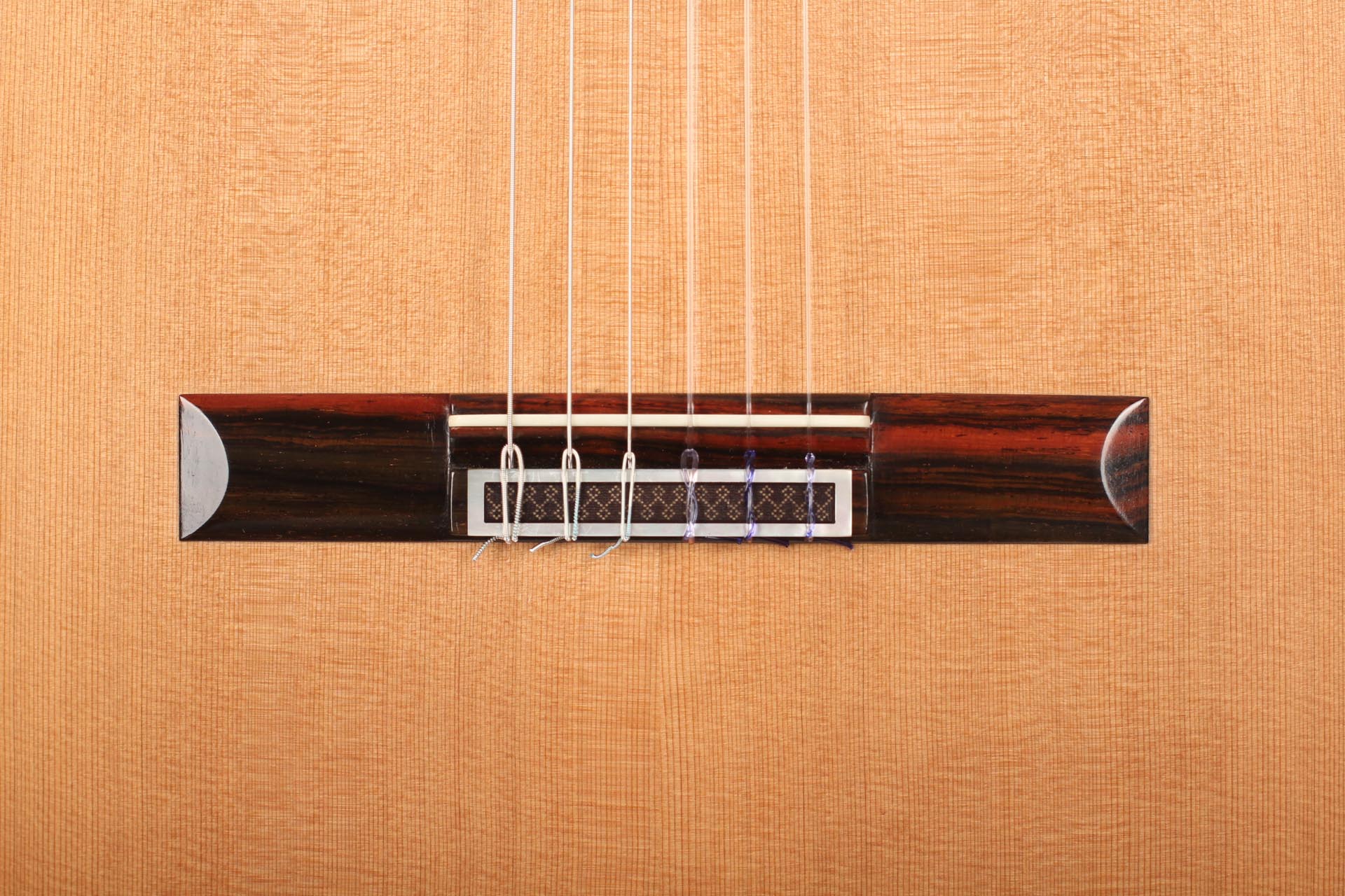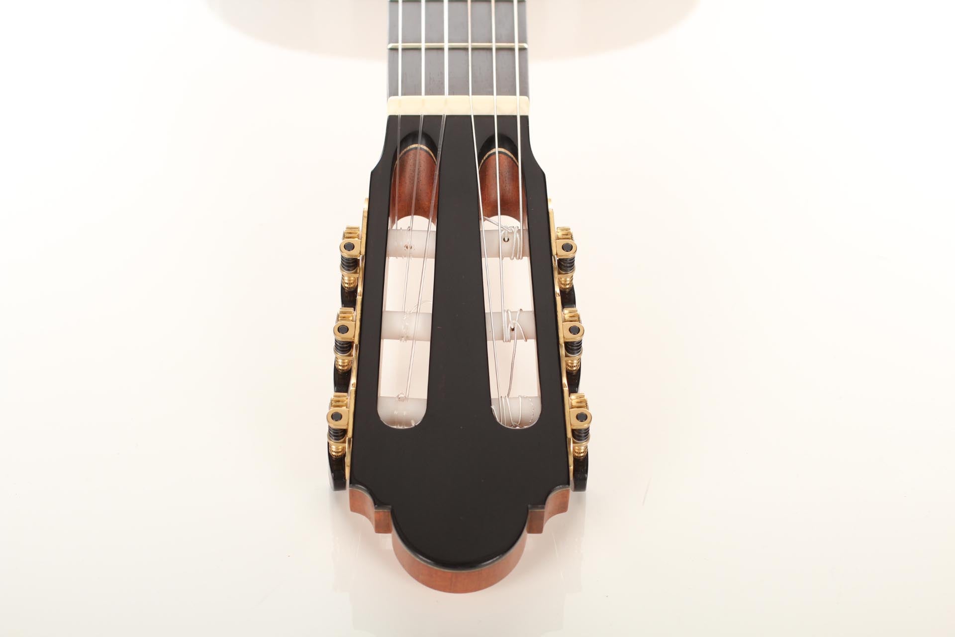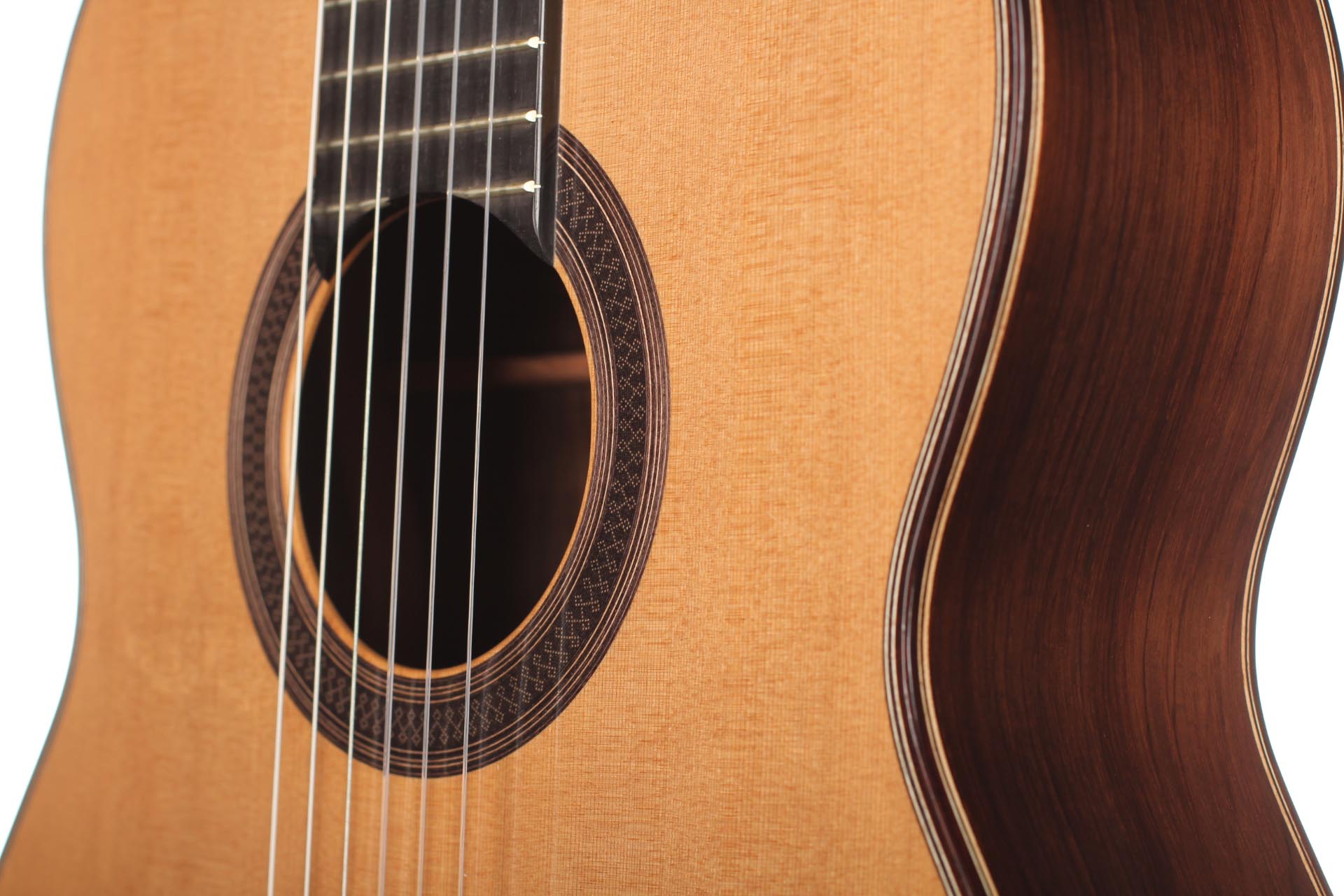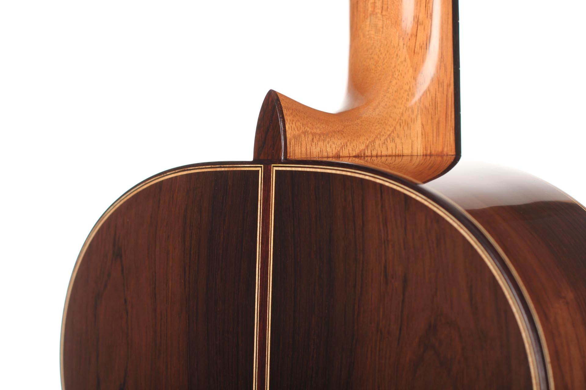 This cedar-top guitar was built in 2013 an is in amazing condition. It was as carefully handled as it deserves to be, and is now wearing only a very few superficial playing marks. The beauty of the fine cedar top and the highly figured Amazonas rosewood is stunning. This guitar has a straight generous sound with immediate response and great sustain. The thinly worked cedar top is giving to the tone a great depth, fabulous colours and a warm voice. One of the great qualities of Montero’s guitar is how the sympathetic basses resonances reinforce and complete the trebles, and vice versa. A superb concert guitar for Montero’s fans and Spanish tone lovers. The tuning machines are made by Rubner. A hardshell case is included.