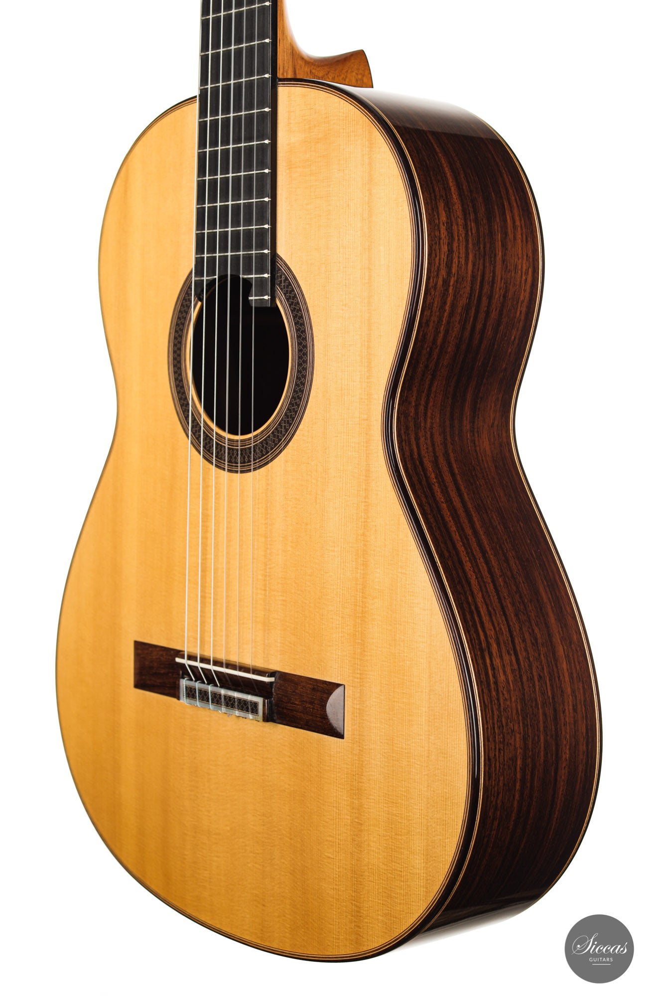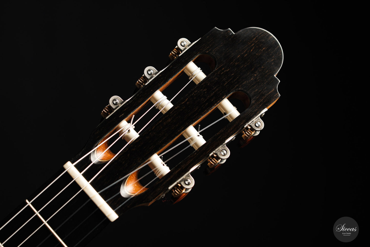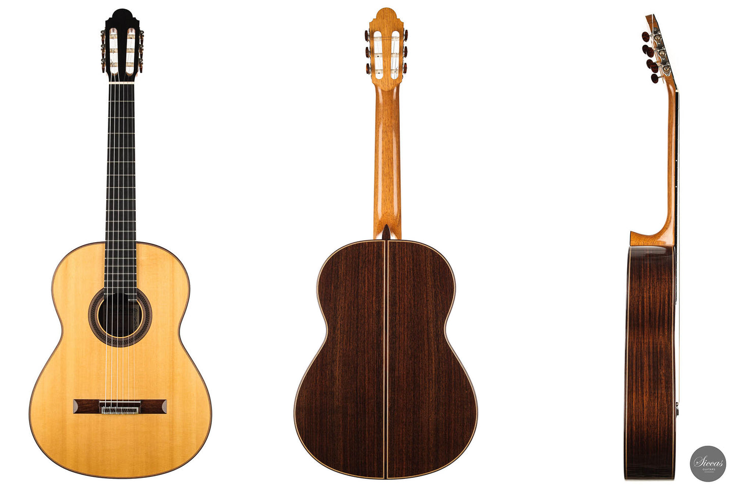 Antonio Marín Montero was born in Granada in 1933. In 1957, he joined master Pérez’s workshop and two years later, in 1959, his father advised him to visit Eduardo Ferrer for whom he worked until opening his own workshop. A milestone in Antonio Marin Montero’s career was his meeting with the French luthier Robert Bouchet in the 1970s. The two artists became friends and built several guitars together. The confrontation between Marin Montero’s Spanish building system and Robert Bouchet’s very particular bracing construction was a great source of inspiration for Antonio Marin Montero, and he continued to build a model with the ” Robert Bouchet ” bracing throughout his career. Today Antonio Marin Montero is one of the most sought-after Spanish guitar makers.