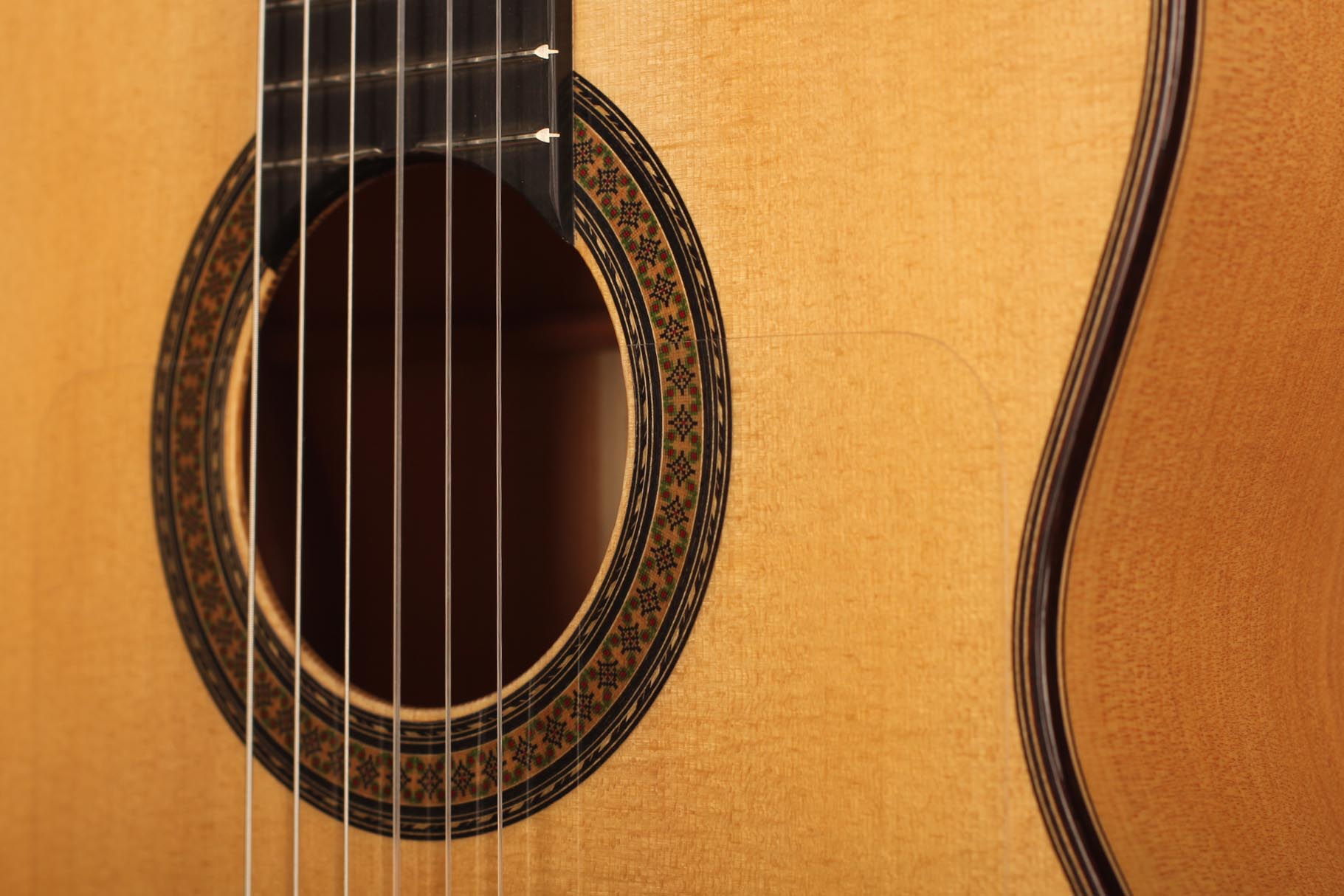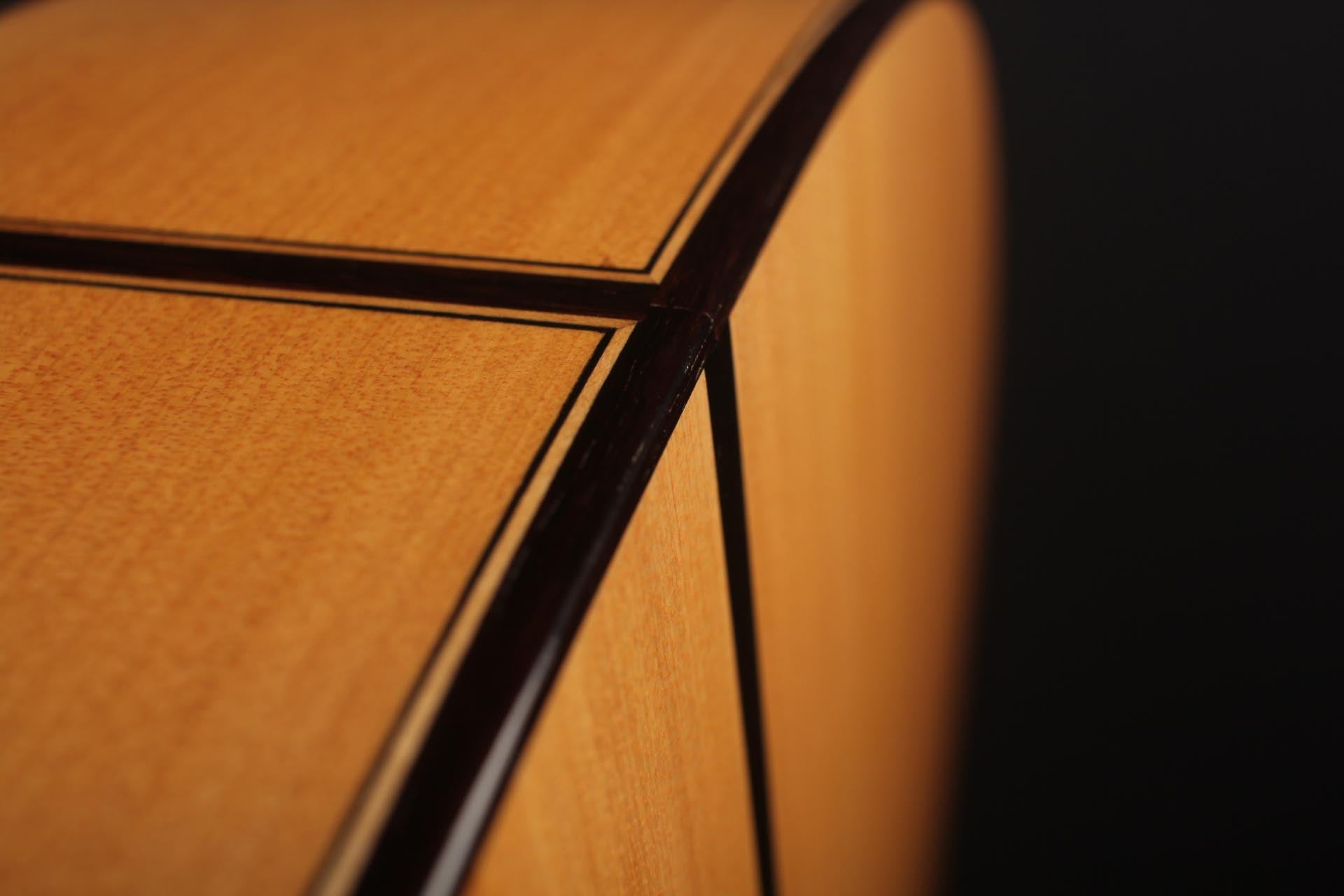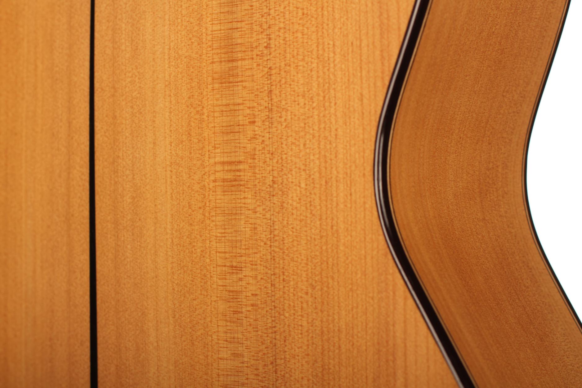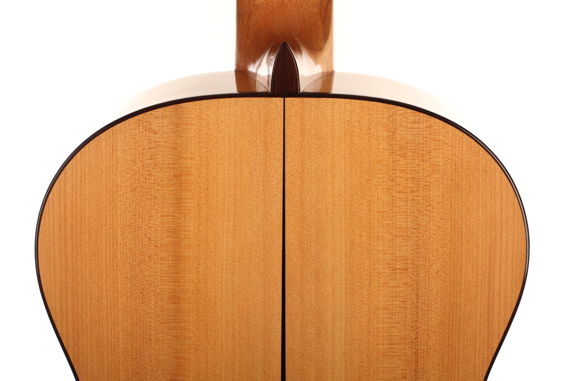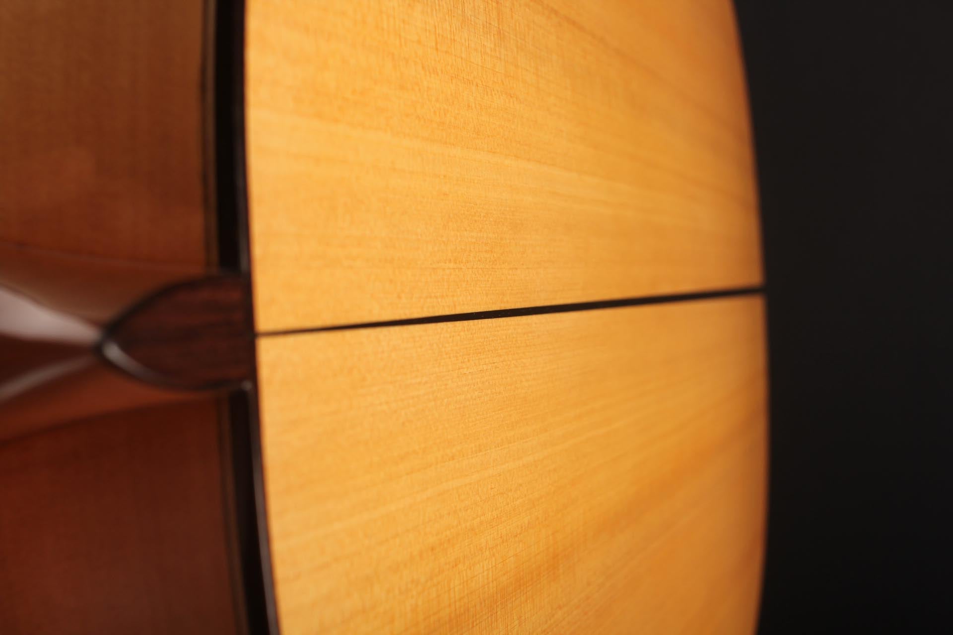 This flamenco model was built at the very beginning of 2018 and is numbered 868. It has a very light and resonant spruce top. Back and sides are made from very thinly worked cypress, in the Spanish tradition. This guitar is light, responsive and has a characteristic old cypress tone. It is a very fine flamenco guitar and a beautifully singing instrument. A hard-shell case is included.