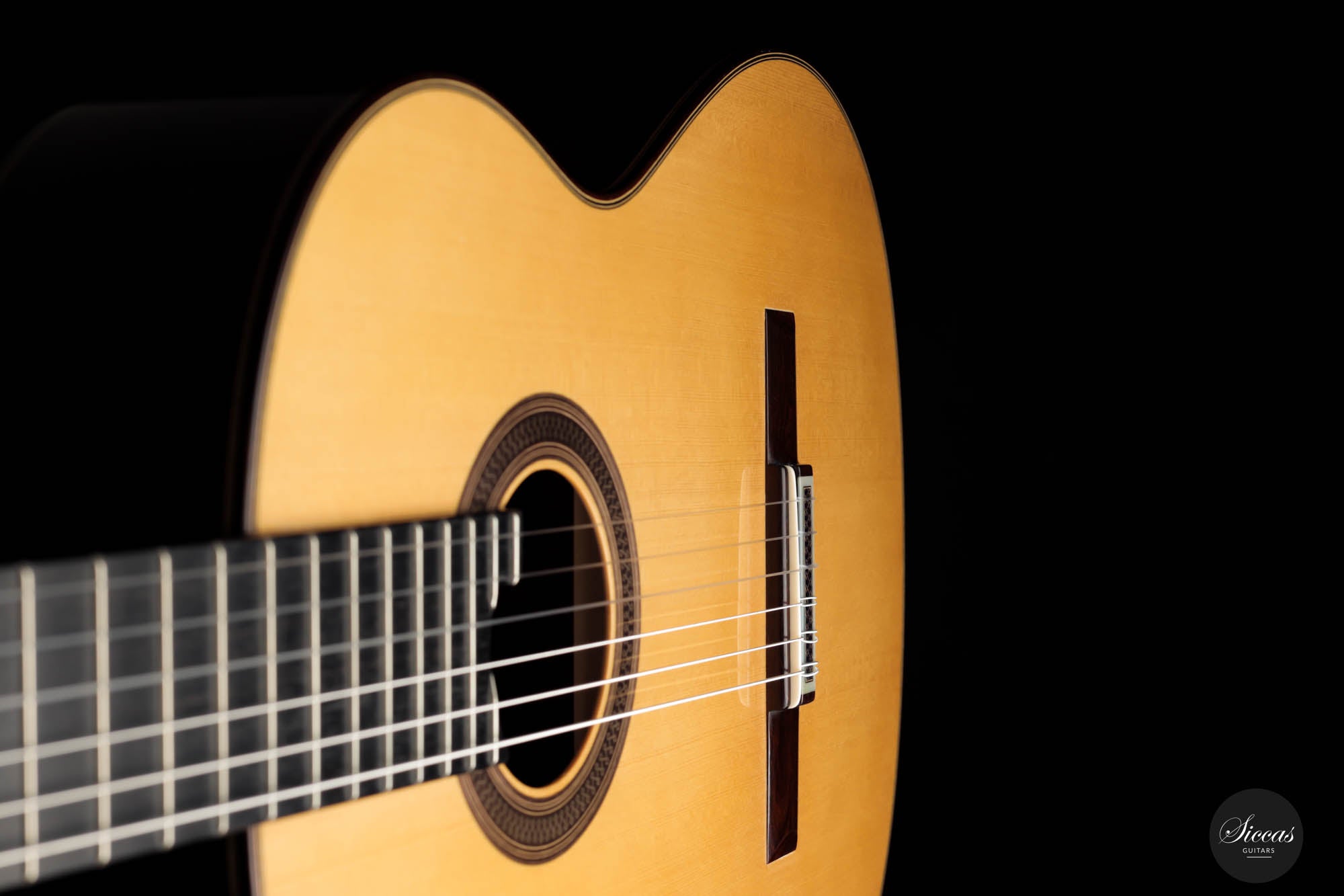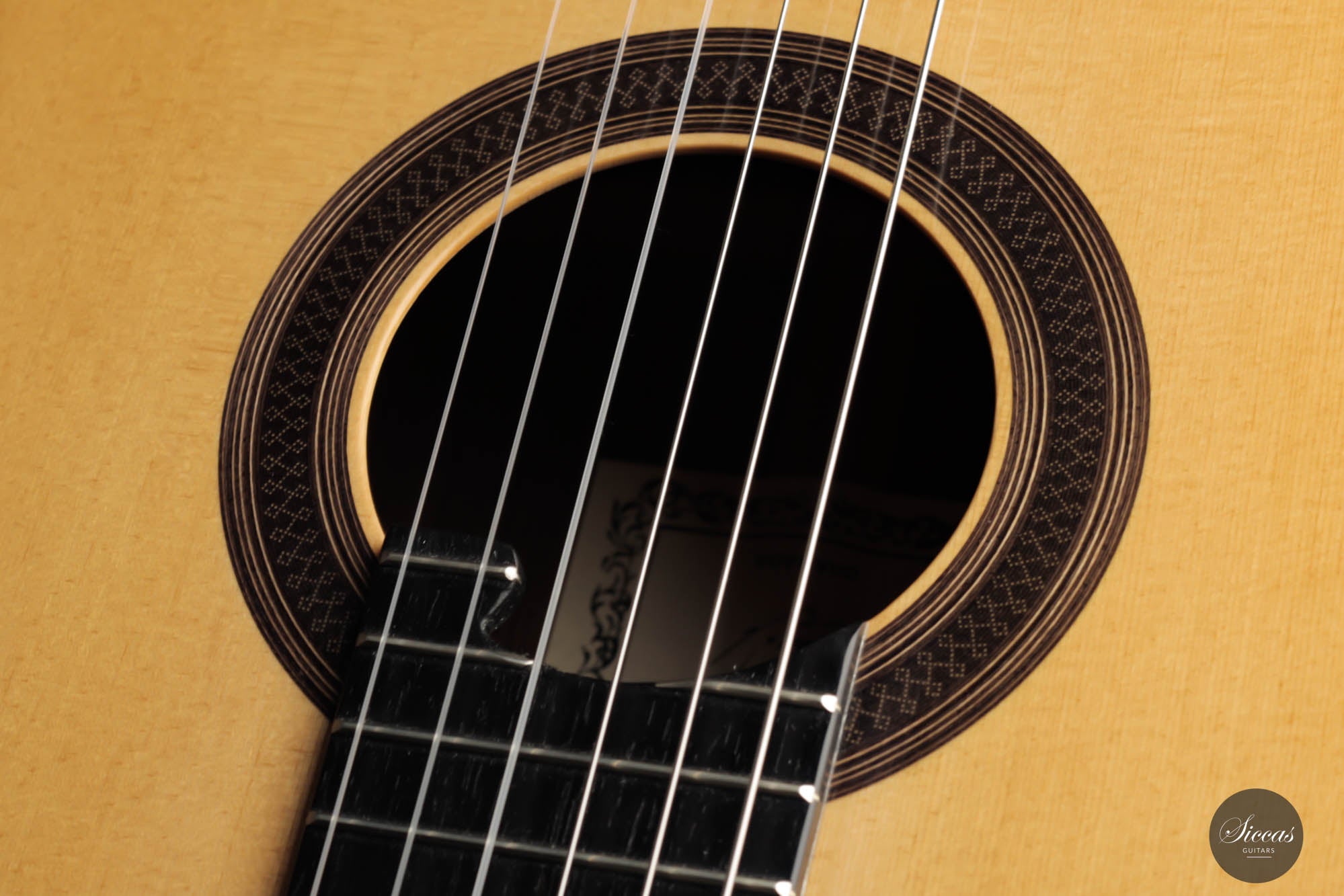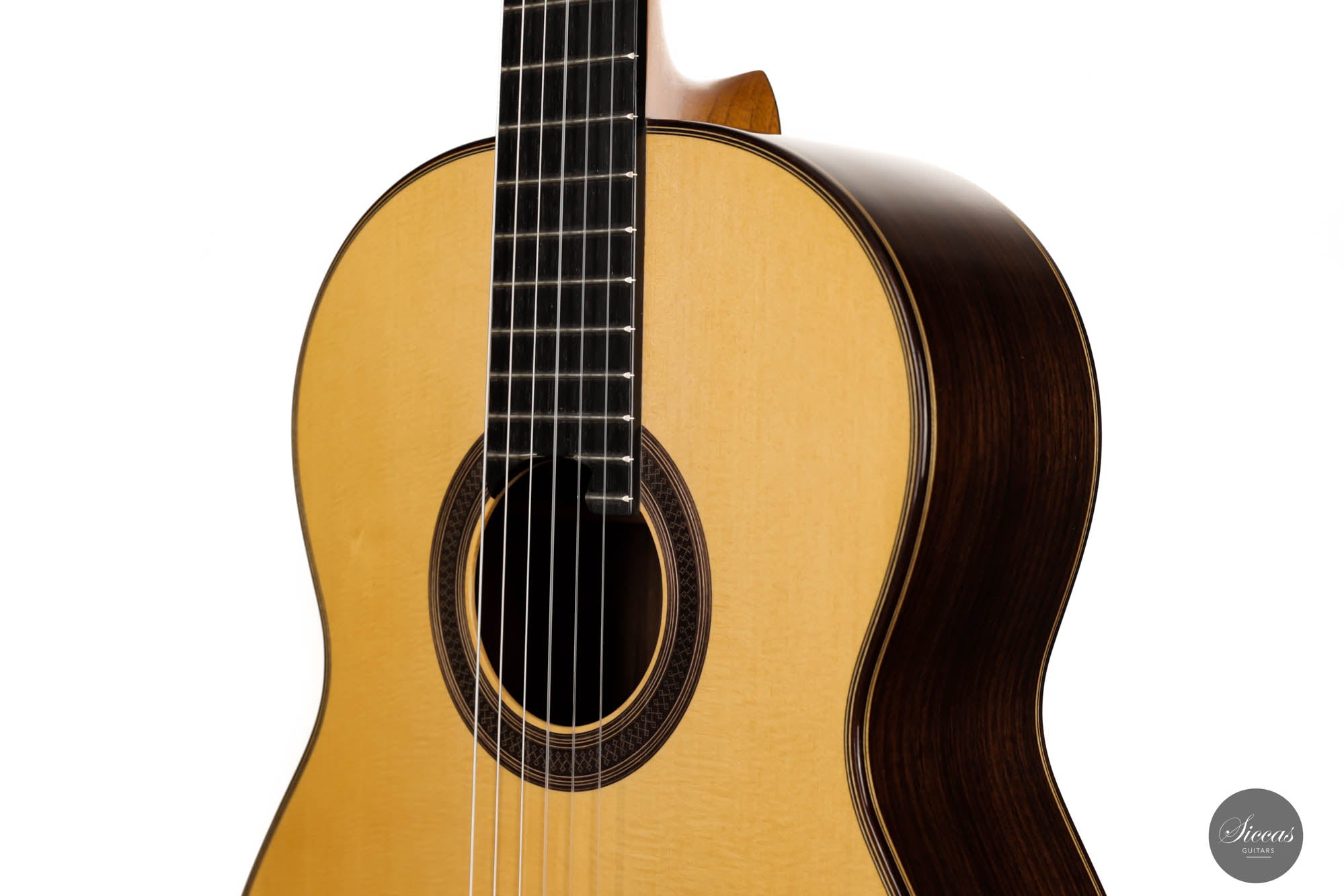 Antonio Marín Montero was born in Granada in 1933. In 1957, he joined master Pérez’s workshop, and two years later, in 1959, his father advised him to visit Eduardo Ferrer, for whom he worked until opening his workshop. A milestone in Antonio Marin Montero’s career was meeting with the French luthier Robert Bouchet in the 1970s. The two artists became friends and built several guitars together. The confrontation between Marin Montero’s Spanish building system and Robert Bouchet’s particular bracing construction greatly inspired Antonio Marin Montero. Throughout his career, he continued to build a model with the” Robert Bouchet ” bracing. Today Antonio Marin Montero is one of the most sought-after Spanish guitar makers.