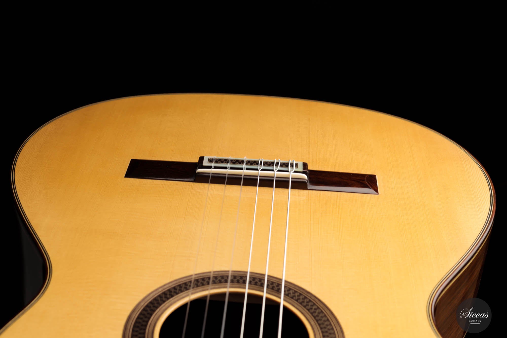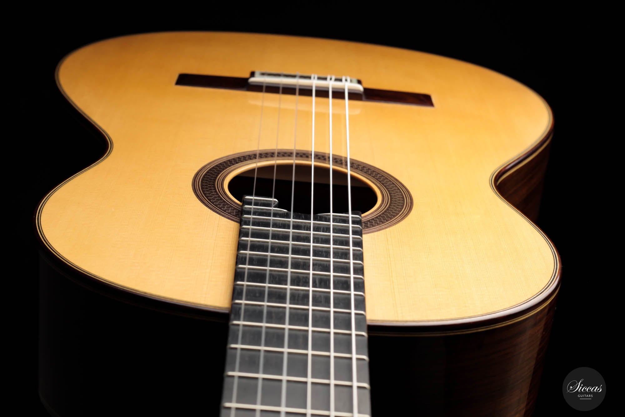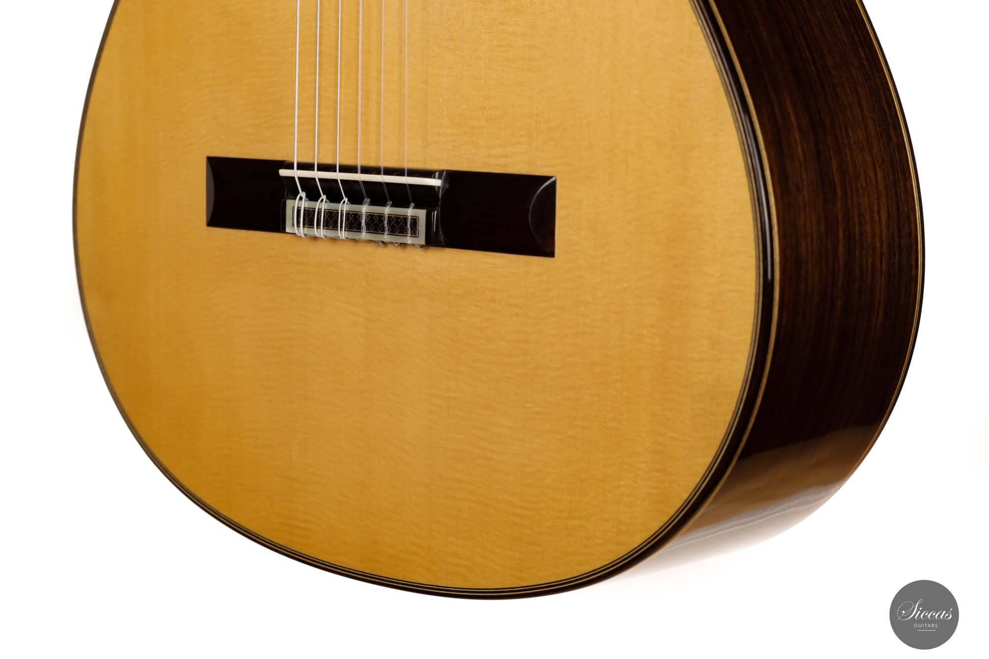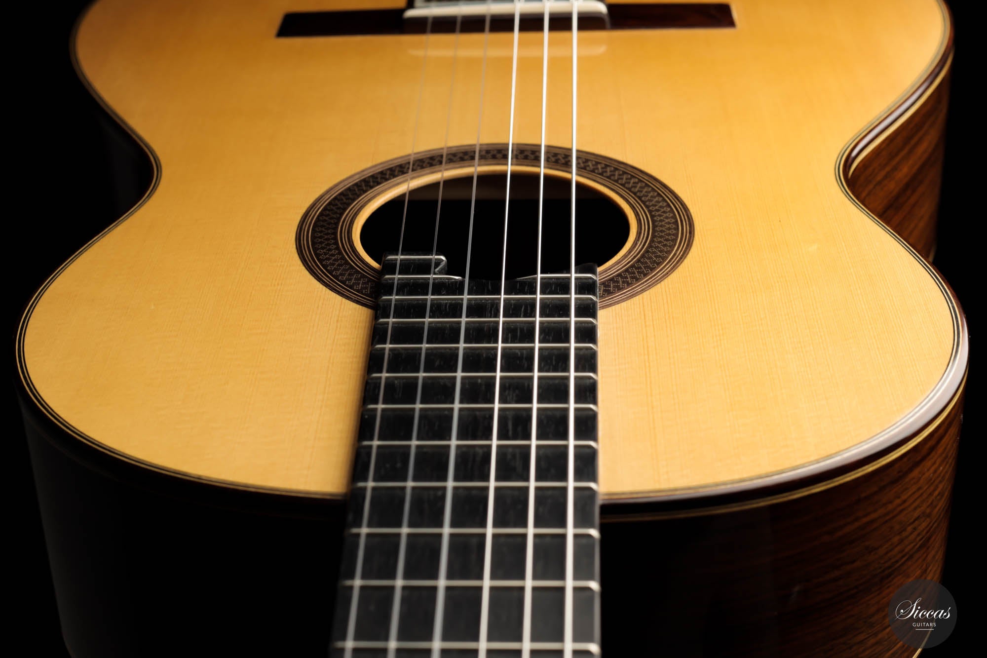 Antonio Marín Montero was born in Granada in 1933. In 1957, he joined master Pérez’s workshop, and two years later, in 1959, his father advised him to visit Eduardo Ferrer, for whom he worked until opening his workshop. A milestone in Antonio Marin Montero’s career was meeting with the French luthier Robert Bouchet in the 1970s. The two artists became friends and built several guitars together. The confrontation between Marin Montero’s Spanish building system and Robert Bouchet’s particular bracing construction greatly inspired Antonio Marin Montero. Throughout his career, he continued to build a model with the” Robert Bouchet ” bracing. Today Antonio Marin Montero is one of the most sought-after Spanish guitar makers.