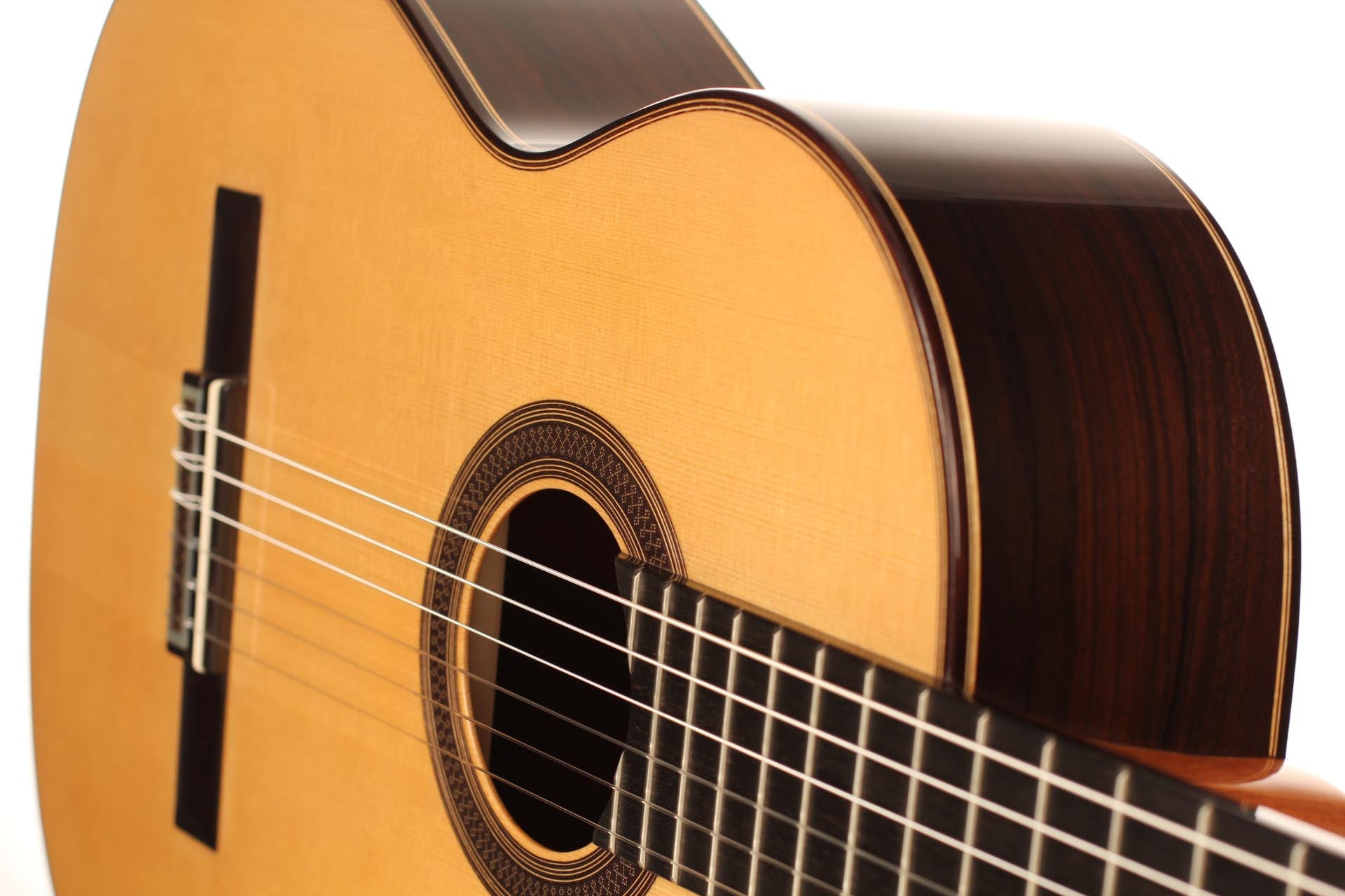 The classical guitar, with its soft nylon strings and characteristic timbre, has become a symbol of chamber music, Spanish tradition, and concert repertoire. Its modern form was shaped by Antonio de Torres in the 19th century, setting the standard for the body, fan bracing, and the 65-centimeter scale length that are still used today. Instruments in this category open up a rich palette from the refined Romantic miniatures of Tárrega to the majestic concertos of Rodrigo. Here you will find guitars that preserve historical continuity and at the same time inspire new interpretations.