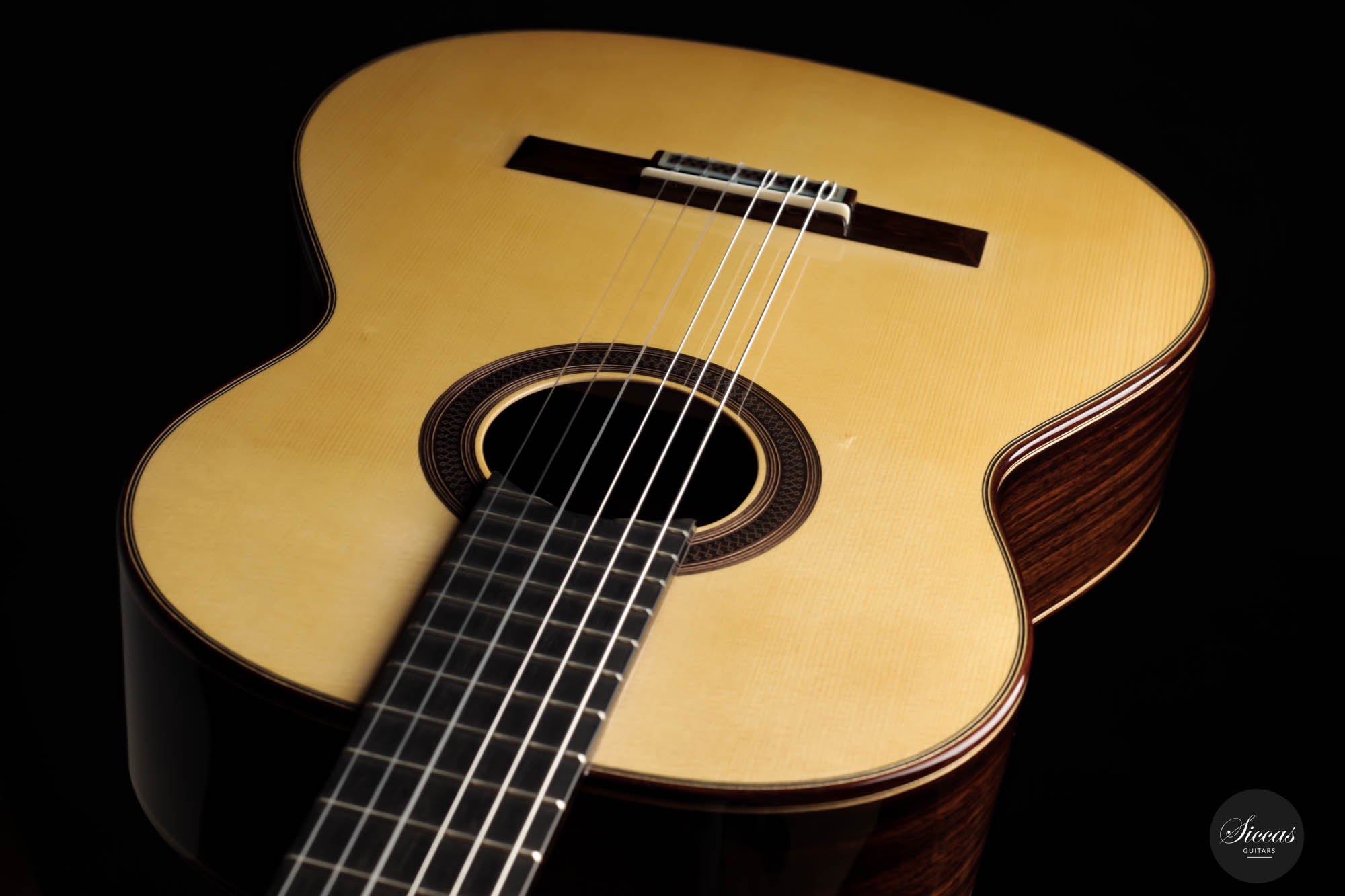 This traditionally crafted instrument is the quintessence of the Granada guitar-making tradition. The fine-grain spruce soundboard and exquisite Indian rosewood back and sides add a remarkable elegance to the overall appearance of this classic beauty. Soundwise, this guitar is an absolute Spanish powerhouse. The trebles of this Montero guitar have an exceptional singing quality, with long and even sustain over the entire fretboard and undoubtedly the extraordinary ability to provide a wide range of tonal colors. Furthermore, the direct and crisp basses give a solid foundation for the overall sound of this guitar. Not only that, this particular instrument has a significant volume that will fulfill the need of any concert situation and, of course, fantastic playability. This piece of art is truly a first-class Spanish guitar and an ideal concert instrument.