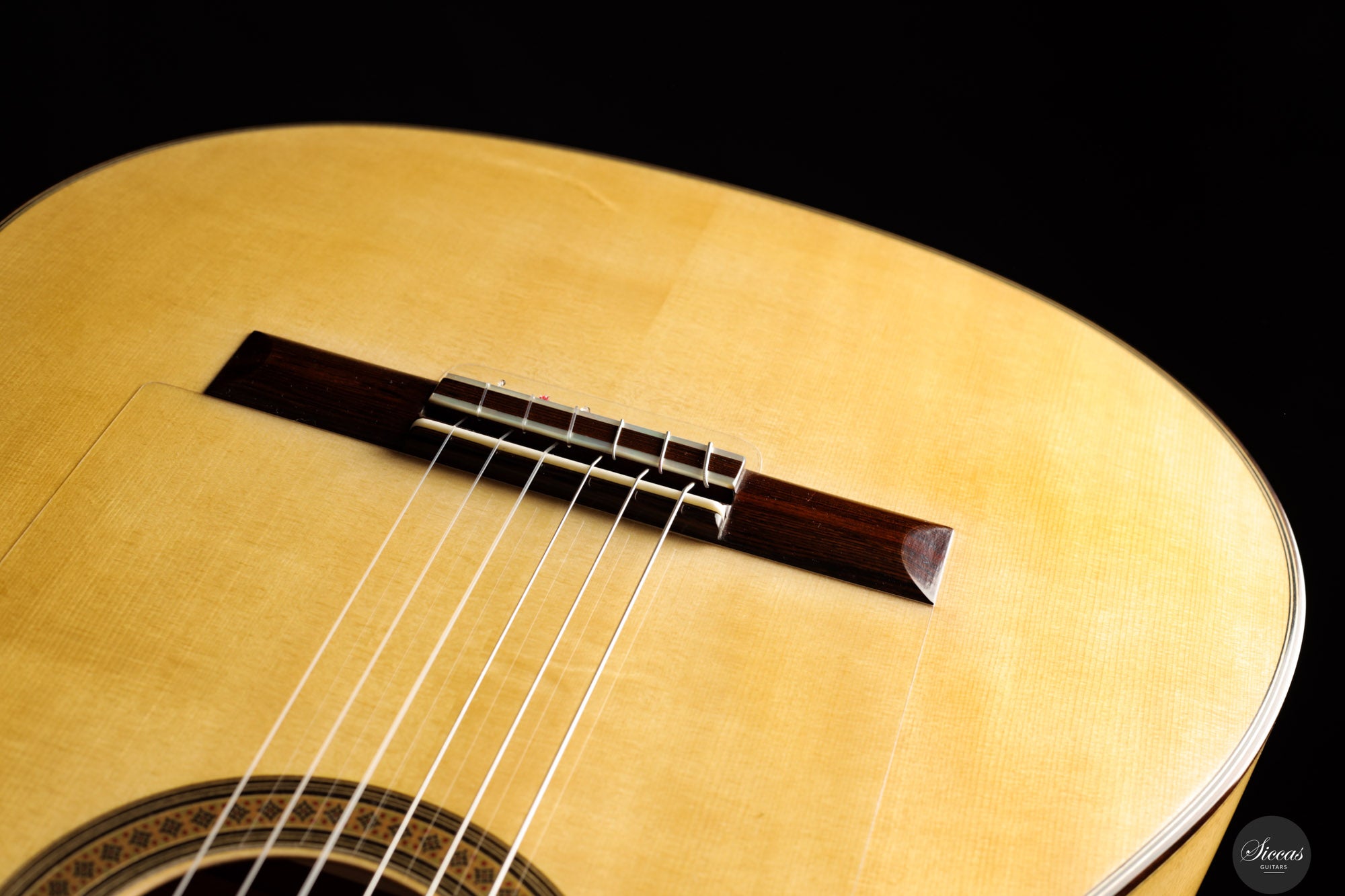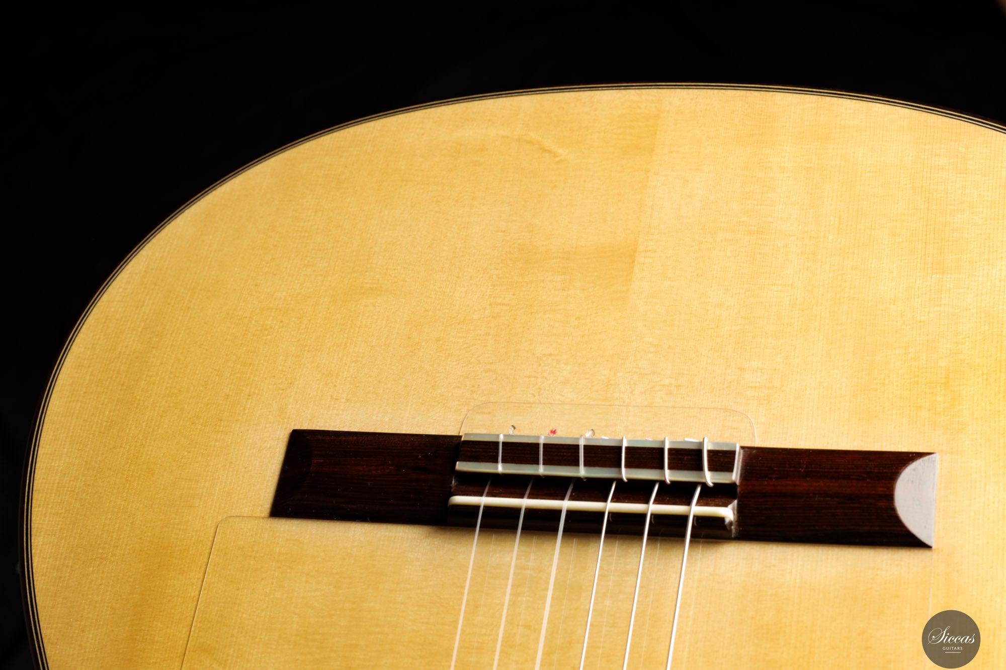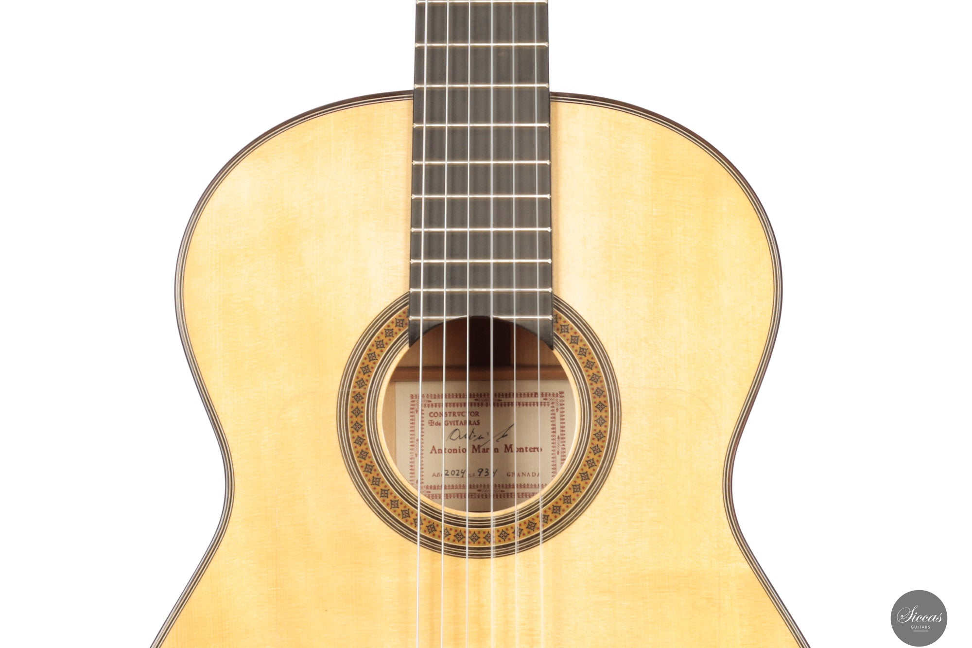 Antonio Marín Montero (b. 1933, Granada) is regarded as one of the most influential Spanish guitar makers of the 20th and 21st centuries. Deeply connected to the Granada school, he is also remembered for his collaboration with the French luthier Robert Bouchet, whose ideas he studied and refined. Over the course of his career, Marín built instruments that seamlessly bridged Spanish and French traditions, known for their clarity, projection, and refinement. His work has set standards for both classical and flamenco guitars, inspiring generations of luthiers. As one of the last living masters of Granada’s golden era of guitar making, Antonio Marín Montero’s instruments are now celebrated as modern benchmarks of craftsmanship and artistry.About the guitar: