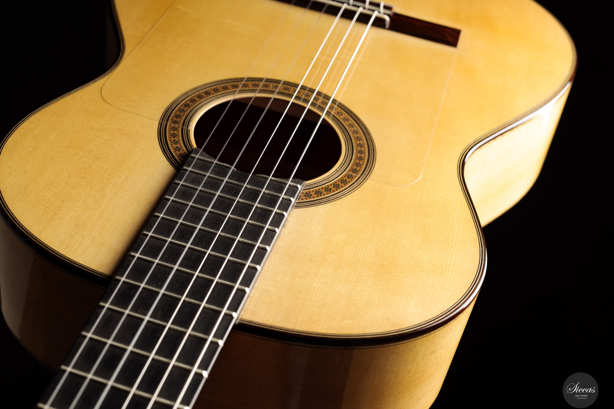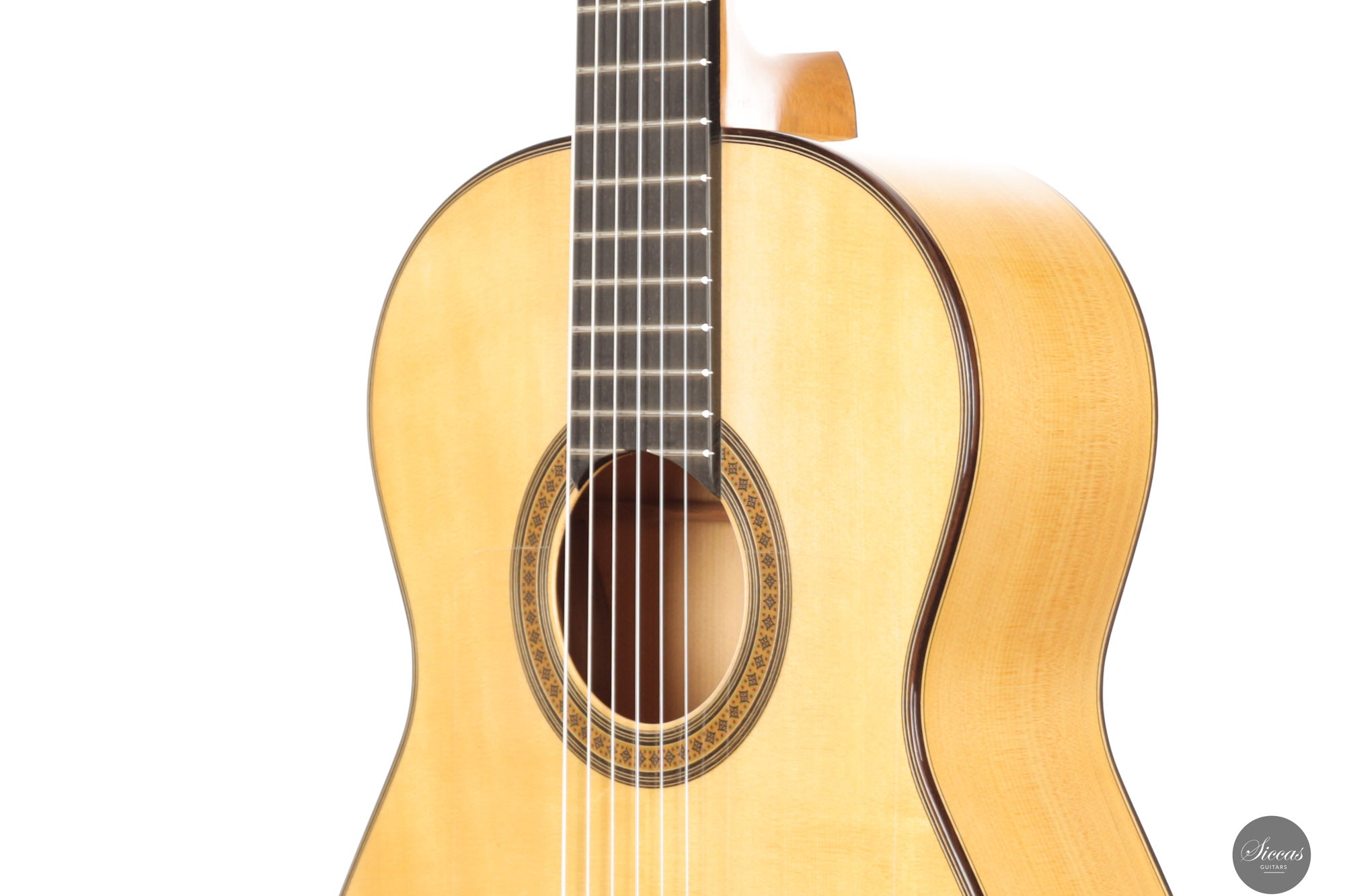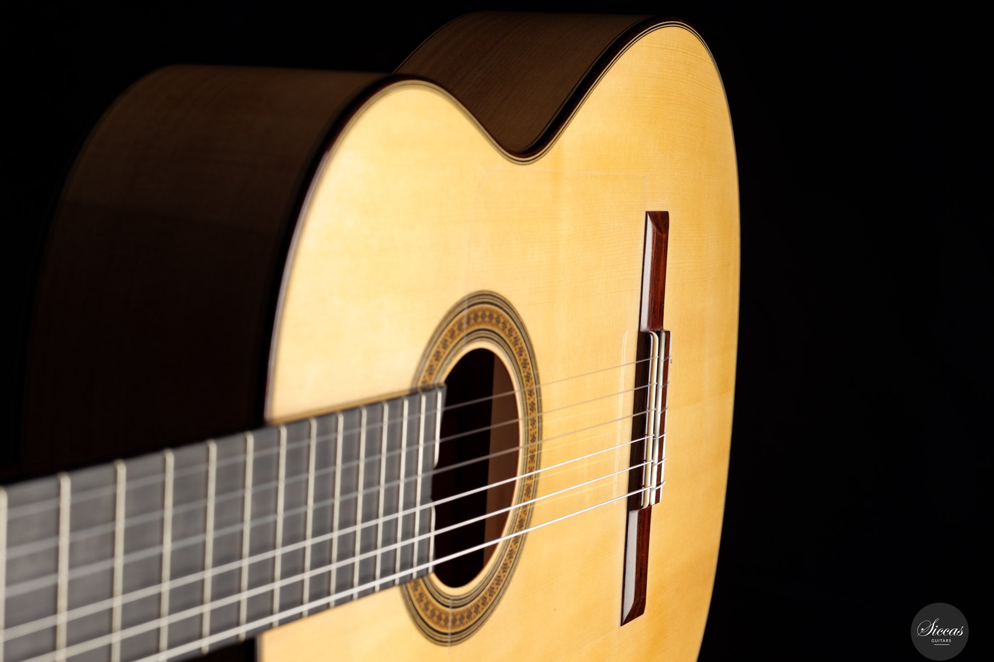 Antonio Marín Montero (b. 1933, Granada) is regarded as one of the most influential Spanish guitar makers of the 20th and 21st centuries. Deeply connected to the Granada school, he is also remembered for his collaboration with the French luthier Robert Bouchet, whose ideas he studied and refined. Over the course of his career, Marín built instruments that seamlessly bridged Spanish and French traditions, known for their clarity, projection, and refinement. His work has set standards for both classical and flamenco guitars, inspiring generations of luthiers. As one of the last living masters of Granada’s golden era of guitar making, Antonio Marín Montero’s instruments are now celebrated as modern benchmarks of craftsmanship and artistry.About the guitar: