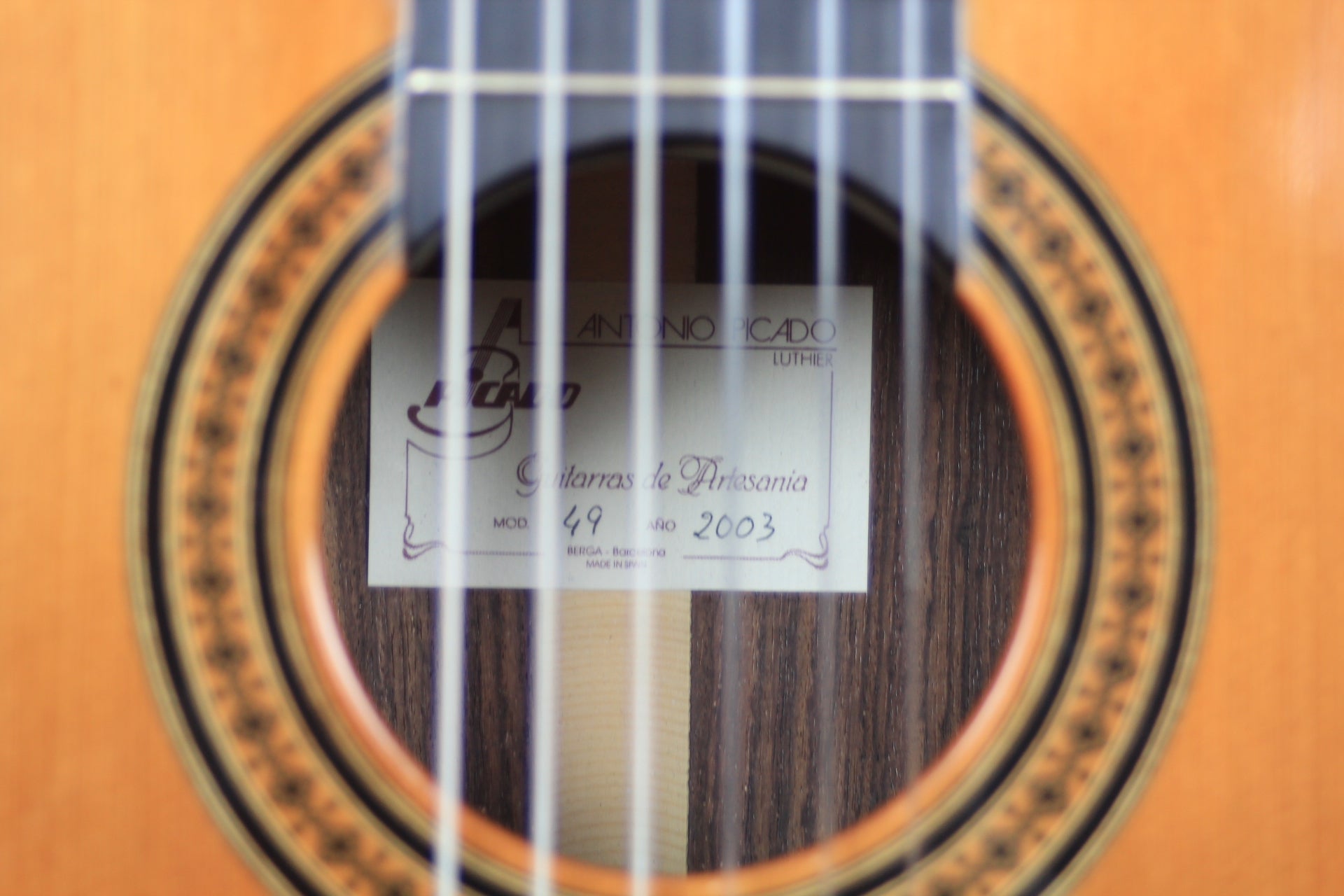 This Antonio Picado No. 49 has a cedar top and back and sides are made of East Indian Rosewood. This guitars can be characterized as very balanced and have a bright sound. These guitar is excellent in quality, comparable to the best hand-made instruments on the market. Included is a Tobago softcase.