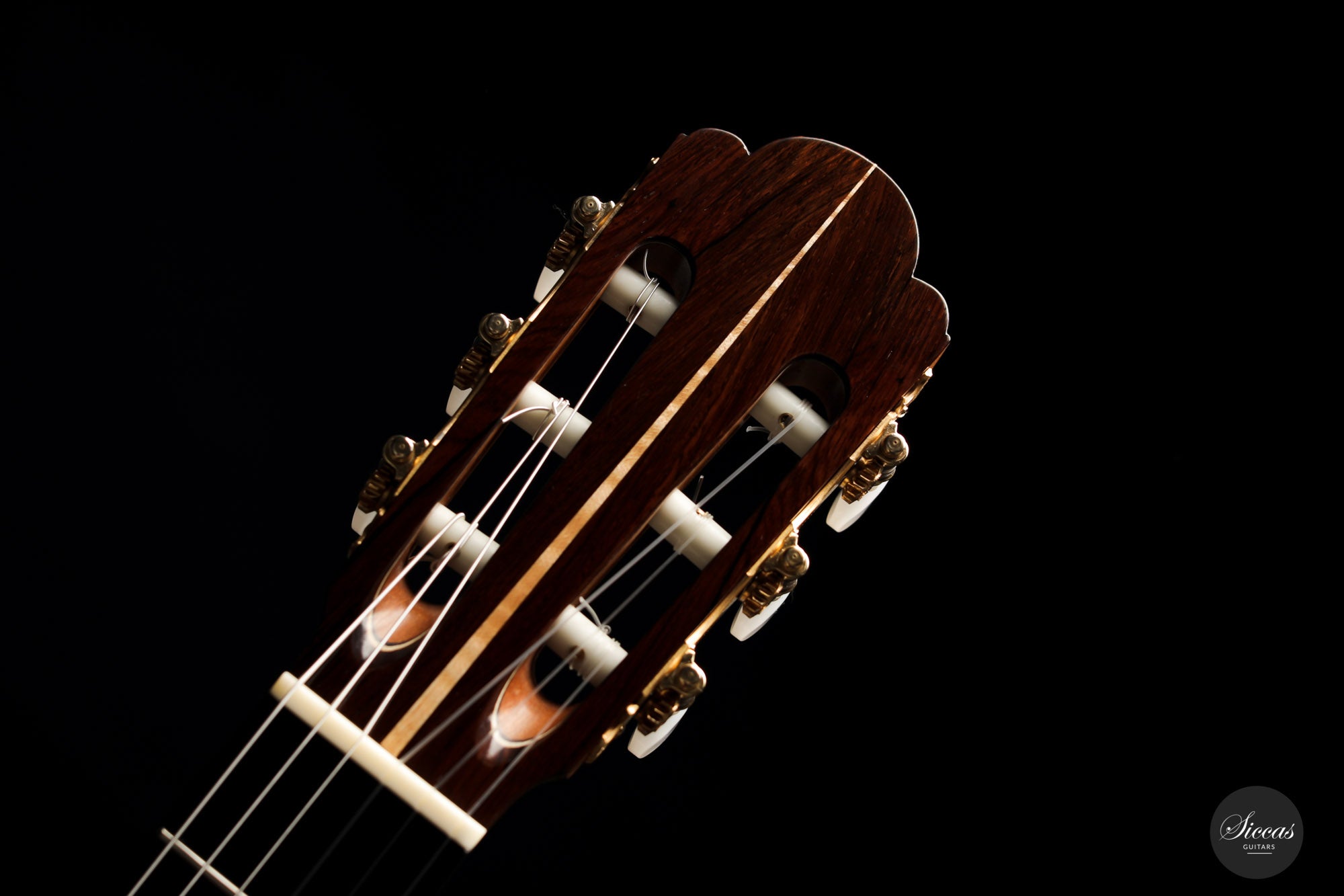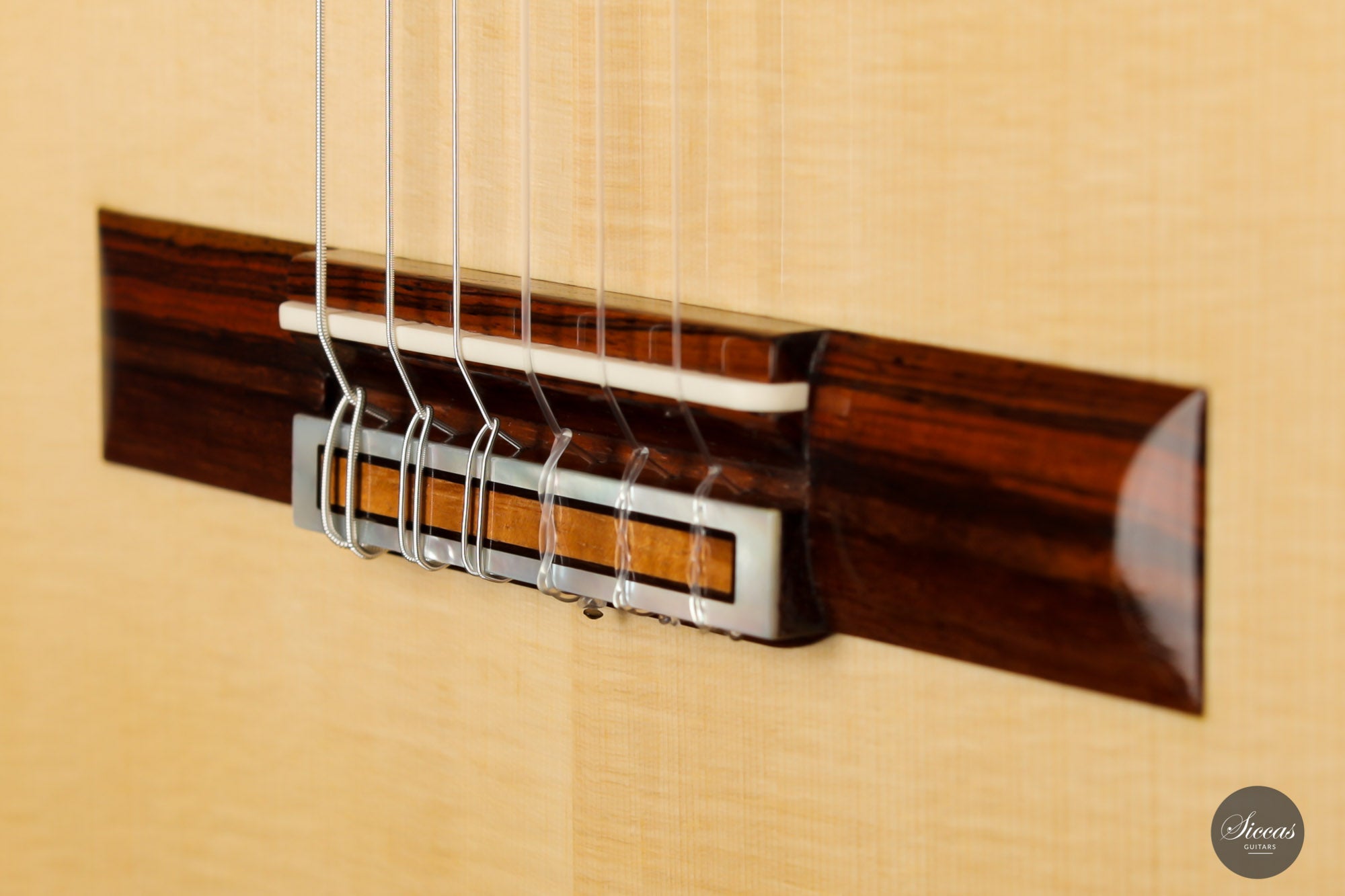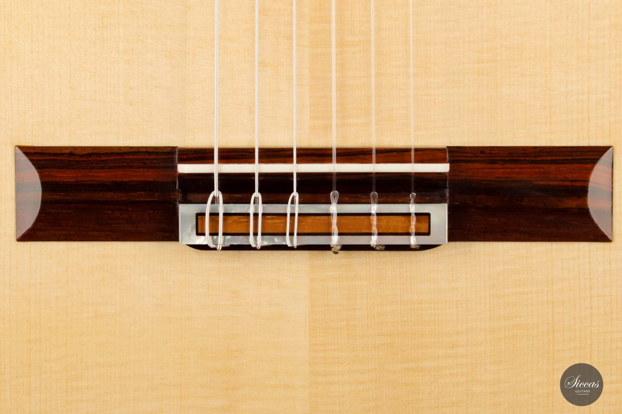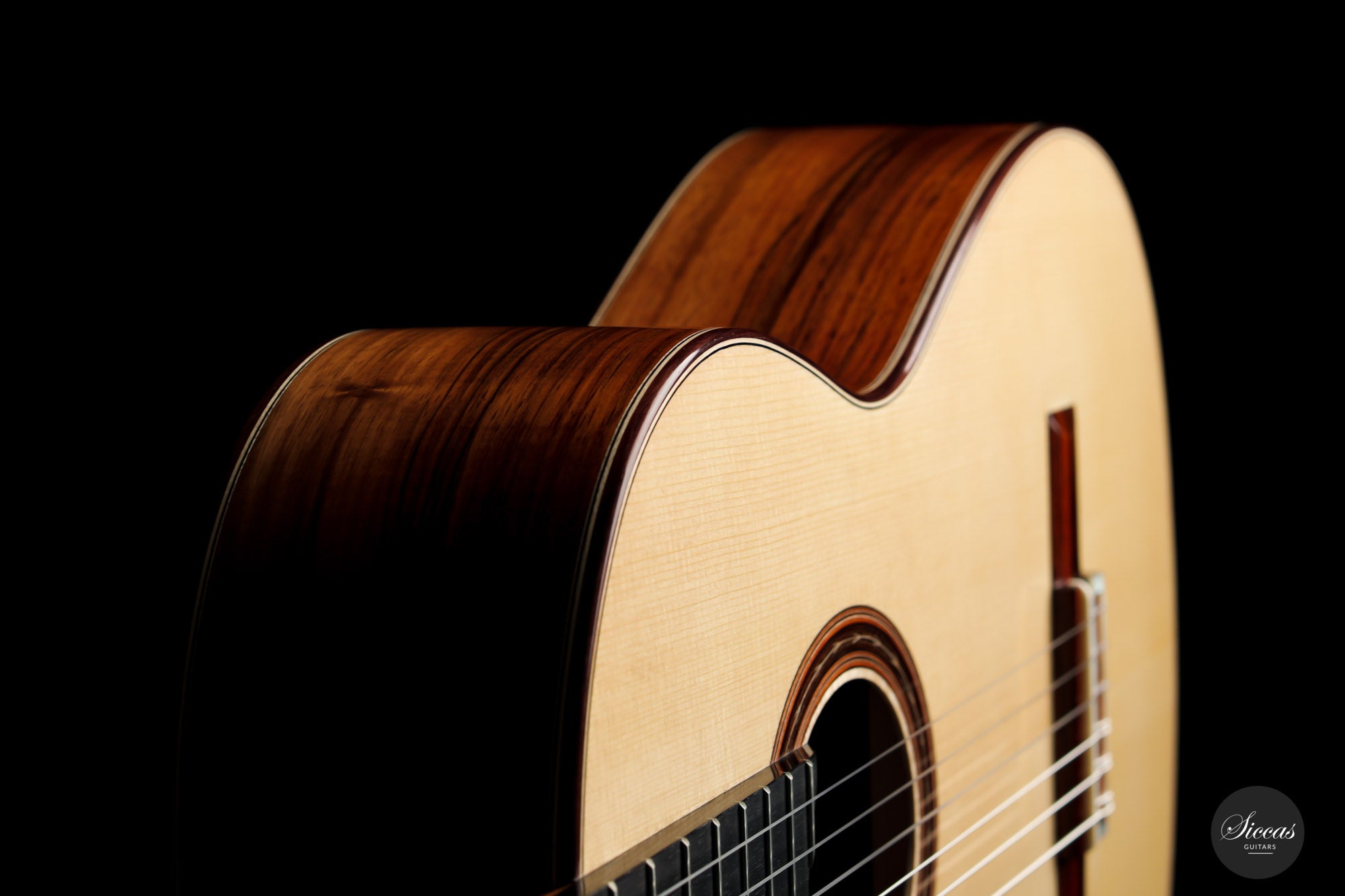 This beautiful Torres model has a slightly smaller body and is made with a gorgeous set of Pau Ferro for back and sides. This wood shows stunning orange colors with wonderful green and dark veins. The sound of this guitar is very appealing with rich timbres and clarity in the treble. A wonderful guitar that is suitable not only for a wide repertoire but also especially for guitarists who prefer an instrument with a slightly smaller body and expressive character.