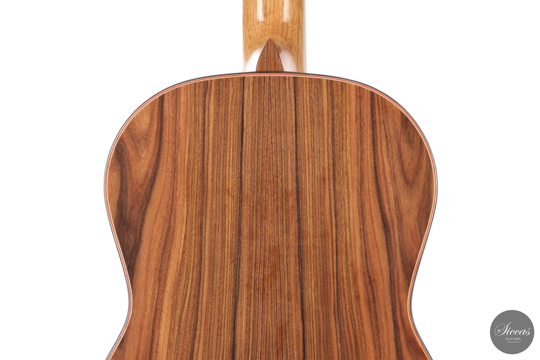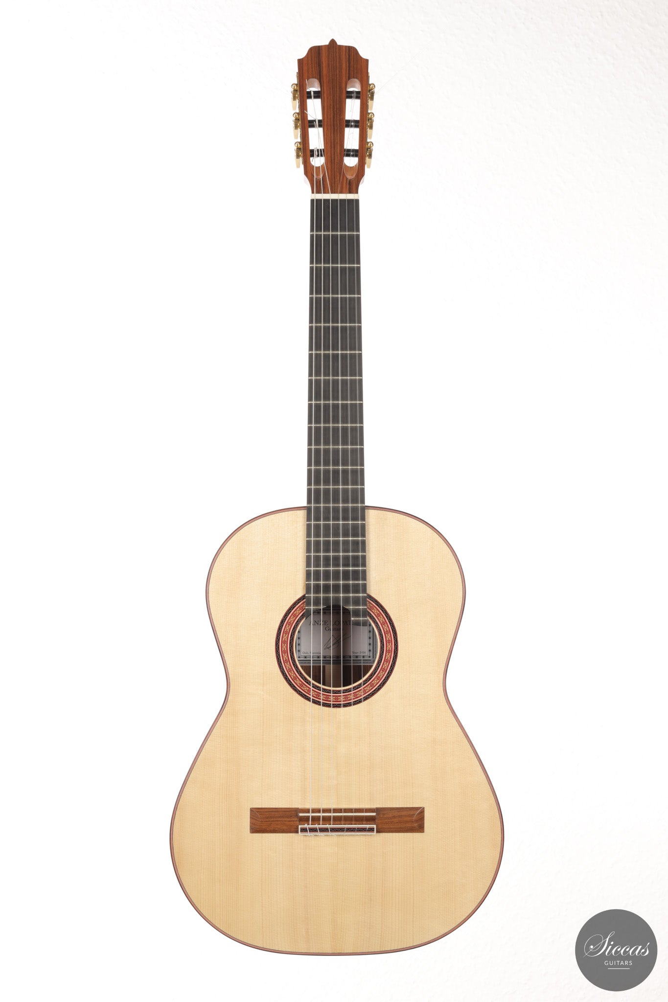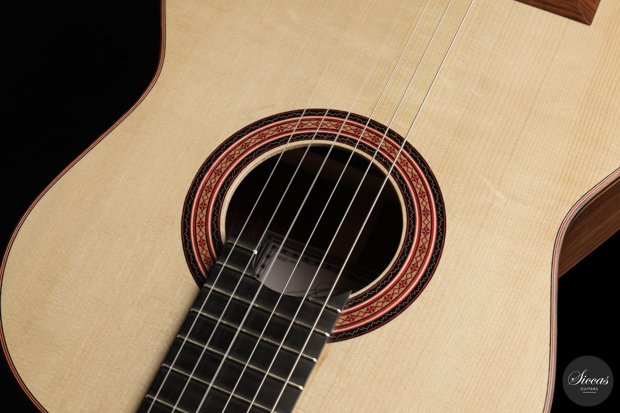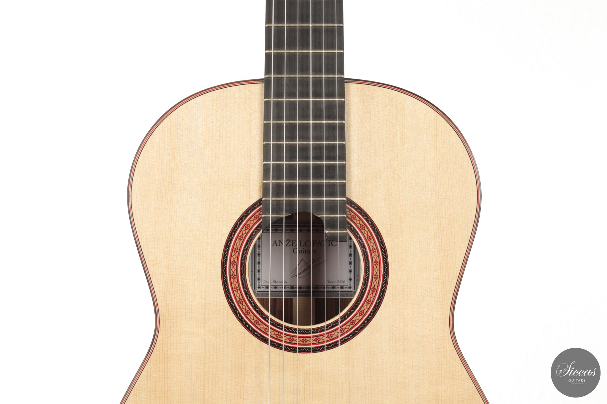 Anže Lopatič’s 2026 traditional model in spruce and Indian rosewood is defined by long sustain, clear brightness, and a tone with real carrying substance. The sound is not built around extreme speed, but around continuity, tonal weight, and a note that remains present after the attack. Its voice stays open and colourful, with a strong core and an easy, comfortable feel in the hands. A musically direct guitar with lasting tone and a calm, confident response.