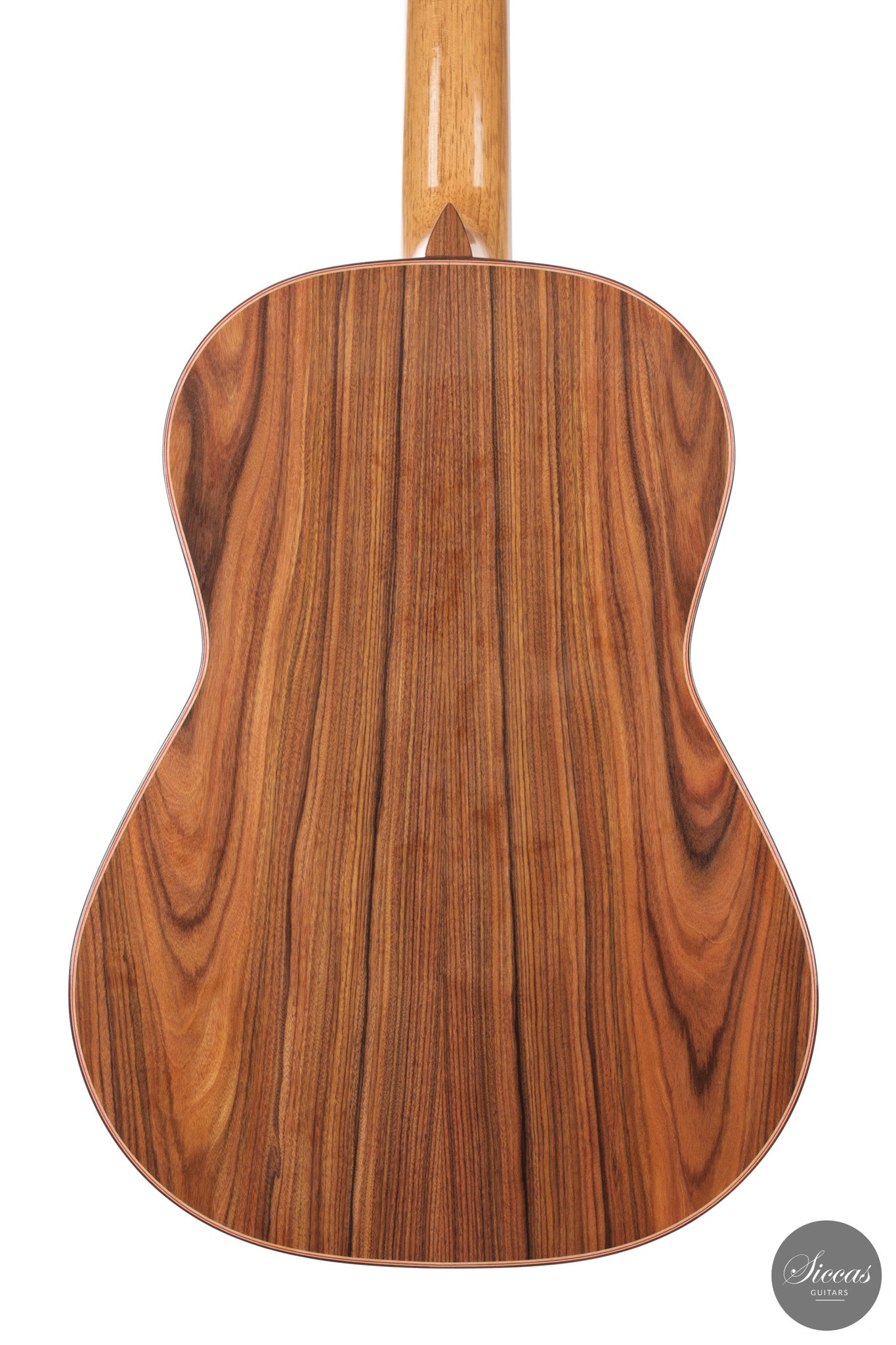 This 2026 spruce and Indian rosewood guitar is built along traditional lines, yet its character is defined less by dryness or restraint than by a notable sense of carry in the tone. The notes hold on and continue, with a sustain that is immediately apparent and gives the instrument a certain breadth in the way sound unfolds. Rather than producing a sharply percussive response, the guitar lets the tone travel forward and remain present.
