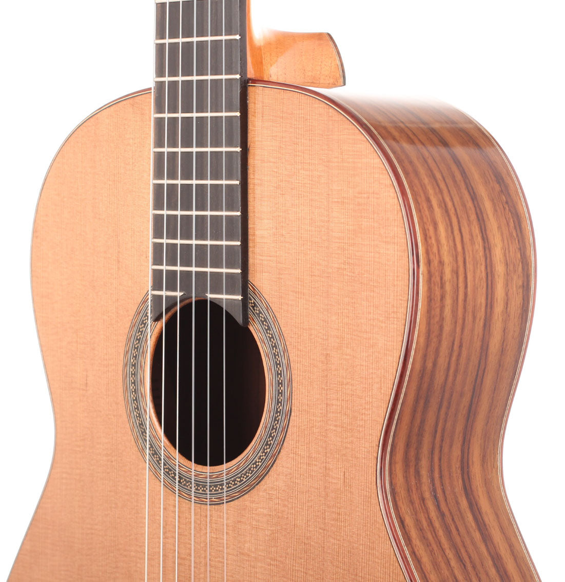 The classical guitar, with its soft nylon strings and characteristic timbre, has become a symbol of chamber music, Spanish tradition, and concert repertoire. Its modern form was shaped by Antonio de Torres in the 19th century, setting the standard for the body, fan bracing, and the 65-centimeter scale length that are still used today. Instruments in this category open up a rich palette from the refined Romantic miniatures of Tárrega to the majestic concertos of Rodrigo. Here you will find guitars that preserve historical continuity and at the same time inspire new interpretations.Look all products of the collection -