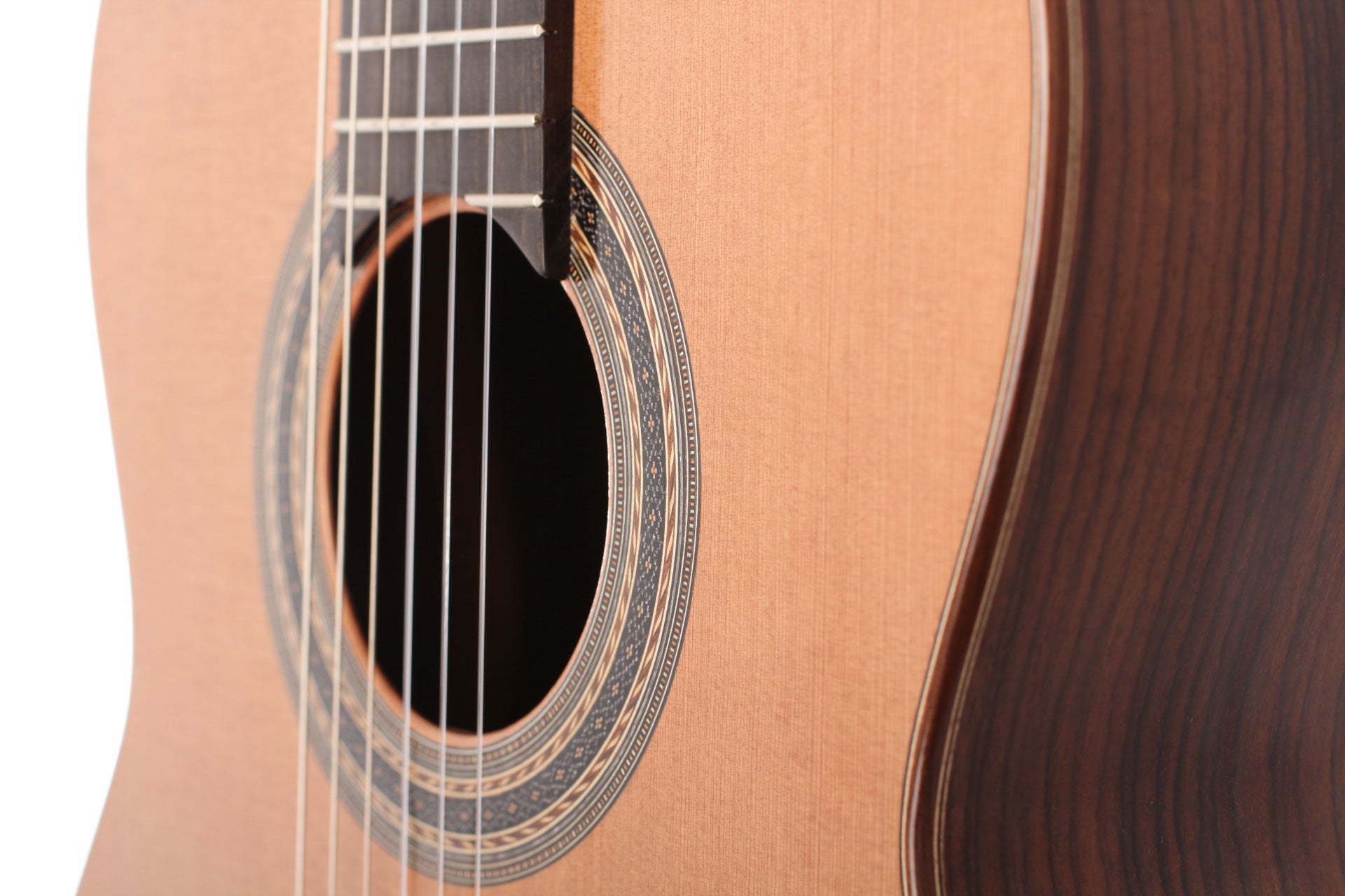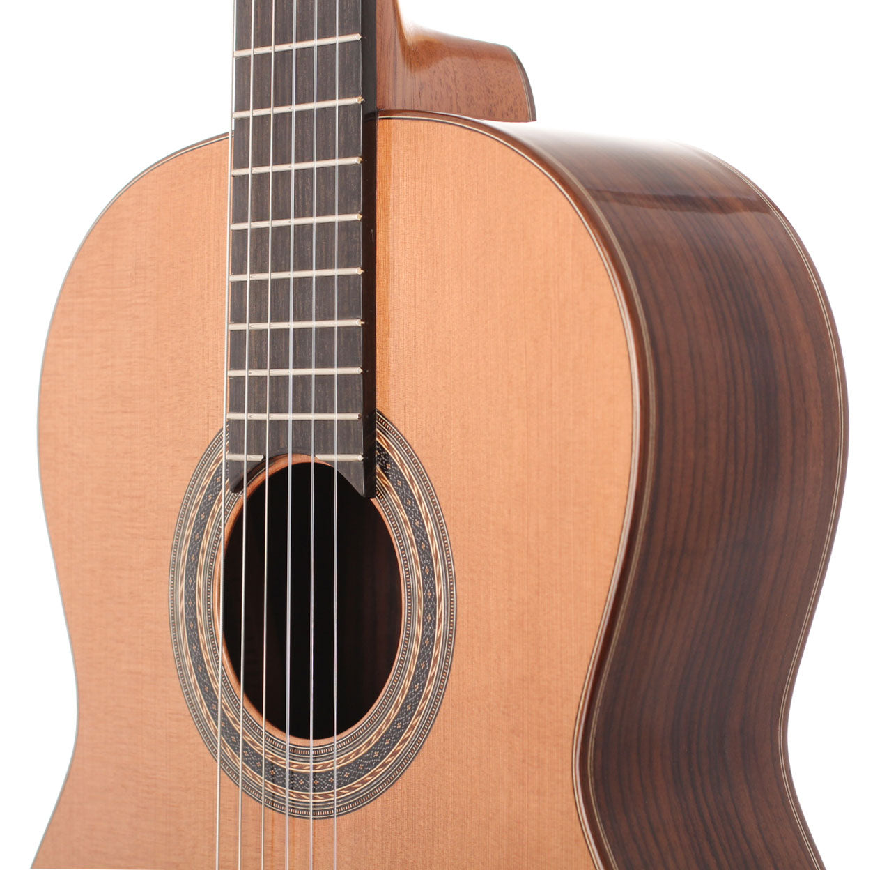 The classical guitar, with its soft nylon strings and characteristic timbre, has become a symbol of chamber music, Spanish tradition, and concert repertoire. Its modern form was shaped by Antonio de Torres in the 19th century, setting the standard for the body, fan bracing, and the 65-centimeter scale length that are still used today. Instruments in this category open up a rich palette from the refined Romantic miniatures of Tárrega to the majestic concertos of Rodrigo. Here you will find guitars that preserve historical continuity and at the same time inspire new interpretations.Look all products of the collection -