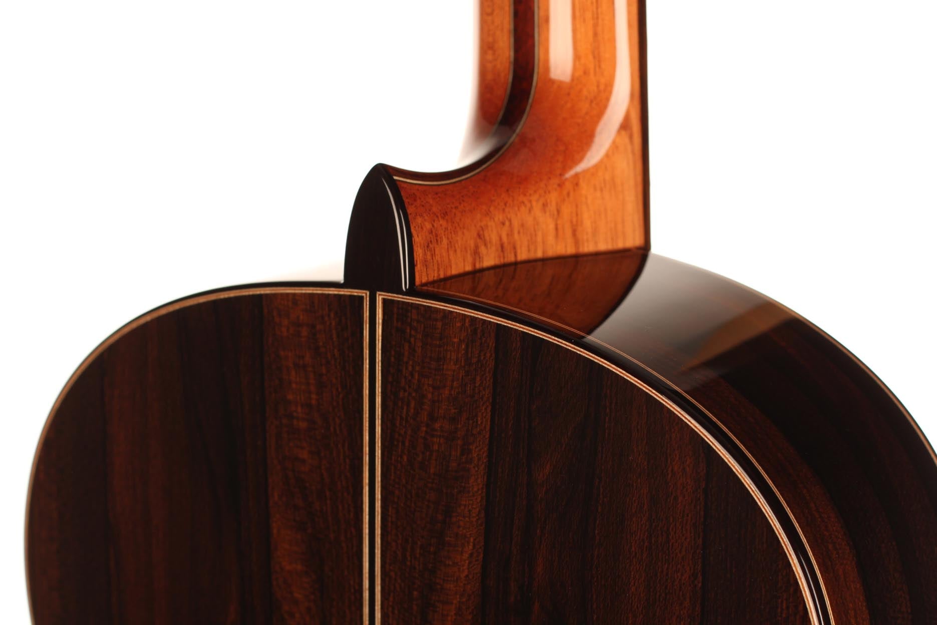 The guitar is made of high quality massive tone woods and the top has a high gloss shellac finish. The Klaus Scheller machine heads with snakewood pegs, the cedro neck reinforced with best hardwood, the quality ziricote fingerboard and 3-ply rosewood maple ziricote headstock show the high quality of the 1a Doubletop. The body has a gloss finish with a UV-curing acrylic lacquer and the top has a French polish finish. A CCCase carbon case included. This guitar is CITES free (CF).