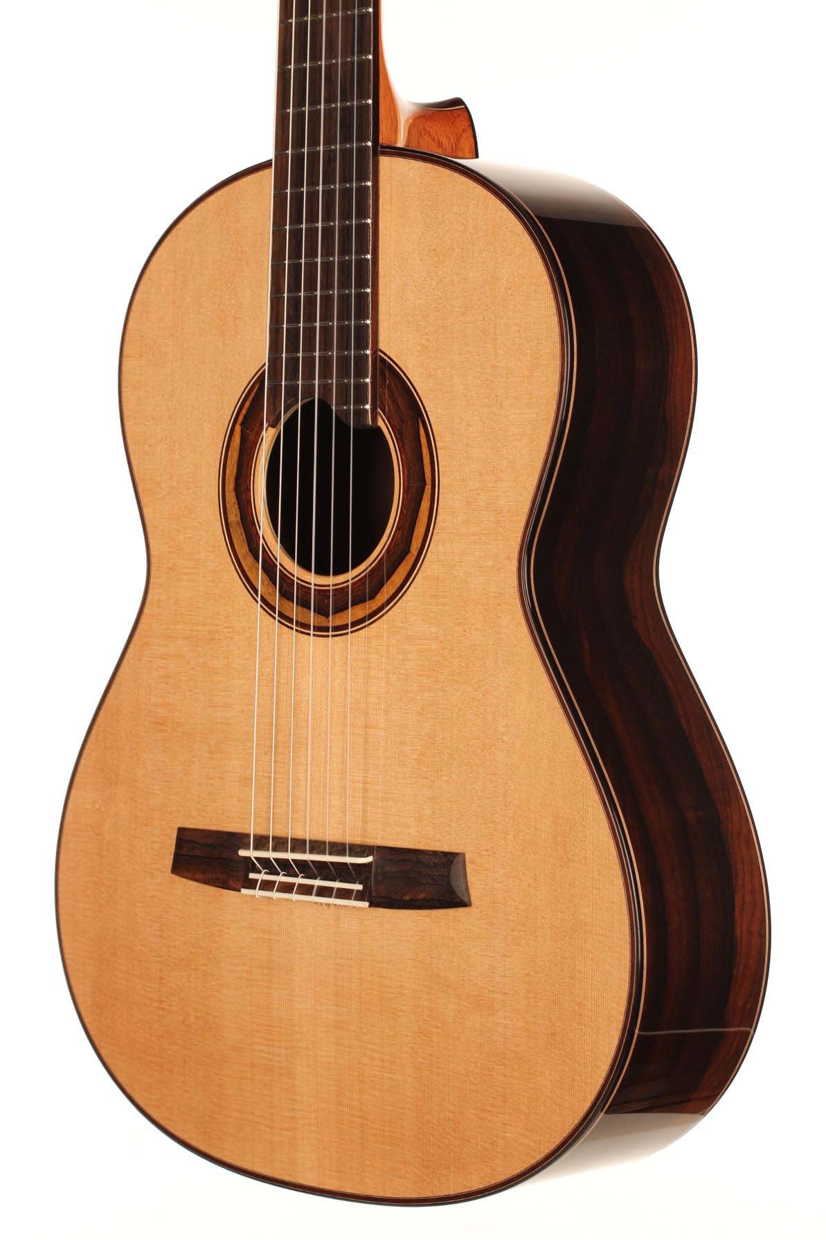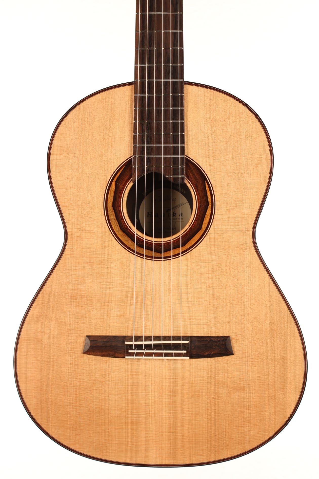 Price: $7,109Sale price $7,109 Price:Unit price / per Tax free (0% BM)$0Save: $-7,109Luthier: Elvis PajaresConstruction Year: 2025Construction Type: Double TopTop: CedarBack and Sides: Indian rosewoodSoundboard Finish: French polishBody Finish: French polishAir Body Frequency: F / F sharpWeight (g): 1415Tuner: Kris BarnettCondition: New -