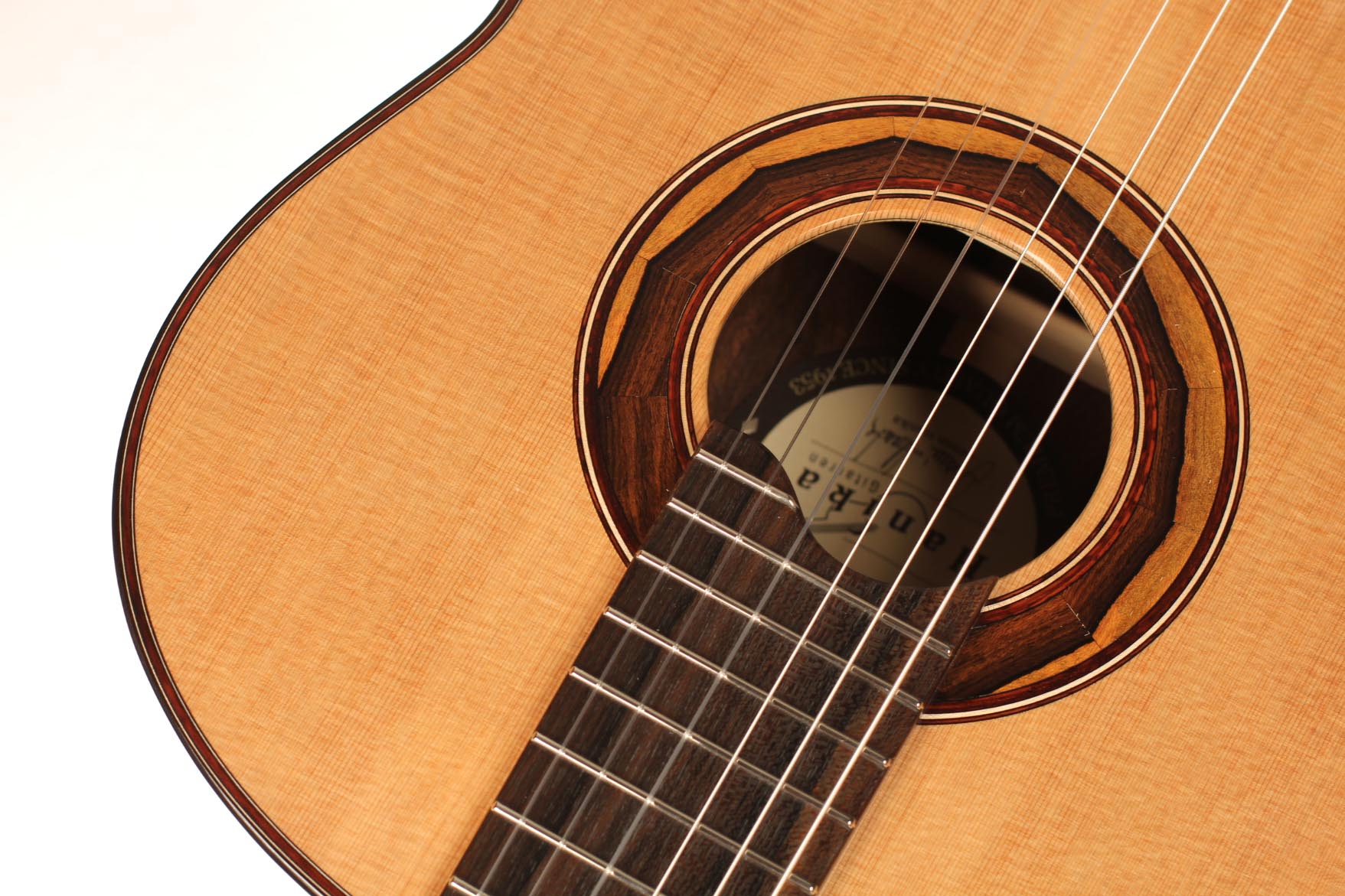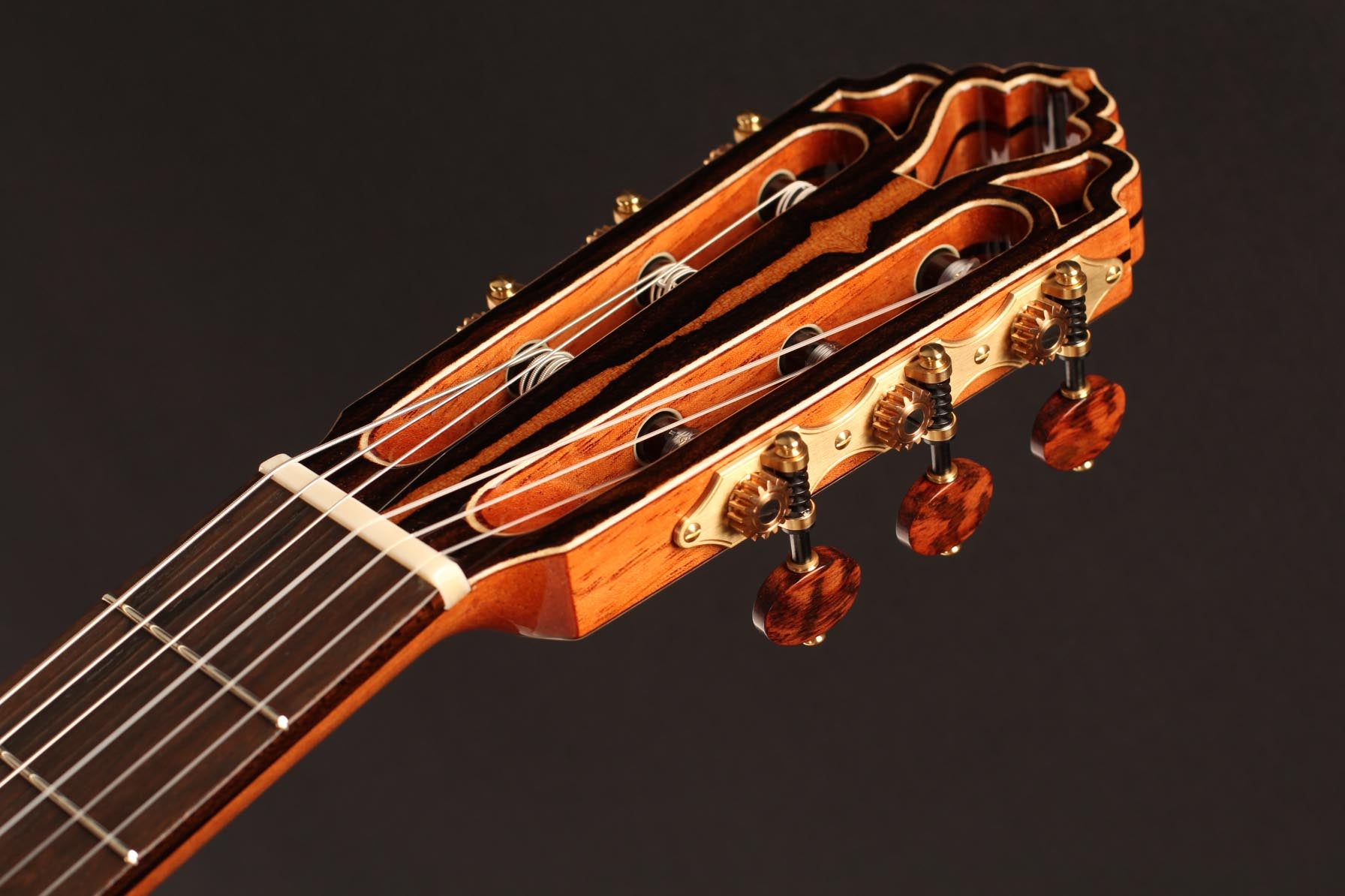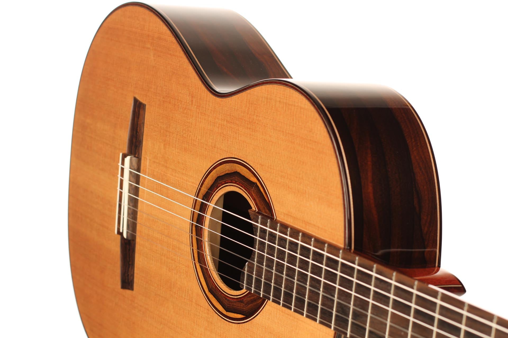 Back and sides are manufactured of finest ziricote and the top is made of excellent cedar. Along with the thin cedar top the 1a Doubletop achieves a very good response with full sound and good separation. This guitar satisfies highest demands, it is recommended for conscious players and can completely unfold, especially in slow and carried pieces.