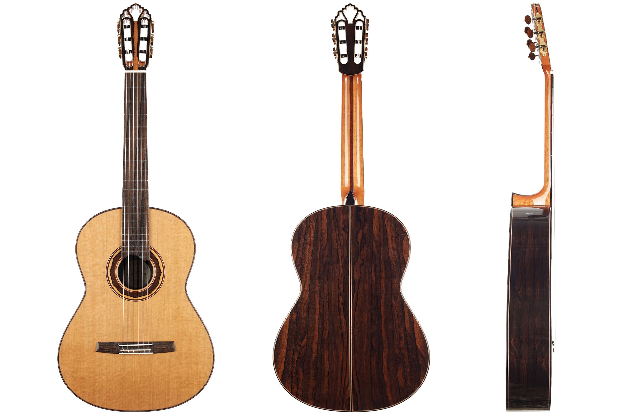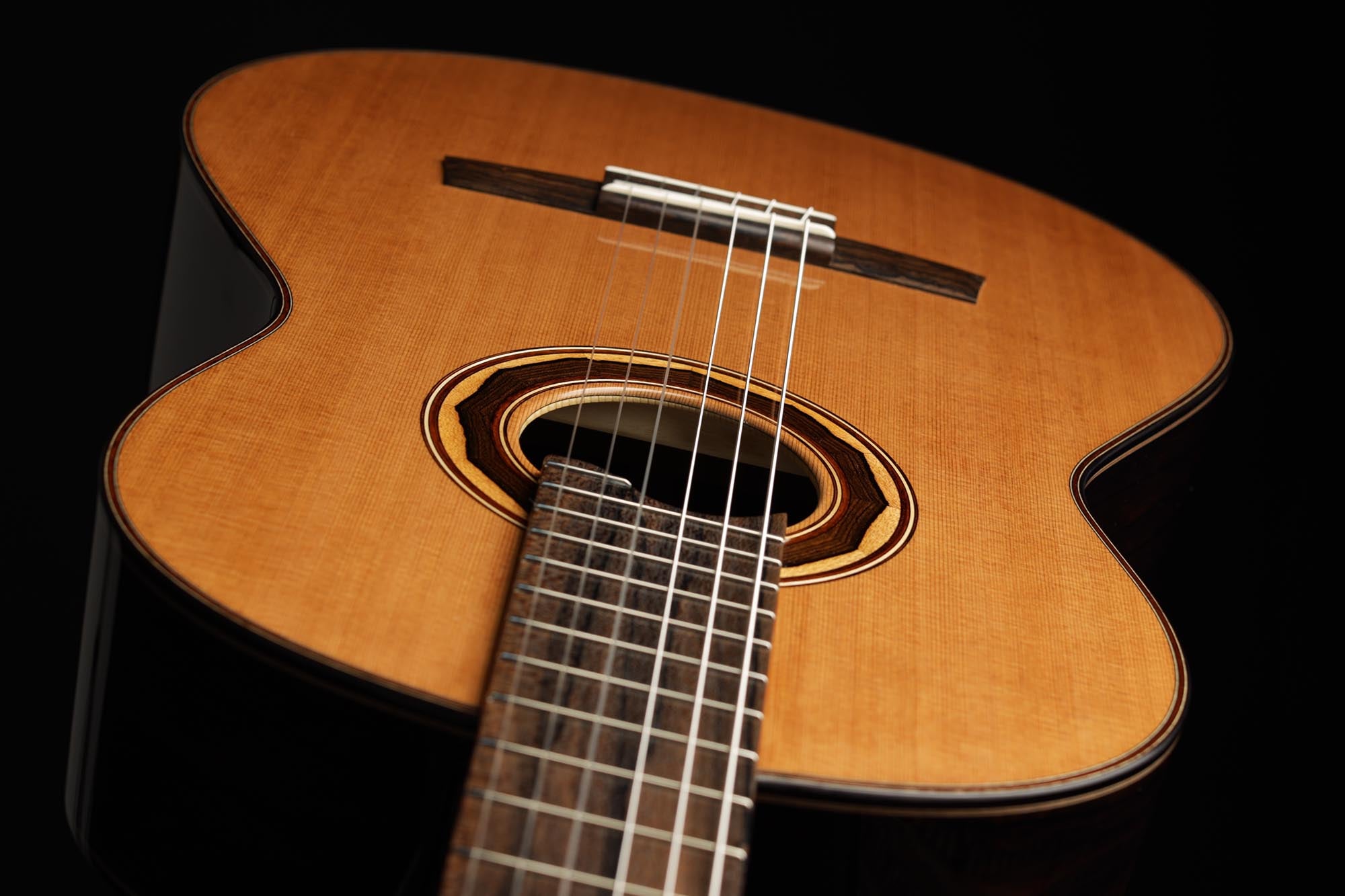 The 1a models are Armin Hanika’s most beautiful and sophisticated instruments. Back and sides are manufactured of finest ziricote, which is a very precious and particularly fantastic tonewood. Thanks to the thin and perfectly crafted cedar double top, this guitar achieves an outstanding response with full sound and great separation. Recommended for conscious and advanced players, it completely unfolds in experienced hands, especially in slow and carried pieces. Of course, the responsiveness of the double top is also of great support when it comes to the more virtuosic repertoire. A very protective CCCase carbon case is included, and first quality German tuning machines by Klaus Scheller highlight once again the elegance of this guitar.