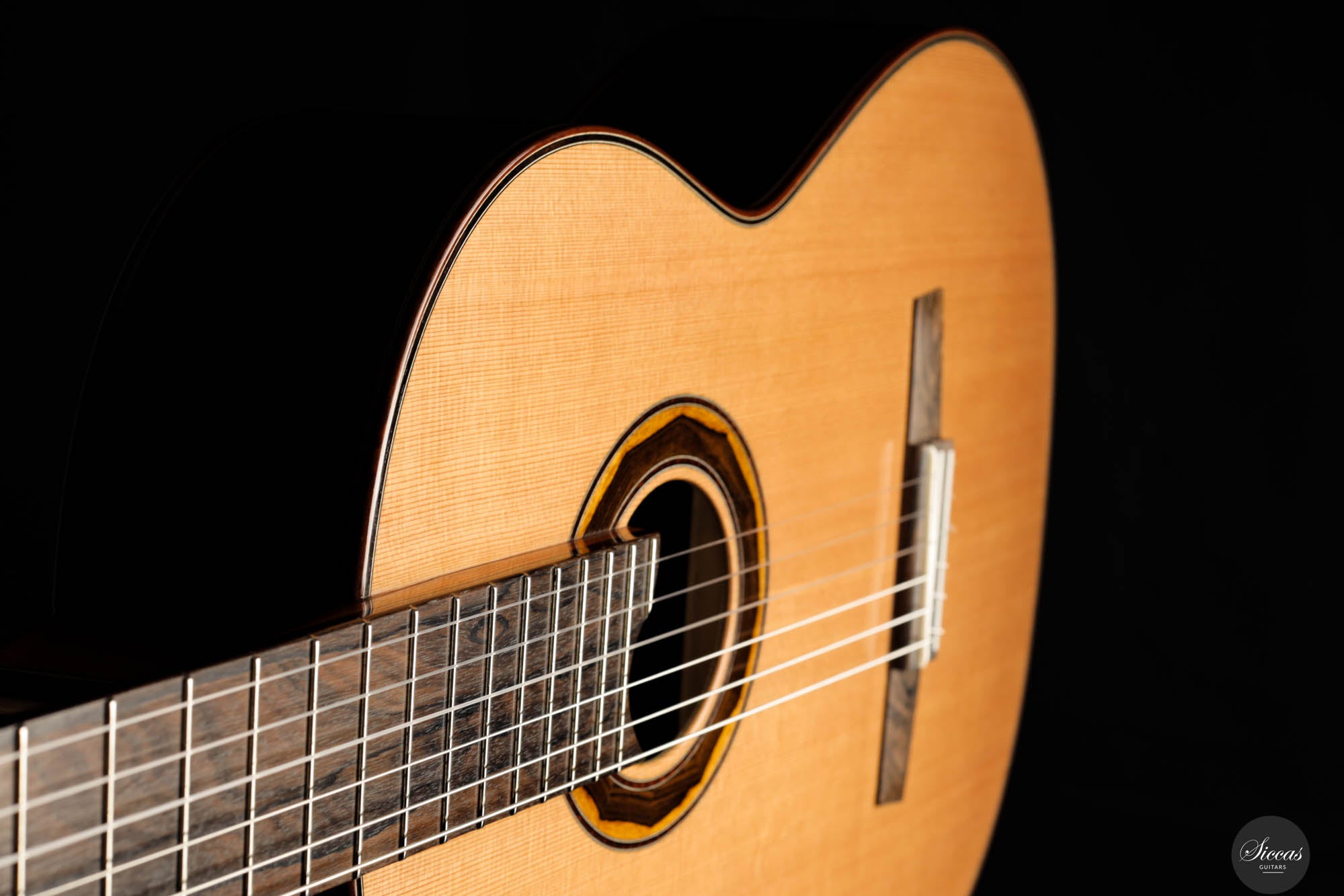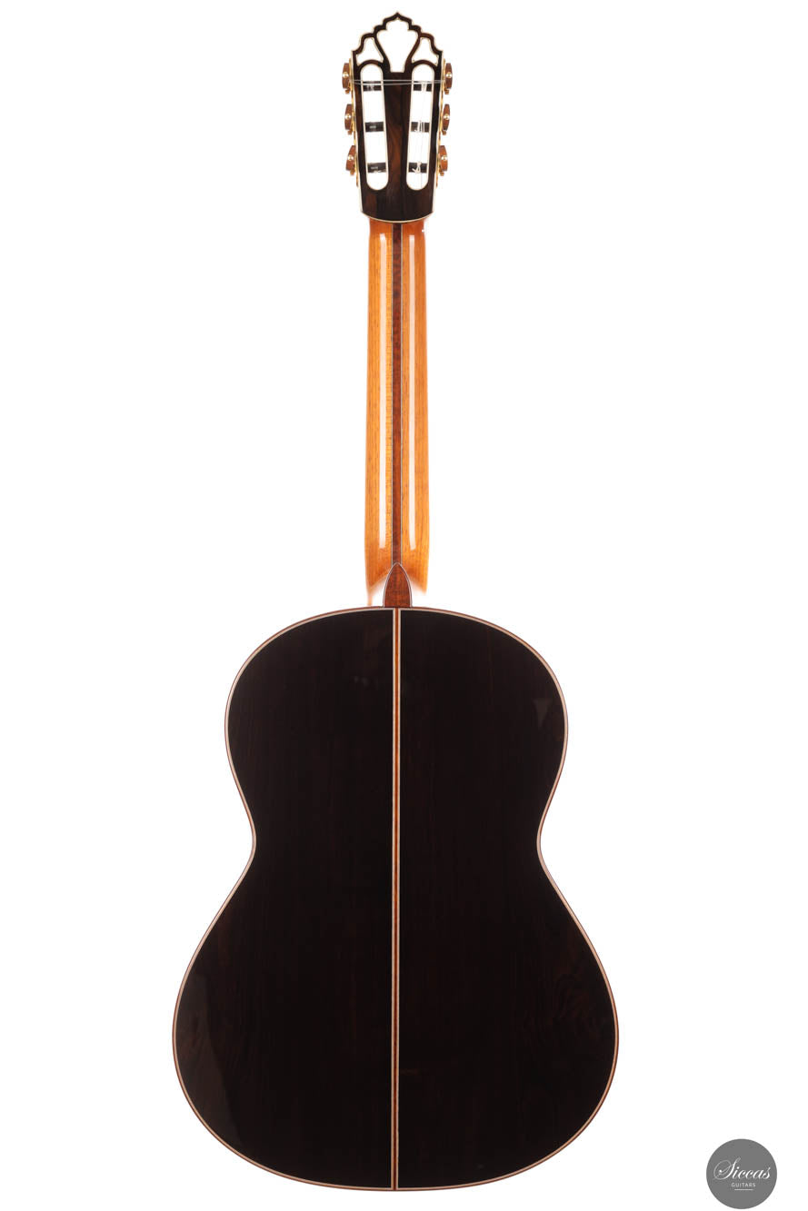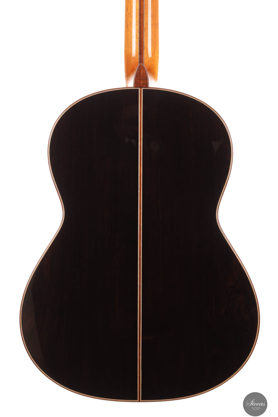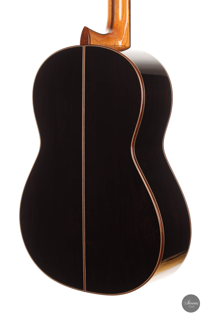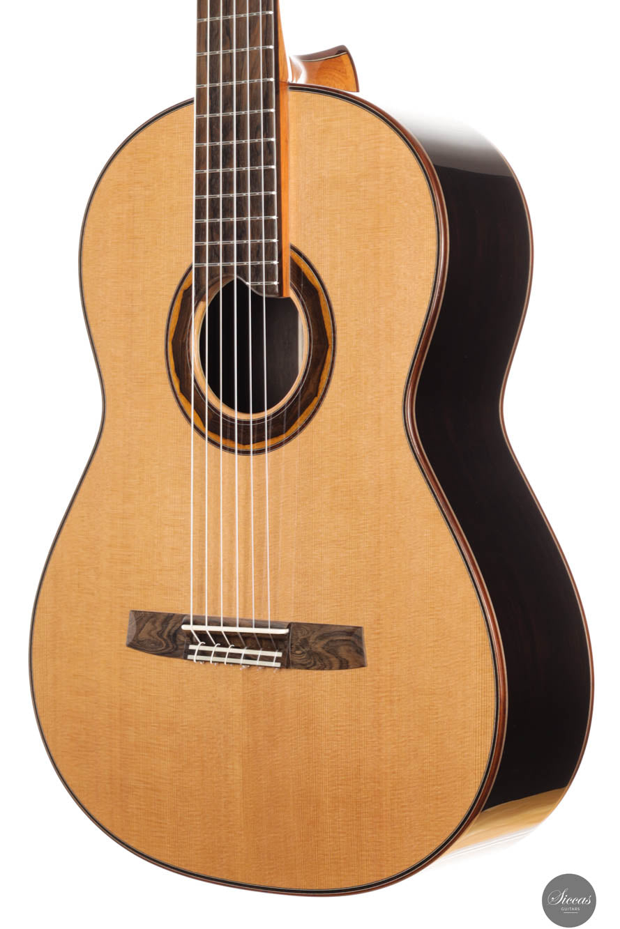 The 1a Lattice models represent the pinnacle of Armin Hanika's guitar craftsmanship, showcasing exceptional beauty and sophistication. These models feature back and sides constructed from the finest hand-picked Mexican ziricote wood, complemented by a double-top lattice soundboard made from perfectly split cedar wood. The innovative design of the domed soundboard with lattice bracing enhances the guitar's efficiency, while Klaus Scheller tuning machines emphasize the high quality standards that the 1A Lattice demands. Visually, the guitar stands out with its body finished in a UV-curing high-gloss varnish and a soundboard meticulously hand-polished with shellac, presenting a stunning aesthetic that is as refined as it is durable.