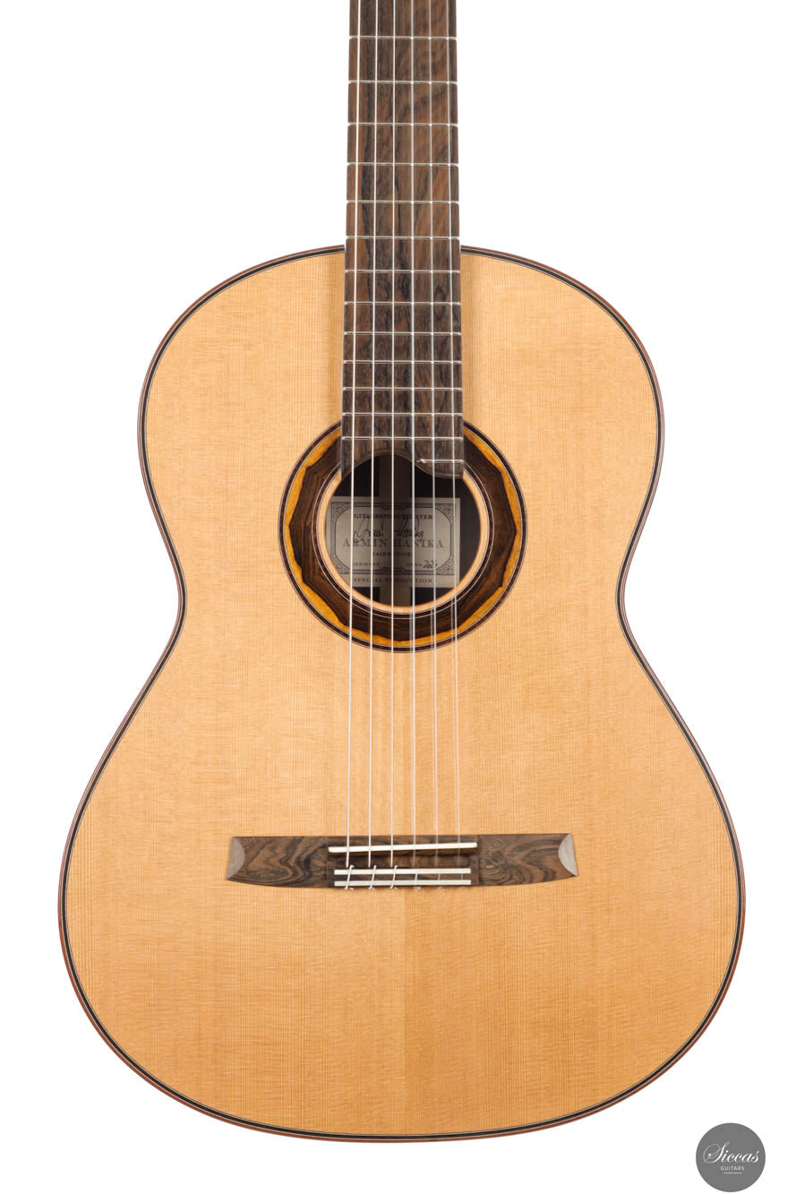 Be mindful when touching your instrument with greasy or unwashed hands: any skin contact is a small attack on the varnish. Of course, a guitar is made to be played, but taking a few precautions helps preserve its beauty: wash your hands before playing, wear long sleeves, and avoid unnecessary direct skin contact with the body of the instrument.