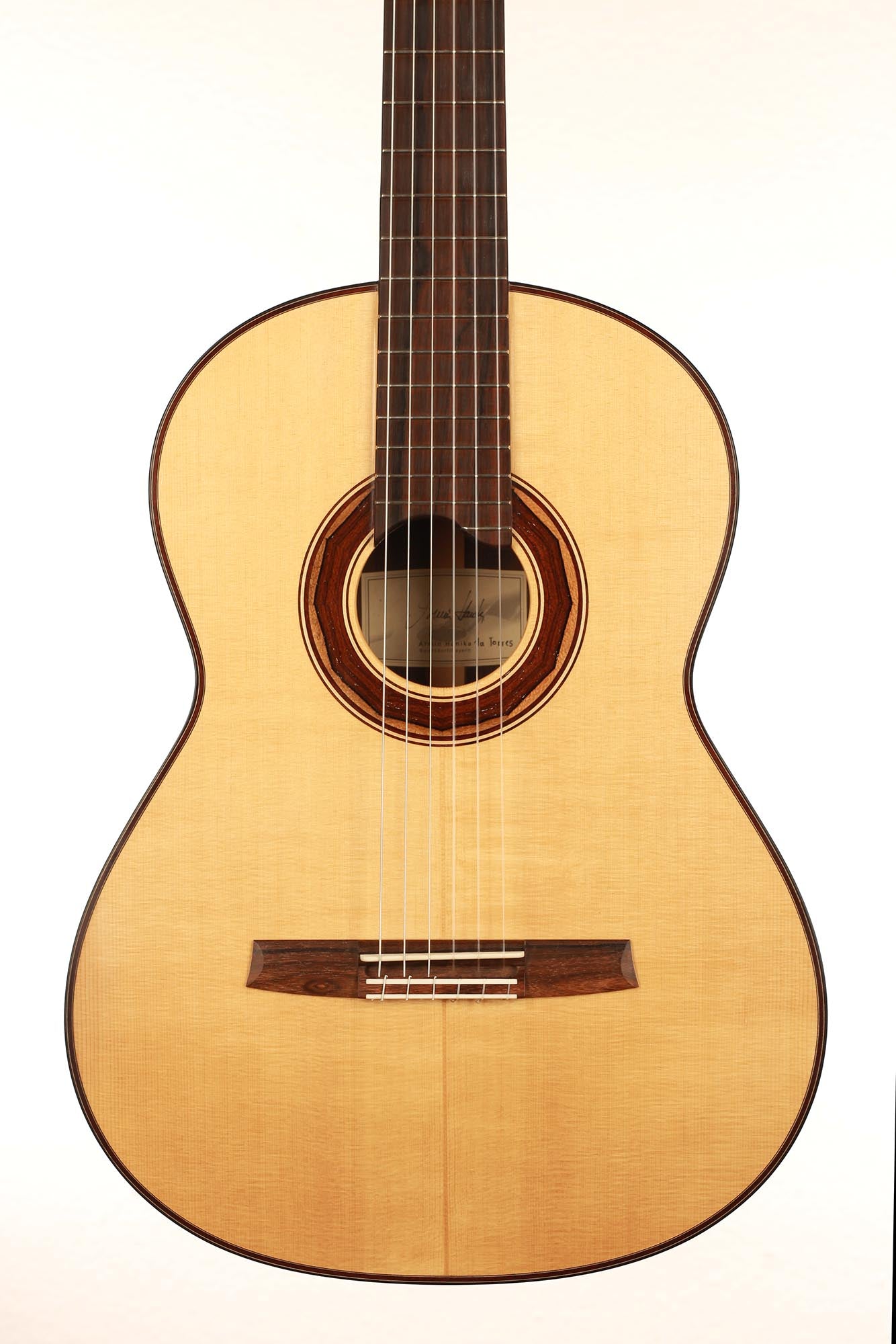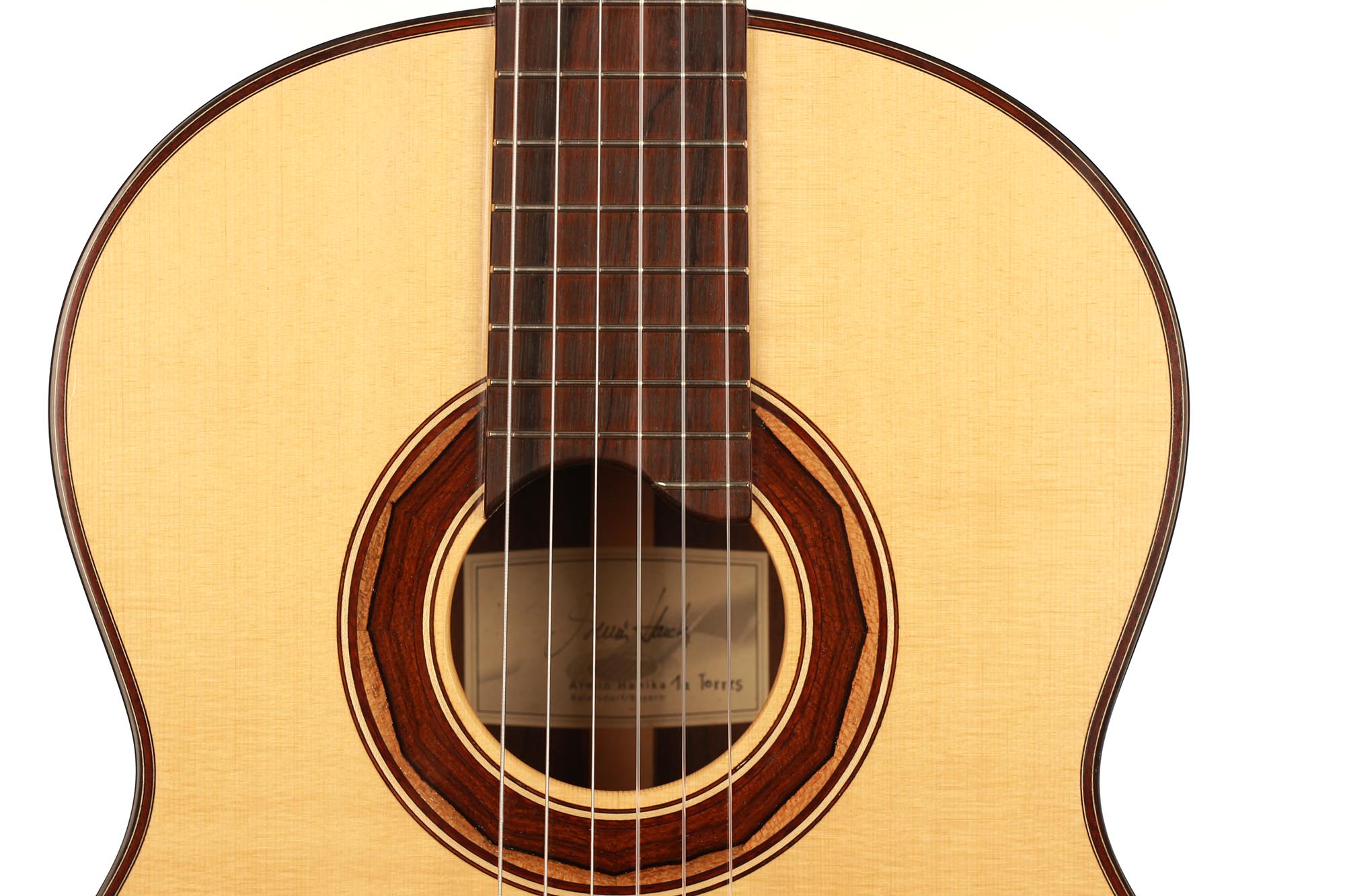 This guitar is made of high-quality massive tone woods and has a high gloss French polish finish on the top. The body has a gloss finish with a UV-curing acrylic lacquer. The Klaus Scheller machine heads, the cedro neck reinforced with best hardwood, the quality ebony fingerboard and 3-ply rosewood-maple-ziricote headstock shows the high quality of the 1a Torres. It is built without any protected woods and therefore CITES-Free.
