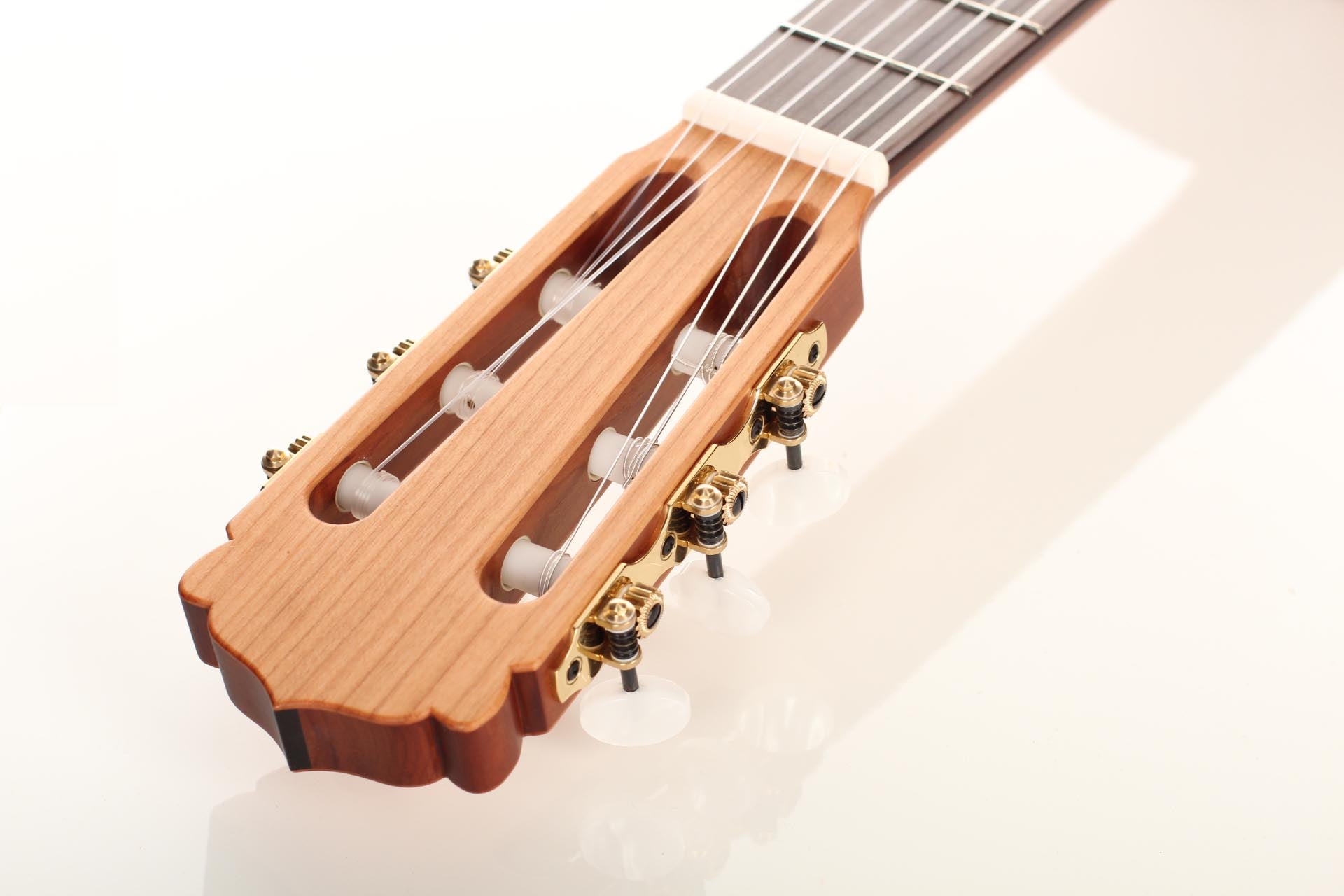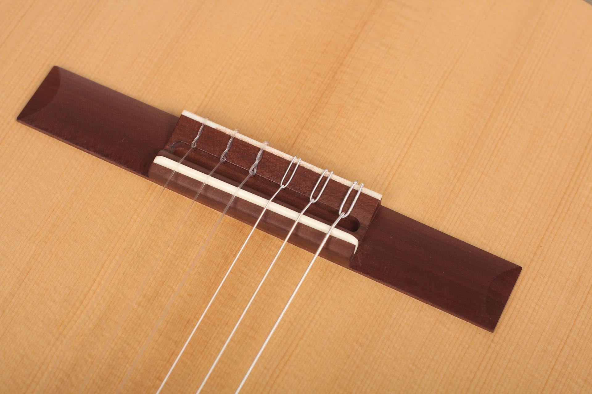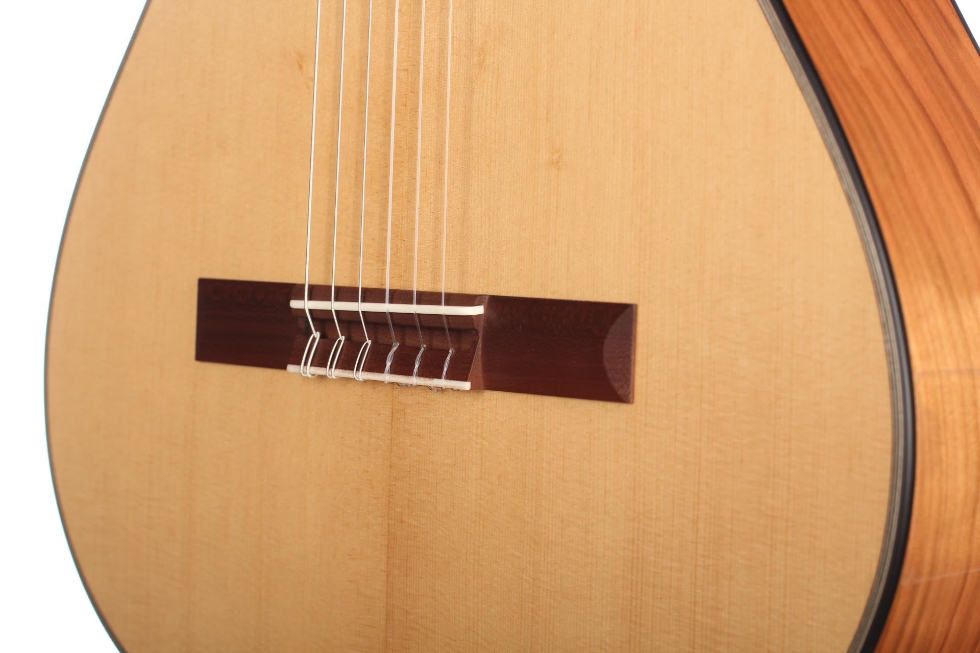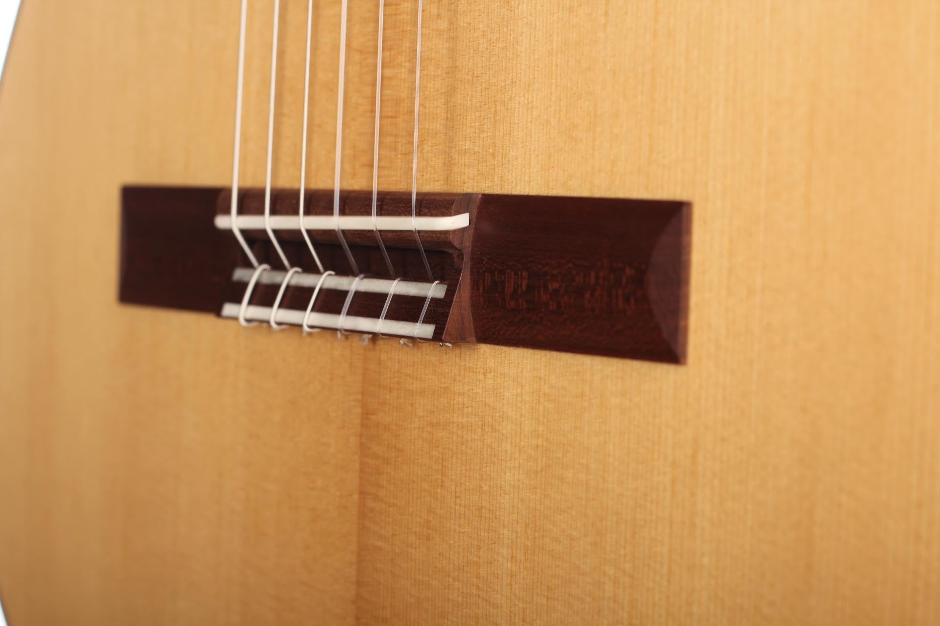 The guitar is made of high quality massive tone woods and has a high gloss finish on back and sides. The Rubner machine heads, the cherry wood neck reinforced with best hardwood, the quality fingerboard show the high quality of 50 KF N. The body has a gloss finish with a UV-curing acrylic lacquer and the top has a matt finish. This guitar is Cites-free (CF).