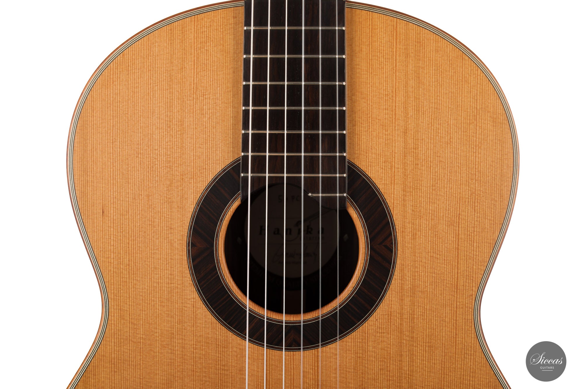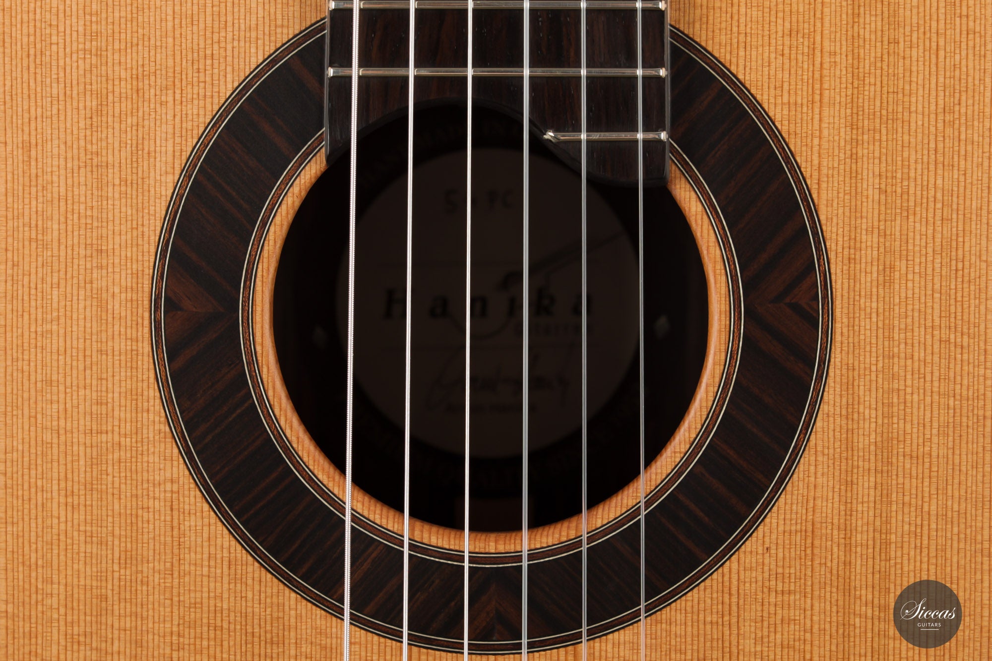 Back and sides of this guitar are made of high quality East Indian rosewood and the top is made of excellent spruce. Rosewood is considered one of the most universal tone woods for guitars, along with the thin cedar top the 54 PC gets a very good attack with full sound and a separated warm sound. Response and sustain in of this guitar are perfectly balanced, what makes it the perfect instrument for many different type of players. This very thin varnish/wax sealing makes the surface more resistant to typical playing loads and yet the thin sealing creates a particularly open and transparent sound. This Hanika is made of fine-massive tone woods and features a thin top with an asymmetrical 5-fan-bracing. Comes with a Hanika Gig-bag. The photos of this guitar are general product images that may differ from the actual instrument.Regular care extends the life of the instrument