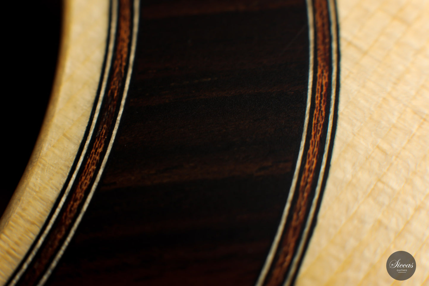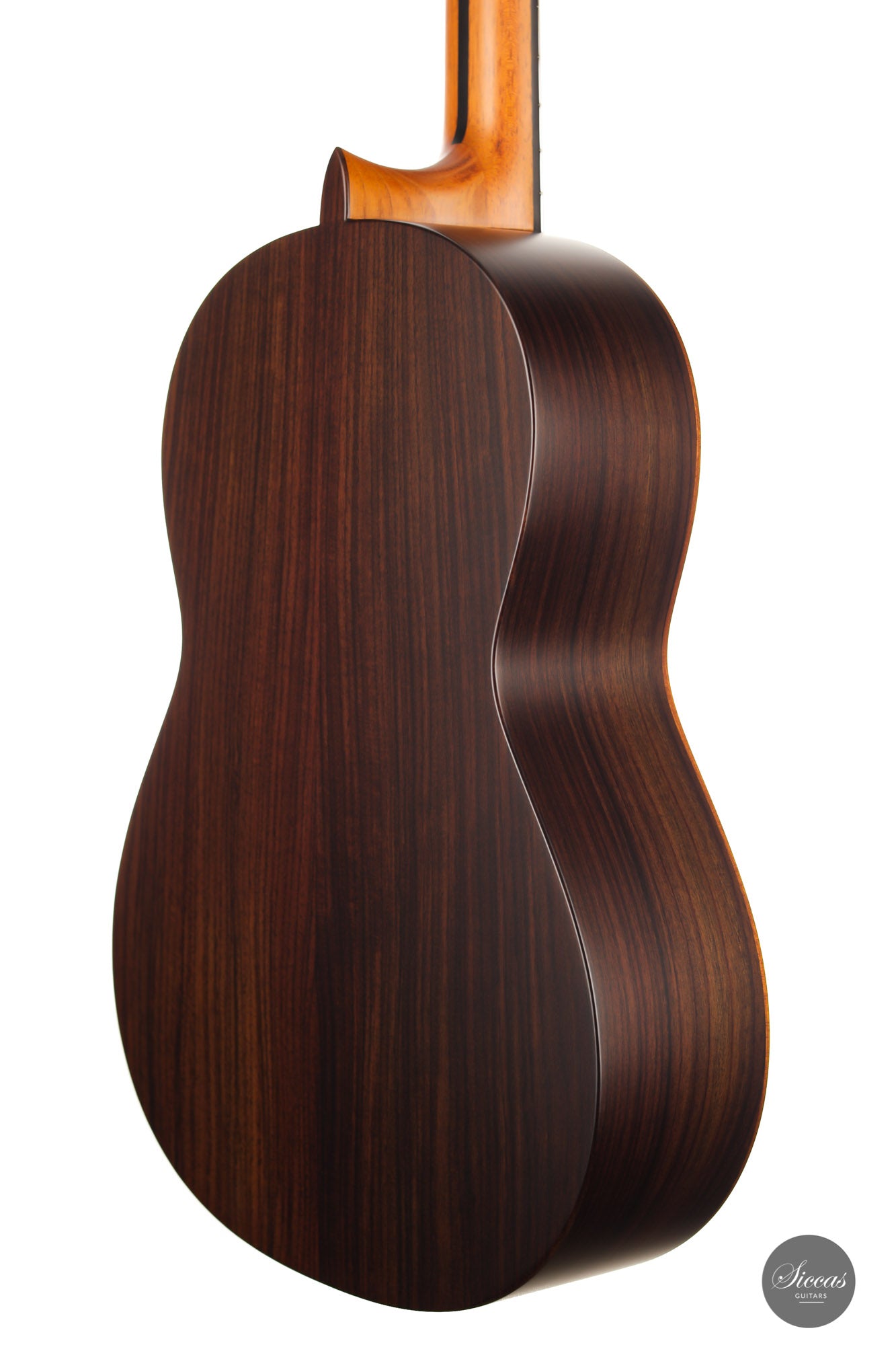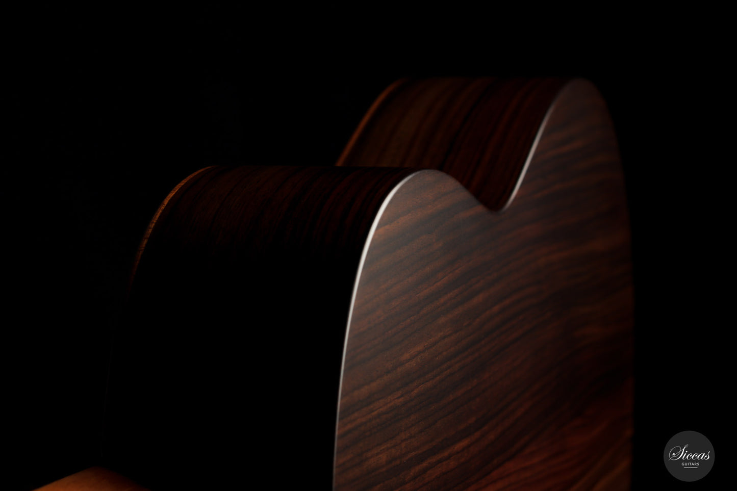Back and sides of this guitar are made of high quality East Indian rosewood and the top is made of excellent spruce. Rosewood is considered one of the most universal tone woods for guitars, along with the thin spruce top the 54 PF gets a very good attack with full sound and a separated sharp sound. Response and sustain in of this guitar are perfectly balanced, what makes it the perfect instrument for many different type of players. This very thin varnish/wax sealing makes the surface more resistant to typical playing loads and yet the thin sealing creates a particularly open and transparent sound. This Hanika is made of fine-massive tone woods and features a thin top with an asymmetrical 5-fan-bracing. Comes with a Hanika Gig-bag.