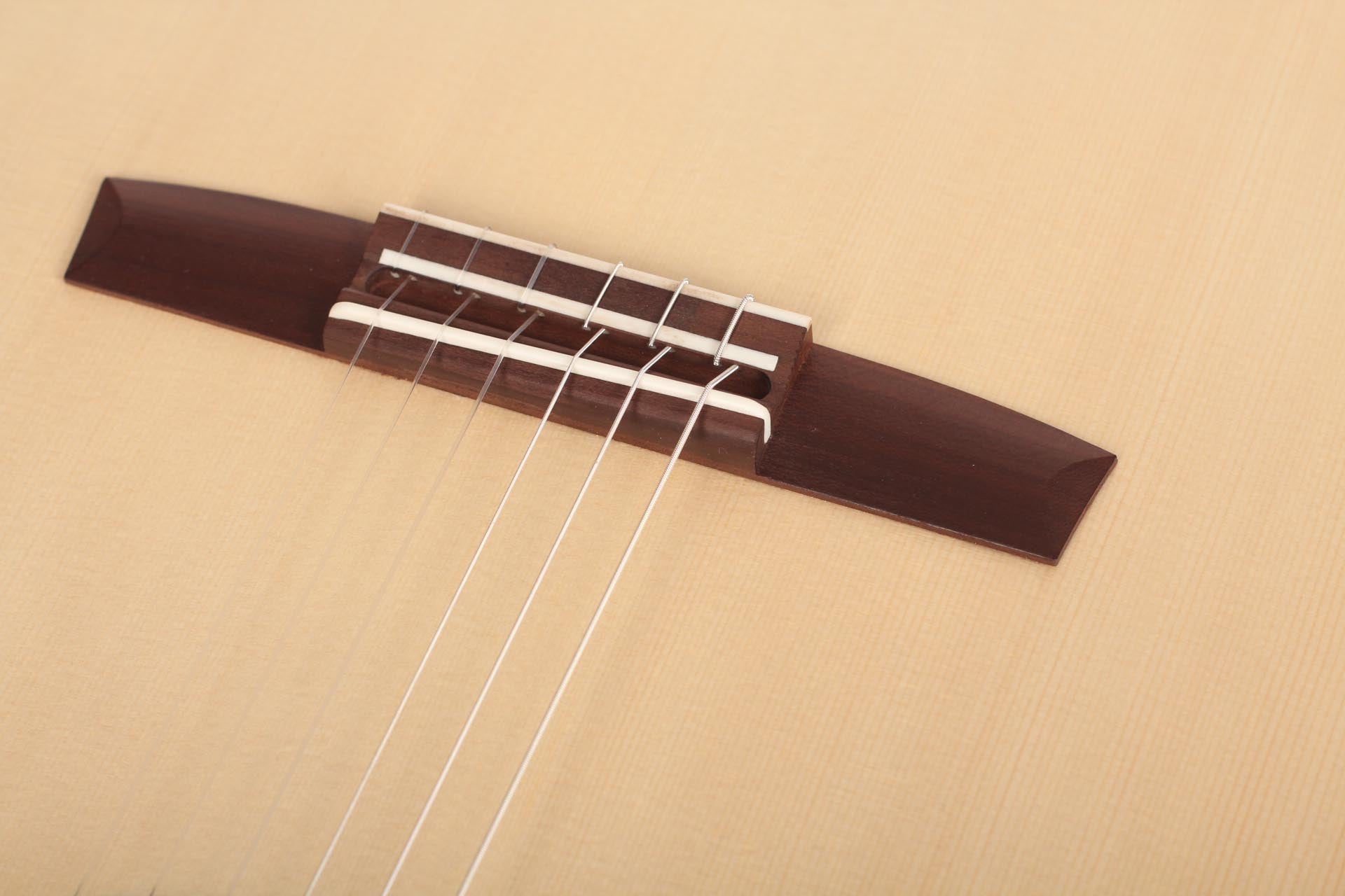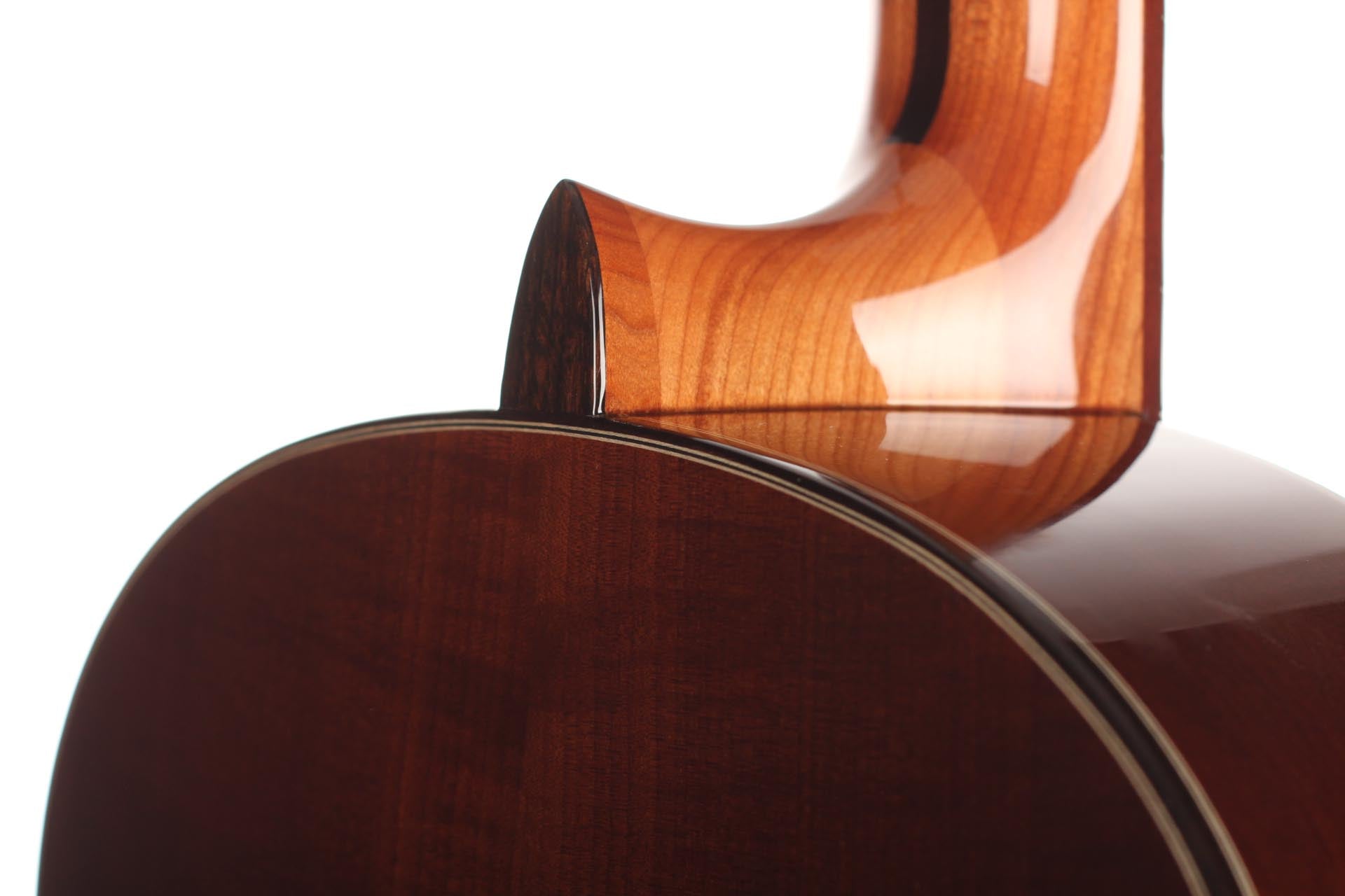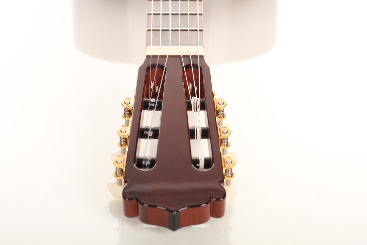 Back and sides are made from high-quality thermo-treated Chequers wood with a soundboard made from outstanding spruce wood. Chequers wood is characterized by its particularly dense wood structure and is regarded as one of the best domestic tonewoods for guitars. In conjunction with the wafer-thin spruce-wood soundboard with a lattice structure, these woods ensure that the 58 EF-N achieves a very good attack with a full sound and crisp tone. This guitar meets high demands, is recommended for advancing players and its versatile sound really comes into its own for a diverse range of playing techniques. Made from very high-quality solid tonewoods, this guitar has a high-gloss finish, a domed soundboard, and lattice bracing. The bushed golden tuning machines with Galalith pegs, the thermo-treated cherry neck completely reinforced with thermo-treated chequers wood and the thermo-treated chequers wood headstock are hallmarks of the 58 EF-N’s high quality. The fretboard is made of thermo-treated plum wood, thus ensuring that the entire guitar is made exclusively of domestic wood. The back, sides and neck of the guitar are varnished with a UV-cured, high-gloss acrylic lacquer. The soundboard is sealed with a thin layer of natural varnish. Included is a Hiscox Pro II case. This guitar is Cites-free.