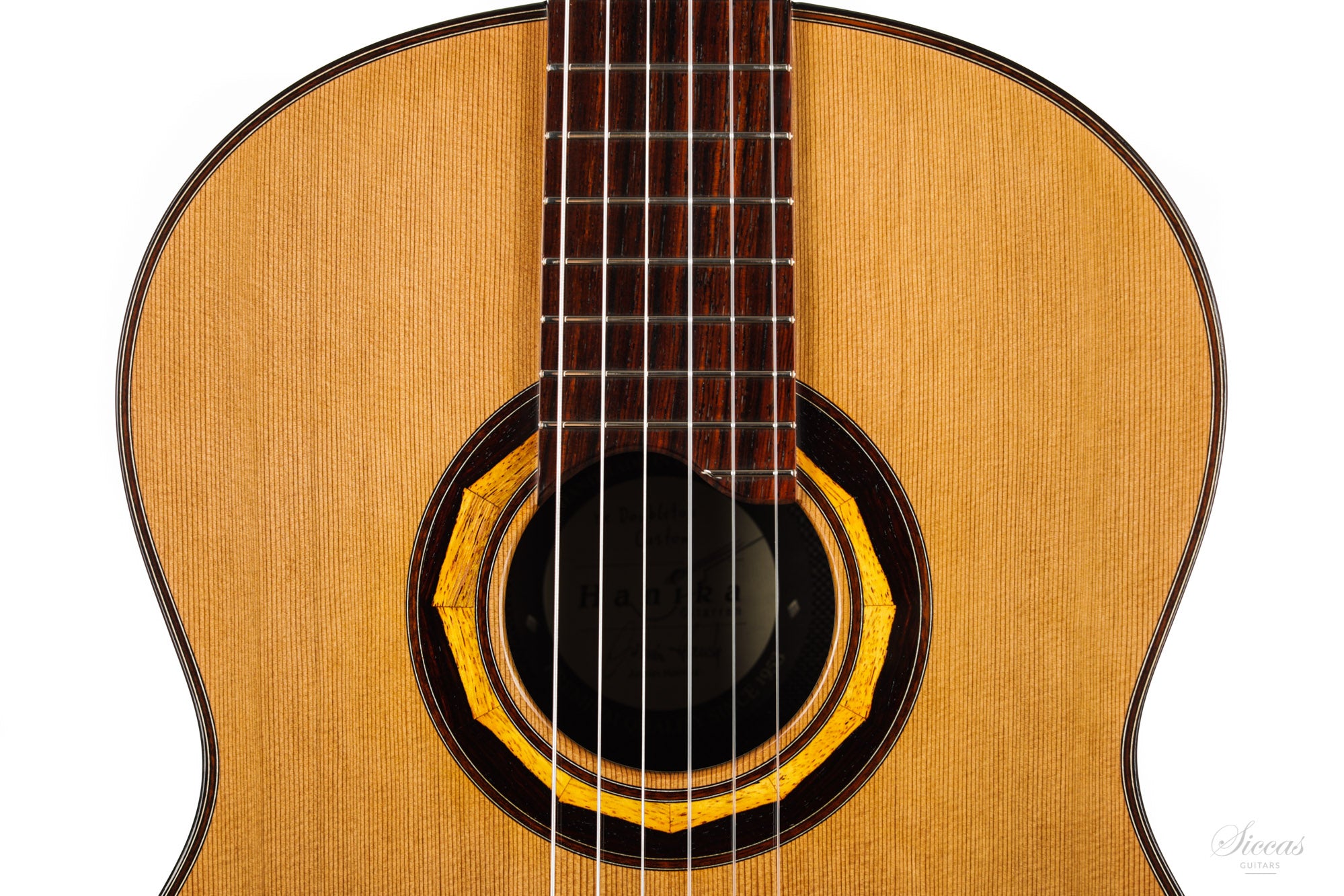 The HE Doubletop model is part of Hanikas’s professional Line representing the peak in guitar-making sound and craftsmanship. The classical guitars are designed and composed to meet the individual needs and requirements of demanding guitar virtuosos. The finest choices of wood in conjunction with master craftsmanship and the use of the noblest and highest-quality materials result in unique works of sound art.