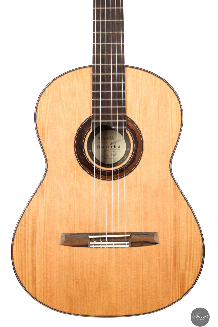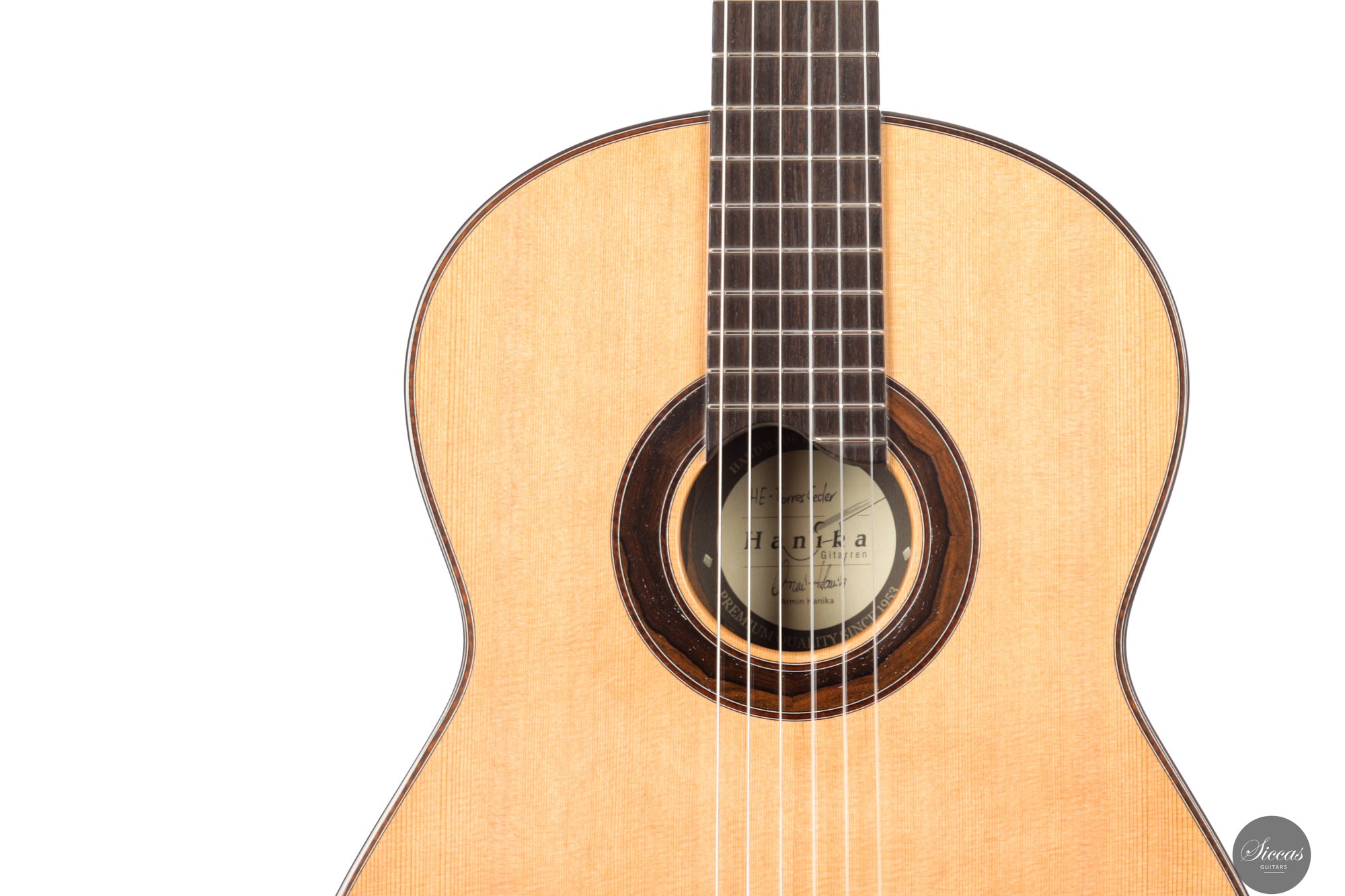 At HANIKA craftsmanship is understood as custom work and sound as art. A guitar from the famous Baiersdorf manufacture is a symbol of quality and craftsmanship tradition. Since 1953 it has been the basis for the success story of the company, combined with trend-setting innovations. Master plucked instrument maker Armin Hanika took over the company from his father in 1993 and has been building classical guitars of outstanding quality ever since. The HE Torres model is part of Hanikas’s professional line, representing the peak in guitar-making, sound, and craftsmanship. This instrument is designed and composed to meet the individual needs and requirements of demanding guitar virtuosos. The finest choices of wood in conjunction with master craftsmanship and the use of the noblest and highest-quality materials result in a unique piece of sound art. The “New Model” of HE Torres concert guitar is a sophisticated blend of traditional craftsmanship and contemporary functionality. Constructed with expressively grained Ziricote for the back and sides and topped with the finest cedar wood, this guitar offers both stunning visual appeal and exceptional acoustic properties. Designed to meet the highest standards of material, construction, and sound, the HE Torres delivers excellent dynamics, a warm and substantial tone, sharp clarity, and responsive playability, catering to the most demanding musicians. It features significant volume and ease of playability, making it a modern interpretation of traditional instruments. Additionally, this guitar comes equipped with an elegant BAM Hightech case for superior protection and Alessi tuners for precise tuning stability, enhancing its value as a premium choice for those seeking a top-tier concert guitar that combines the best of tradition and modern features.